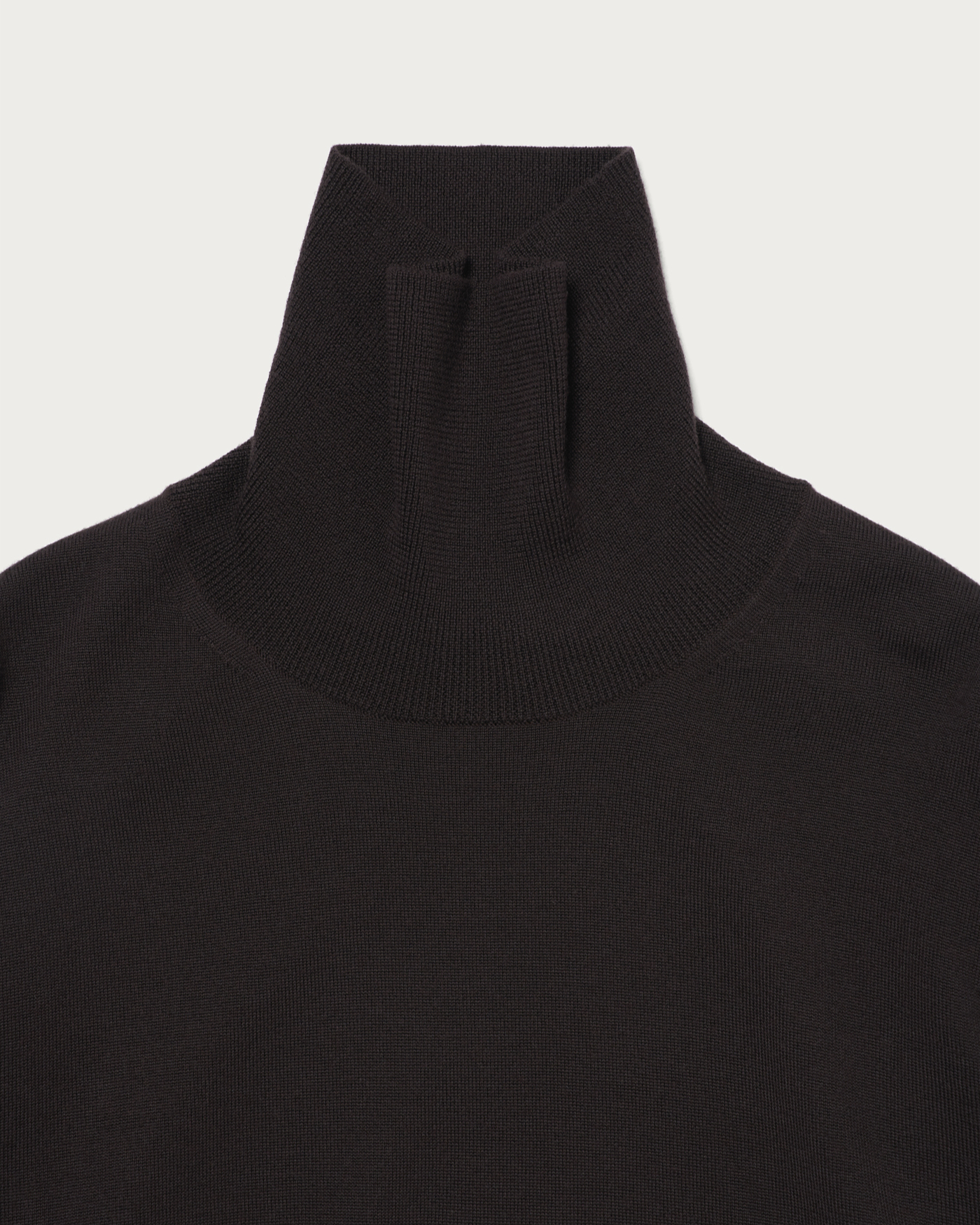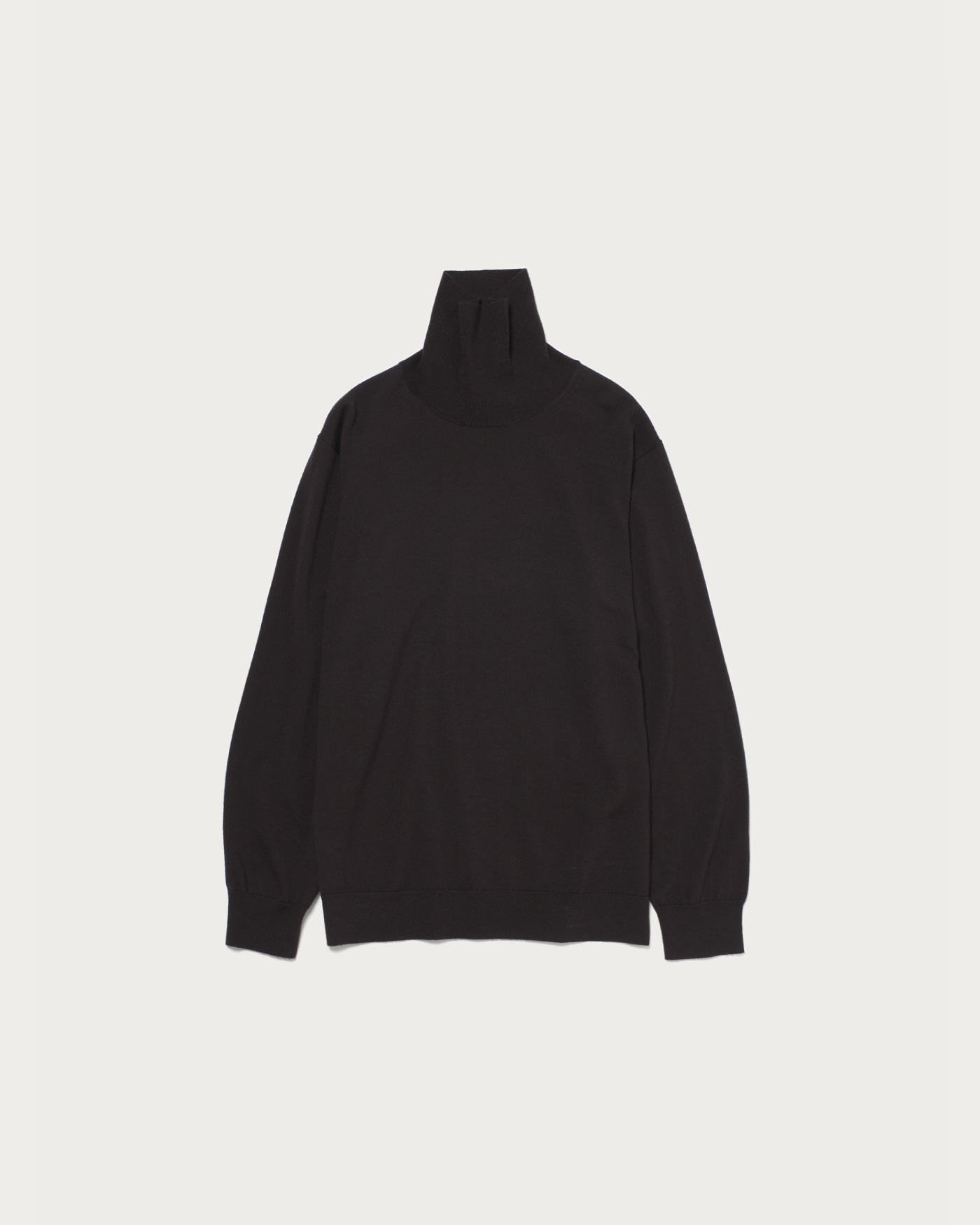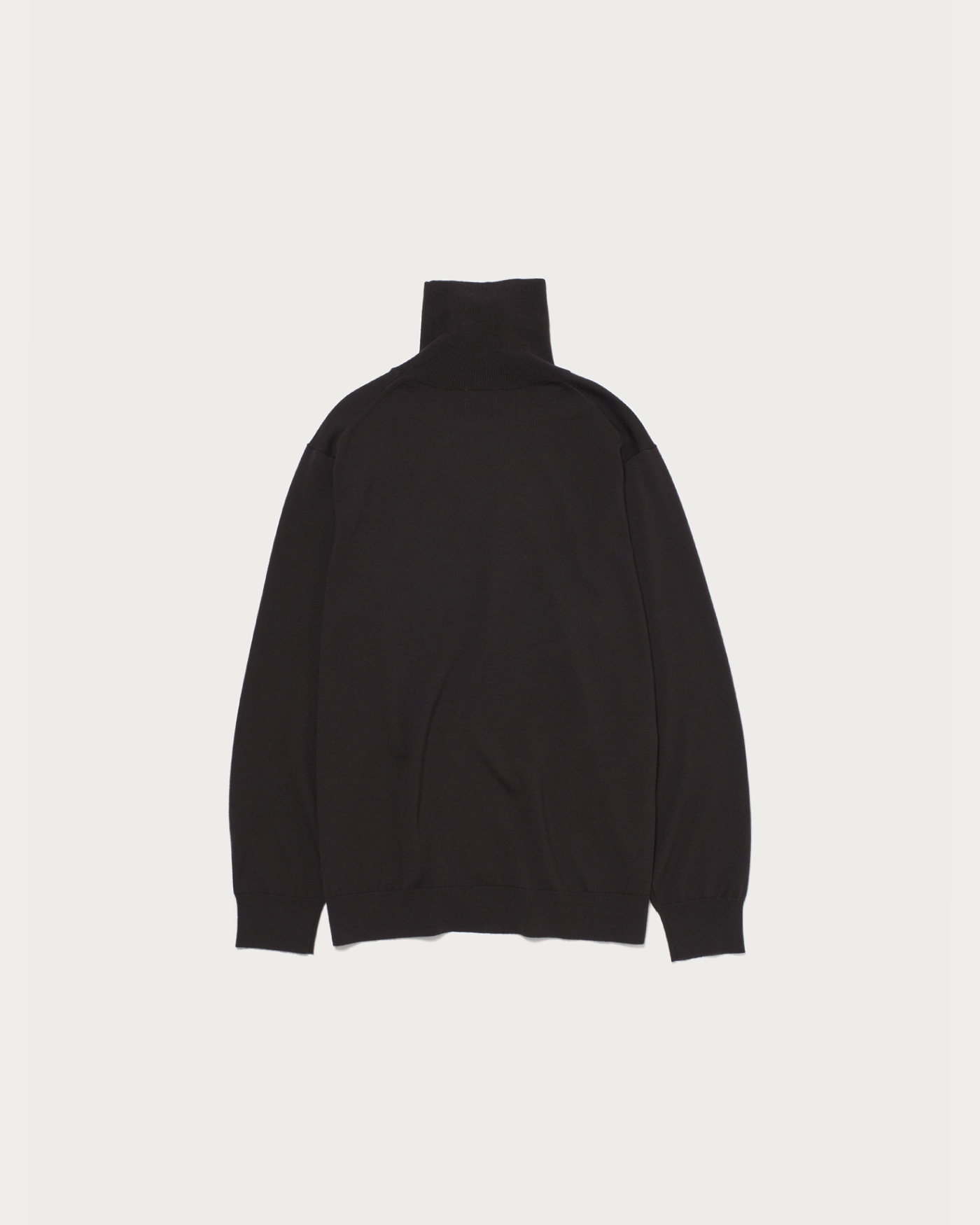 A basic high-gauge knit. Despite its simple design, this piece is meticulously crafted with attention to material, fit, and finishing details. Compared to last year's model, the collar tips have been slightly narrowed for a more refined look. Made with Super 120 wool, it offers a smooth texture and a subtle sheen that exudes elegance.