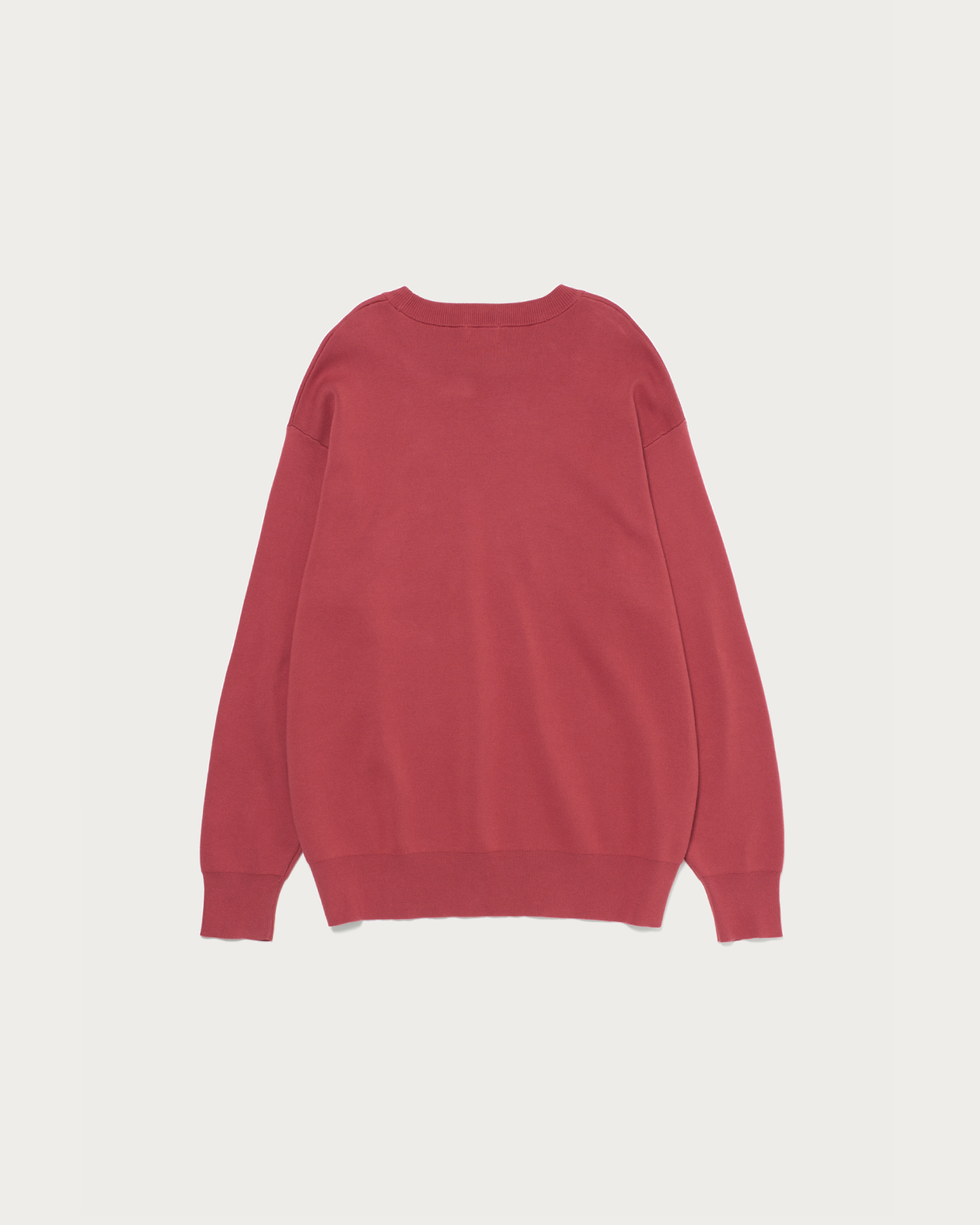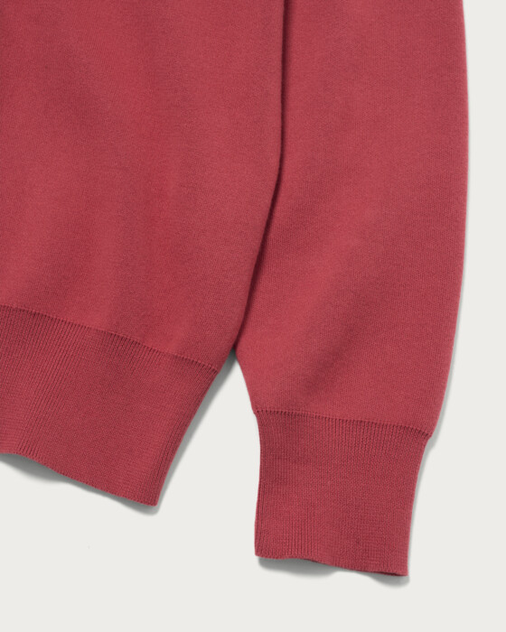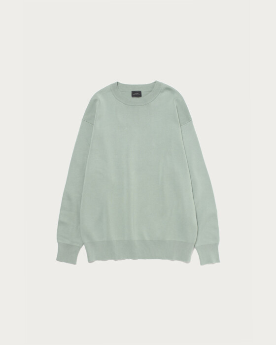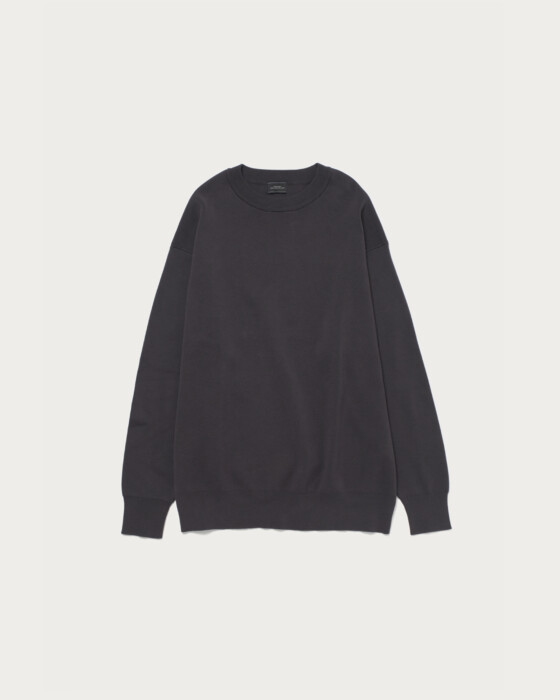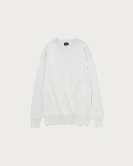 The design strips away typical knit details, creating a minimalist look akin to a sweatshirt. With a slightly relaxed, trendy silhouette, it achieves a clean and sophisticated appearance, perfect for the refined adult. Made with clear and smooth compact cotton yarn, it offers a soft and comfortable wearing experience.