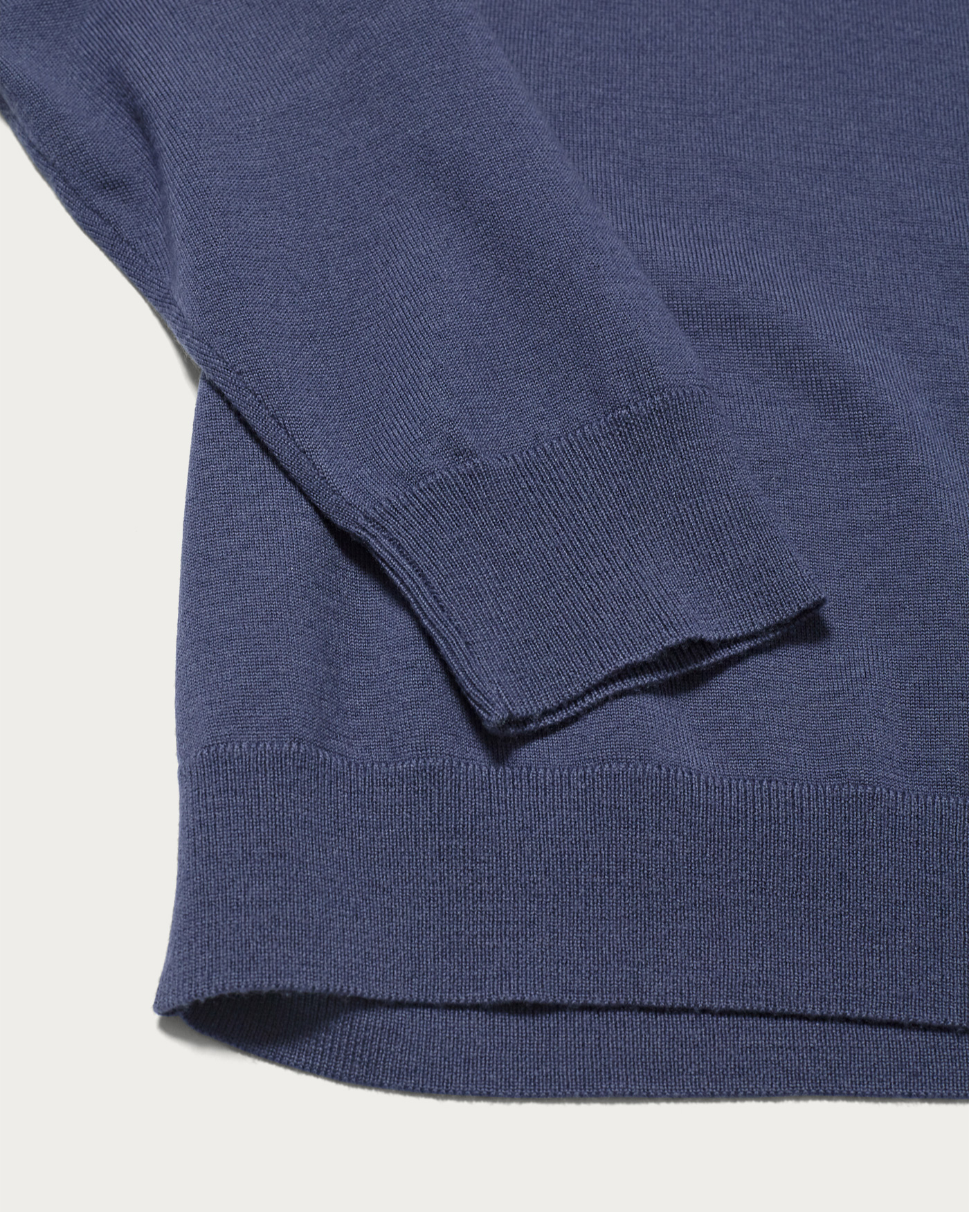 A classic basic high-gauge knit. Each season, we use carefully selected materials, and this season features wool known for its smooth, glossy, and voluminous texture. With a minimal design, this piece strikes a perfect balance between a polished look and just the right amount of comfort.