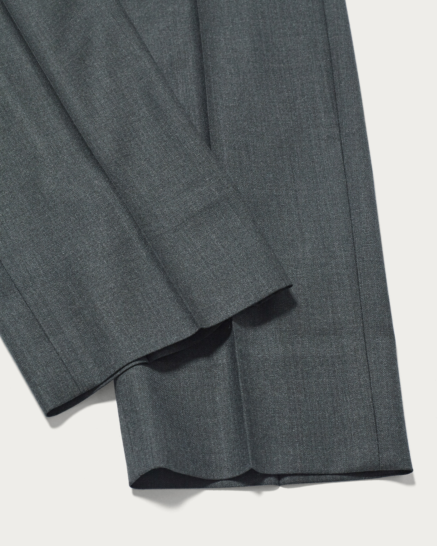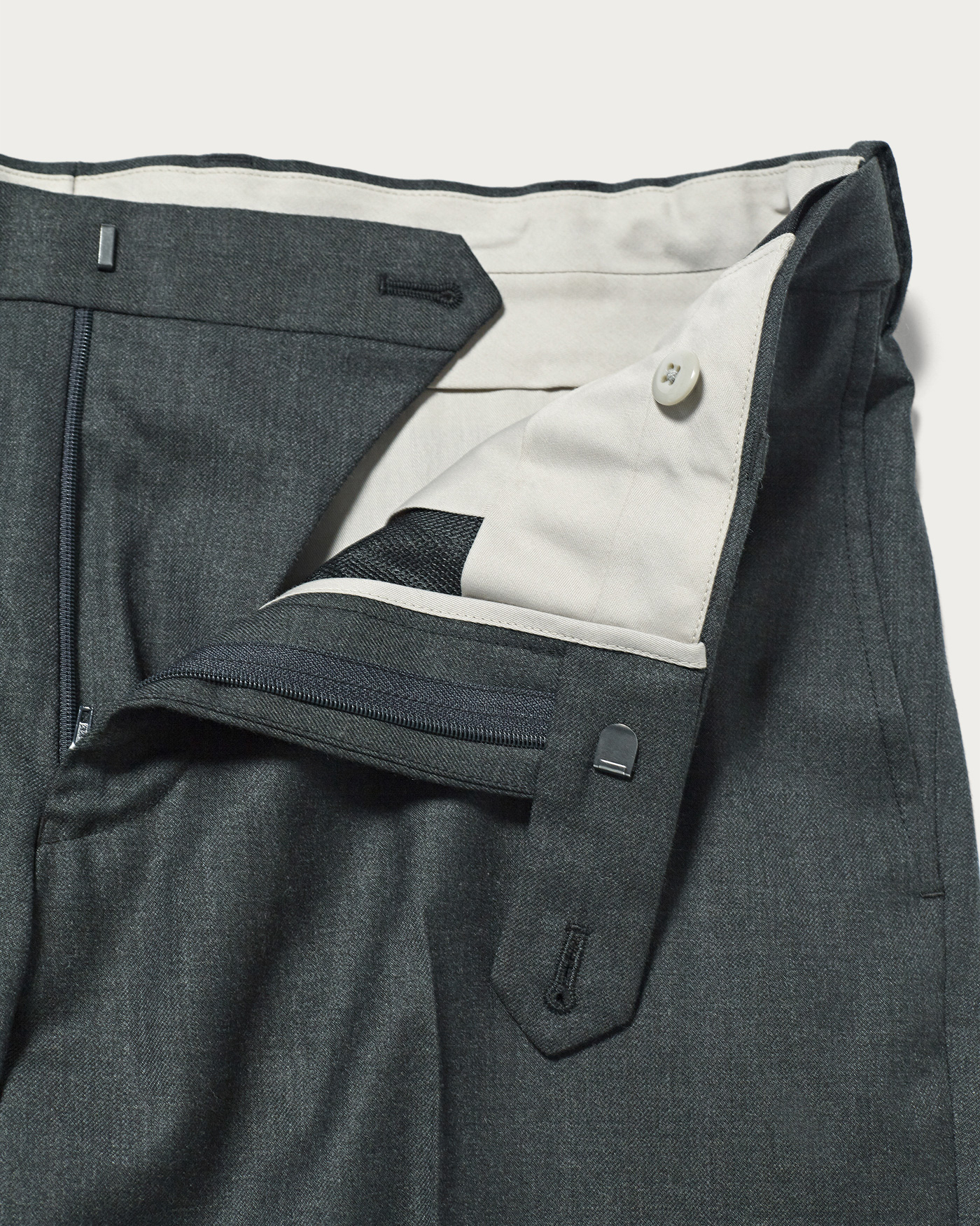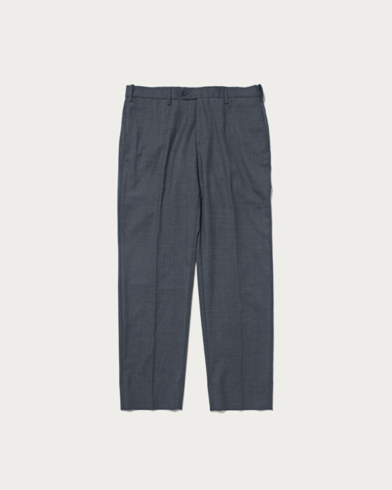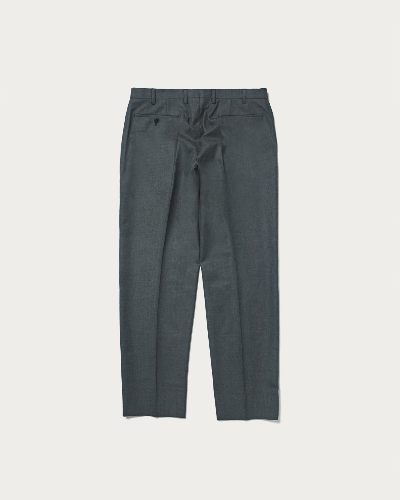 This garment is made from TW material with a Saxony finish that reflects a sense of the season. It features a sharp, slim silhouette and includes a comfortable waist adjuster for ease of wear. This piece is equipped with stretchability, wrinkle resistance, and is washable, making it a comfortable choice.