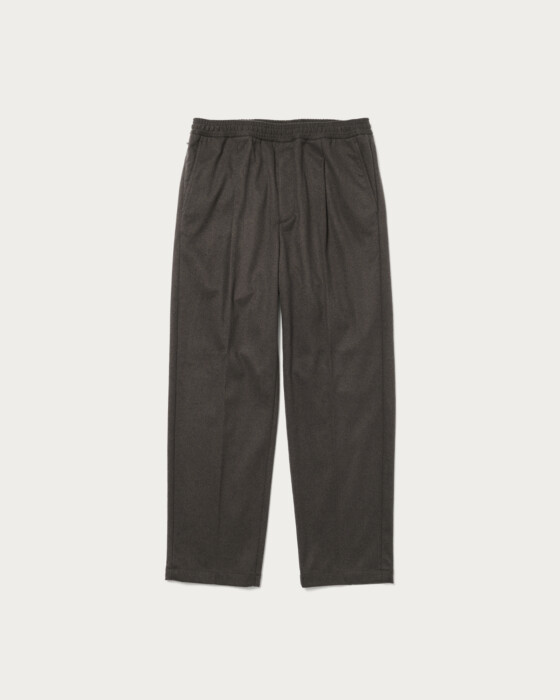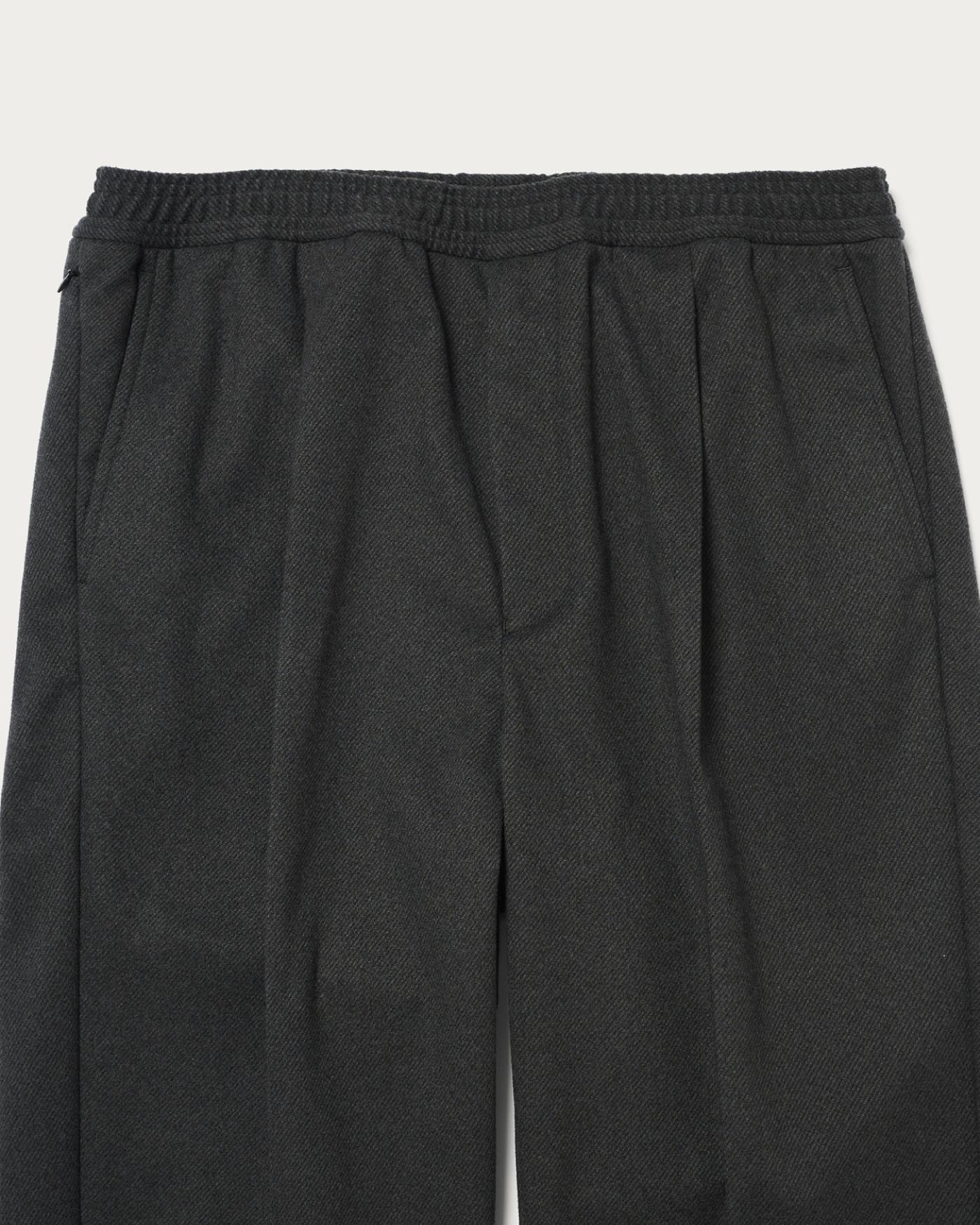 Easy pants with added tucks to the all-mighty pants to emphasize a tapered look. Designed with a deep rise for a relaxed fit, making it easy to balance even with voluminous tops. Made from autumn-winter wonder cross material, combining differently dyed polyester threads and finished with a brushed texture to create a wool-like luxurious feel.