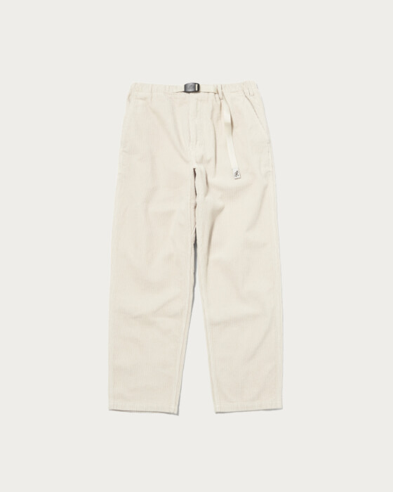 This fall and winter, we've updated the trend of using corduroy fabric into a wide tapered style. The accessories are finished in tonal colors for a clean look, and the silhouette is characterized by a perfect balance of trendiness and neatness with just the right amount of room.