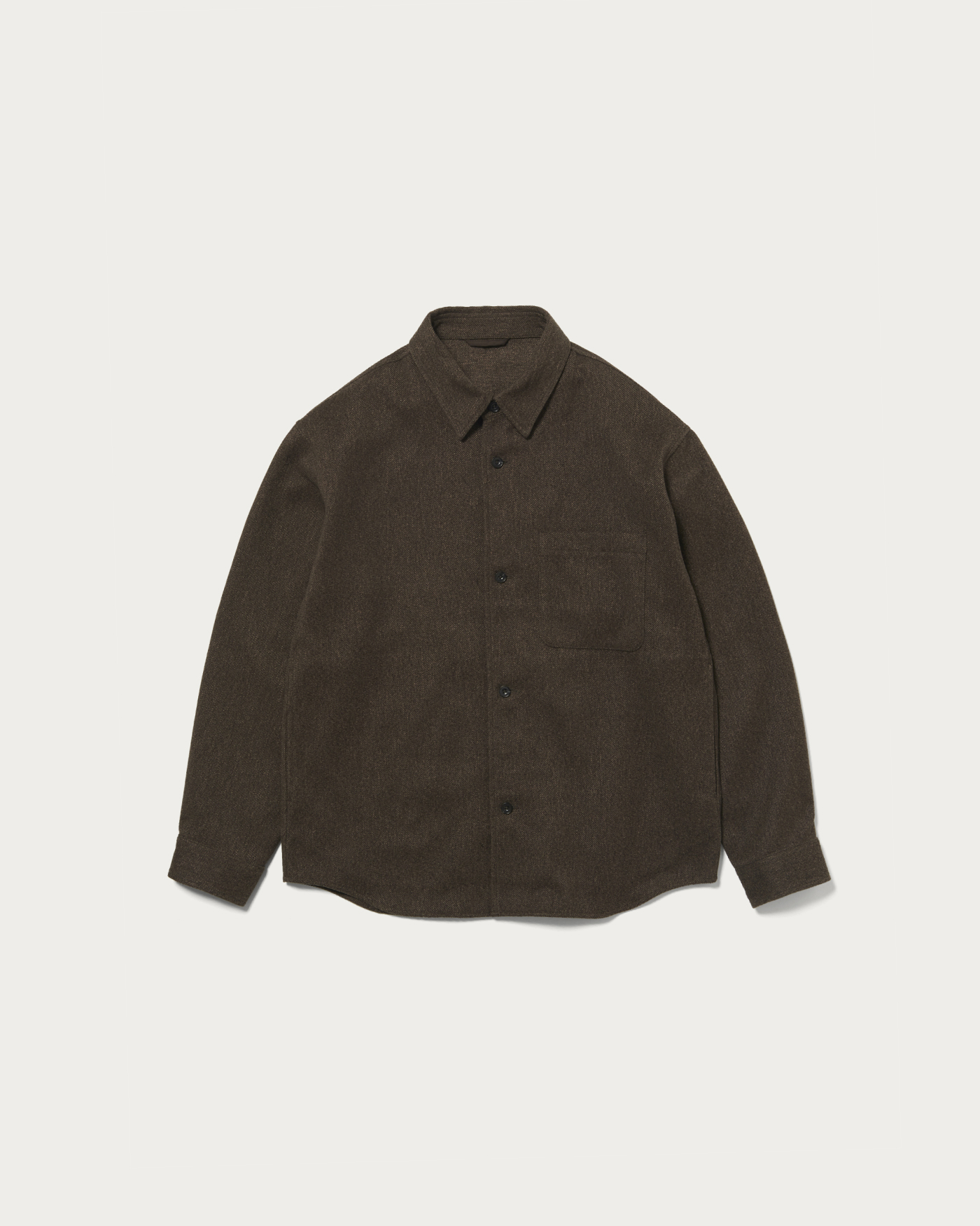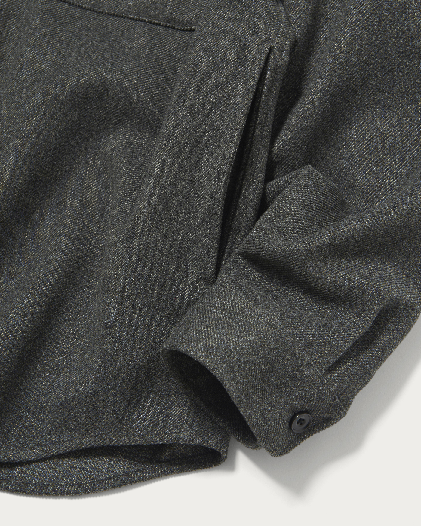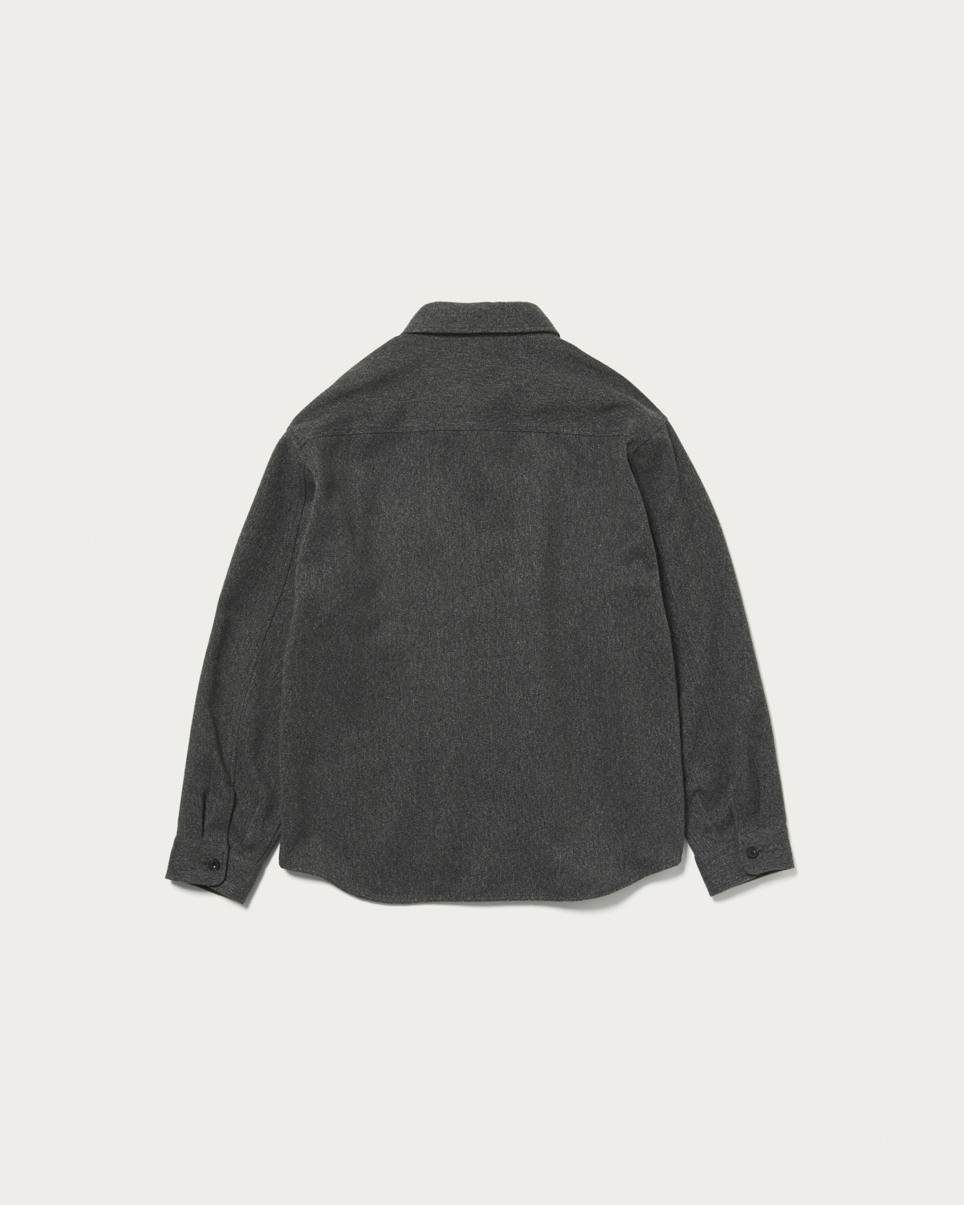 A CPO shirt made from tweed-like, warm polyester. With a two-sleeve design and waist pockets, it can be worn like a blouson. The material used is a voluminous tweed-like polyester. Compared to last year's model, the brushed texture has been toned down for a slightly cleaner look.