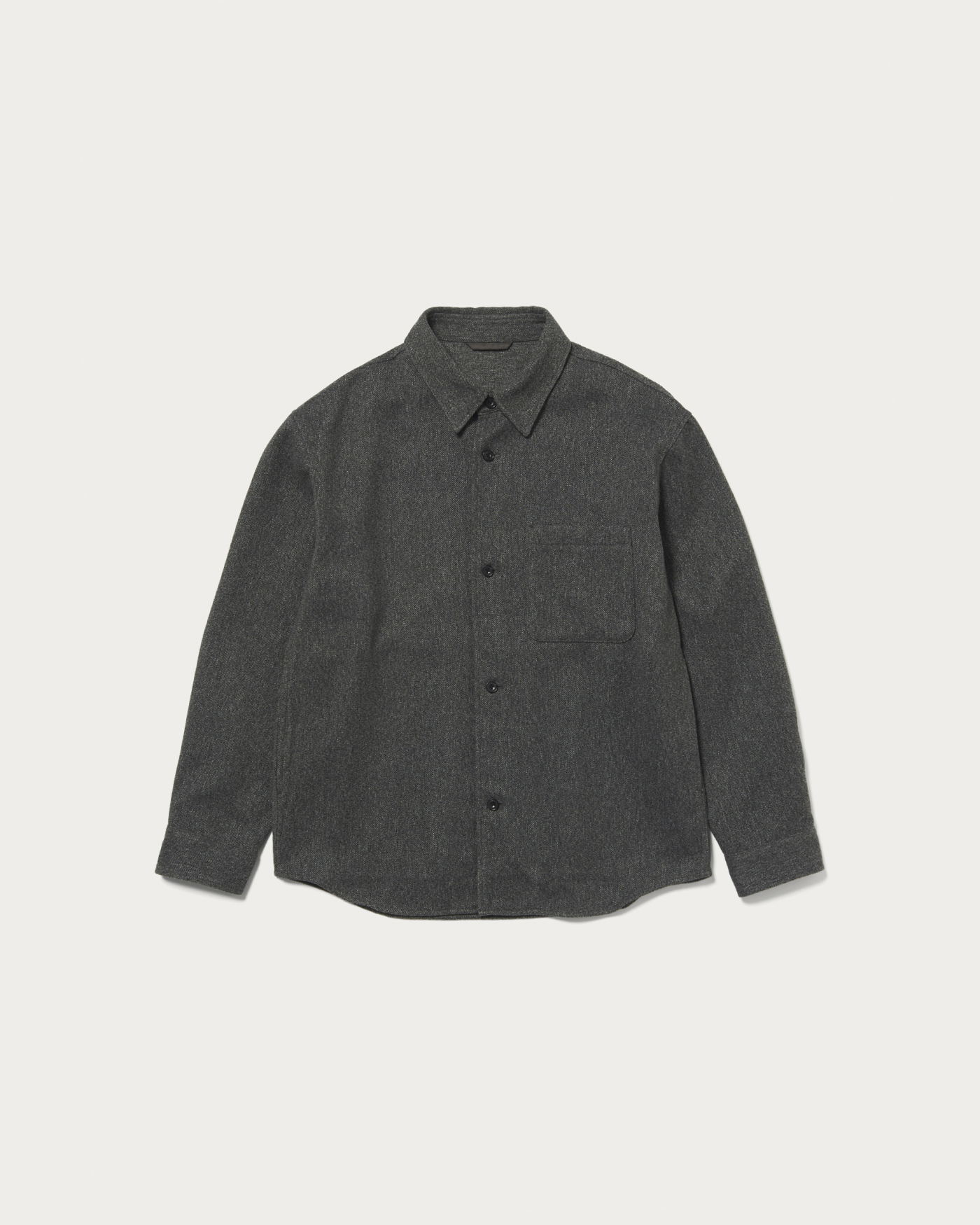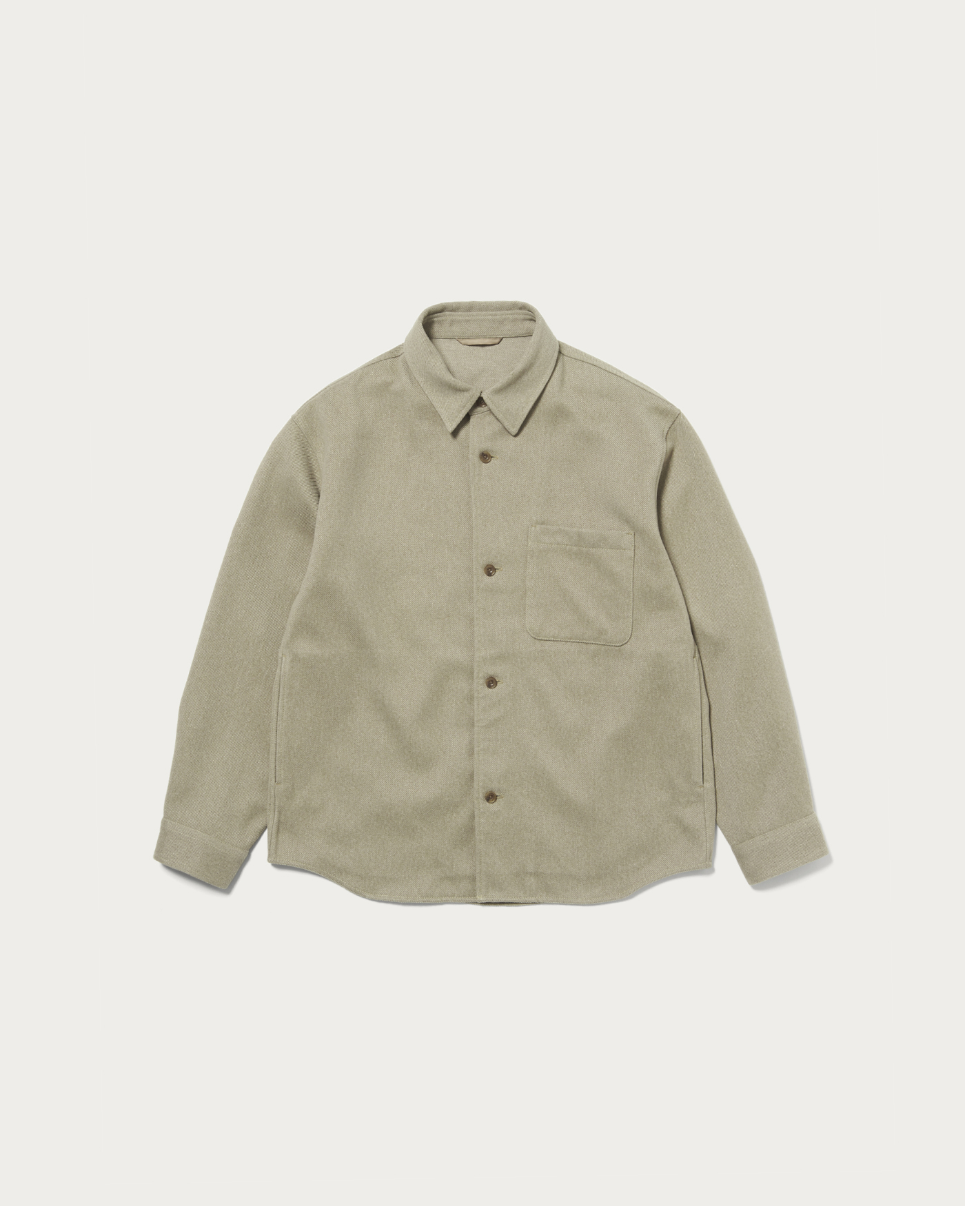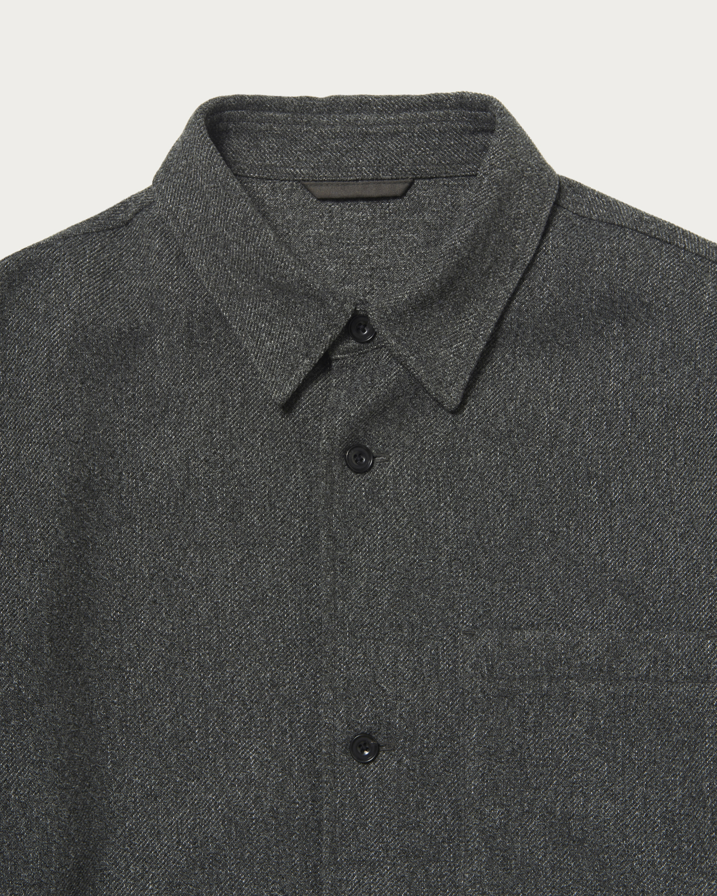 A CPO shirt made from tweed-like, warm polyester. With a two-sleeve design and waist pockets, it can be worn like a blouson. The material used is a voluminous tweed-like polyester. Compared to last year's model, the brushed texture has been toned down for a slightly cleaner look.