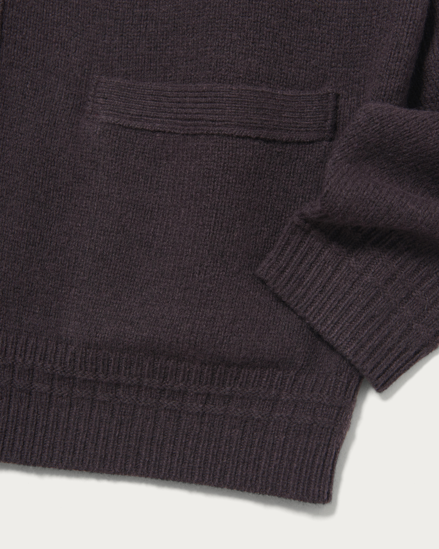 A cardigan that adds a touch of knit-like design with changes in the knitting pattern and tucks at the cuffs and hem ribbing. It features a silhouette with just the right amount of room for a comfortable fit. The material used is a yarn blended with Hamilton lambswool. Hamilton, Australia, is a region known for its many high-quality wool-producing farms, where lambs raised in a favorable environment produce wool characterized by its smooth and lustrous texture.