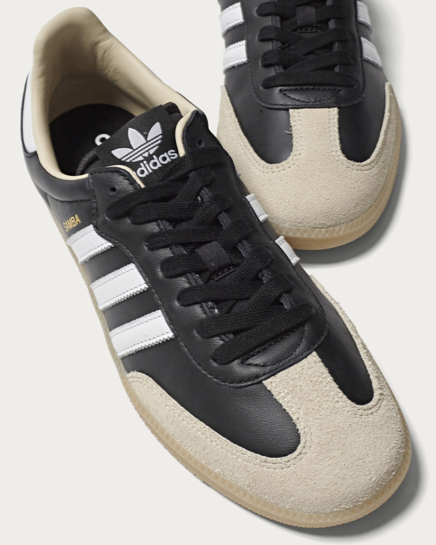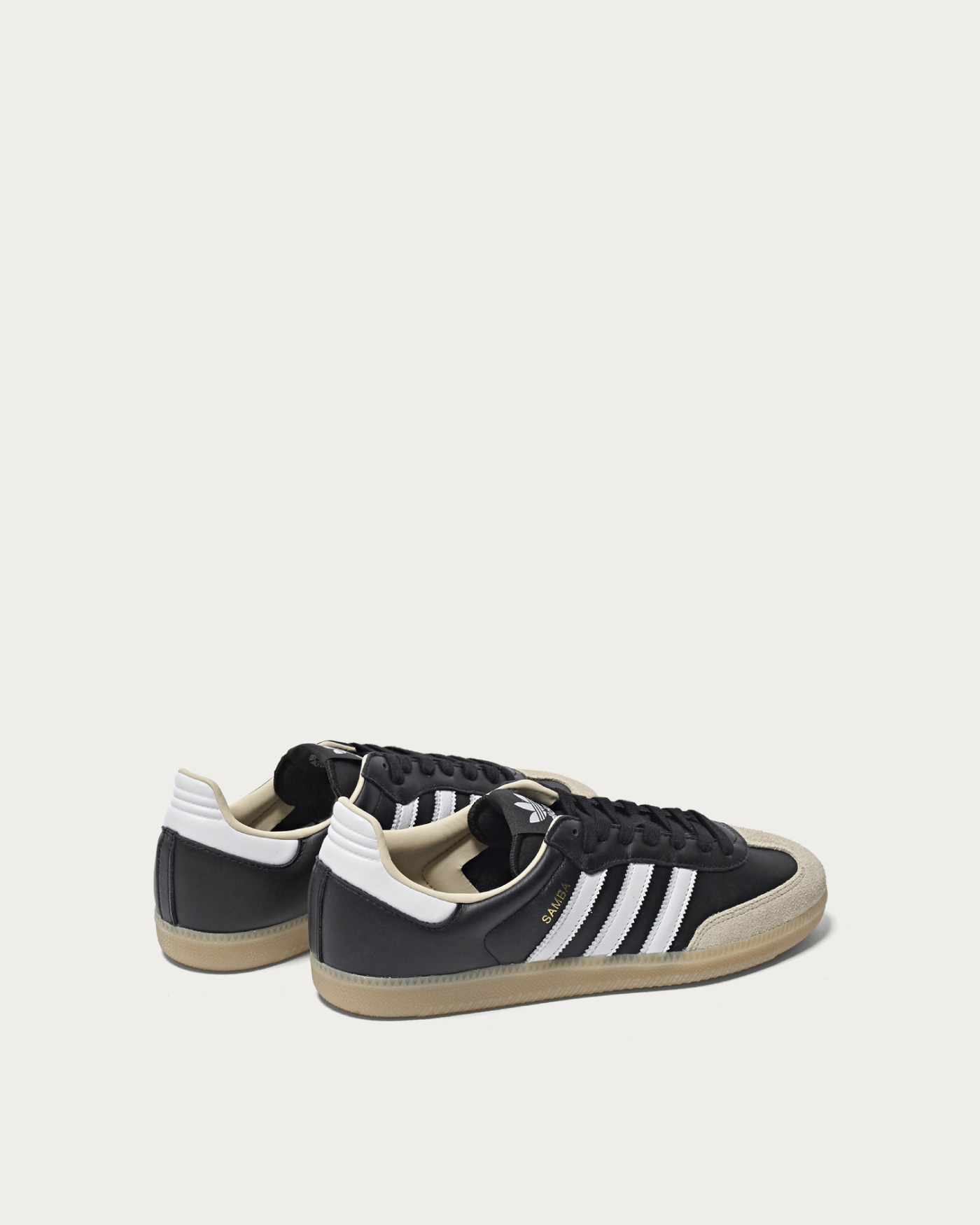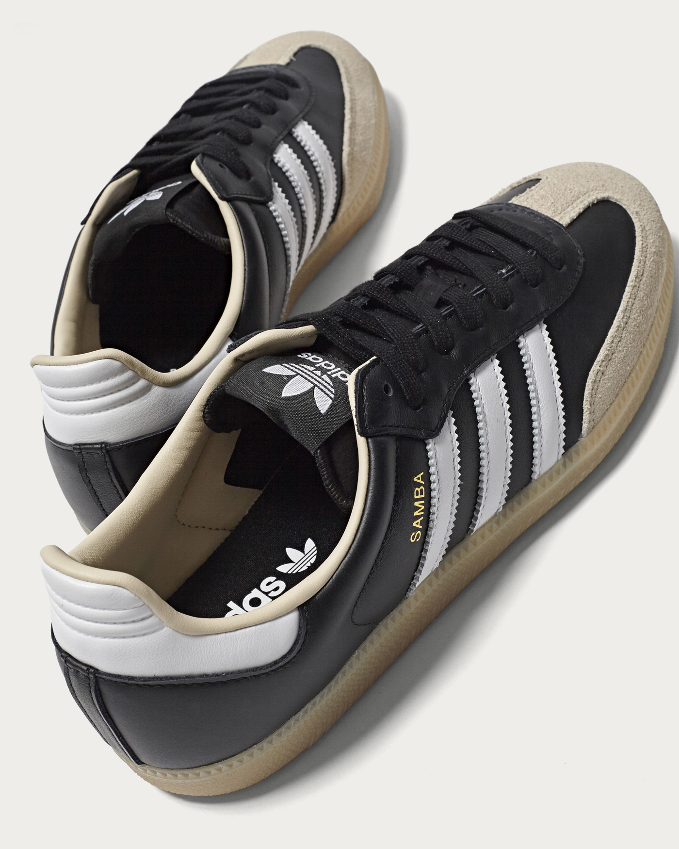 Domestic distribution limited, available only at Adidas directly managed stores and Green Label Relaxing. Originally created for the pitch, the Samba has now become a timeless icon of street style. Featuring a black base with white three stripes and a suede accent on the toe, this design stands out.