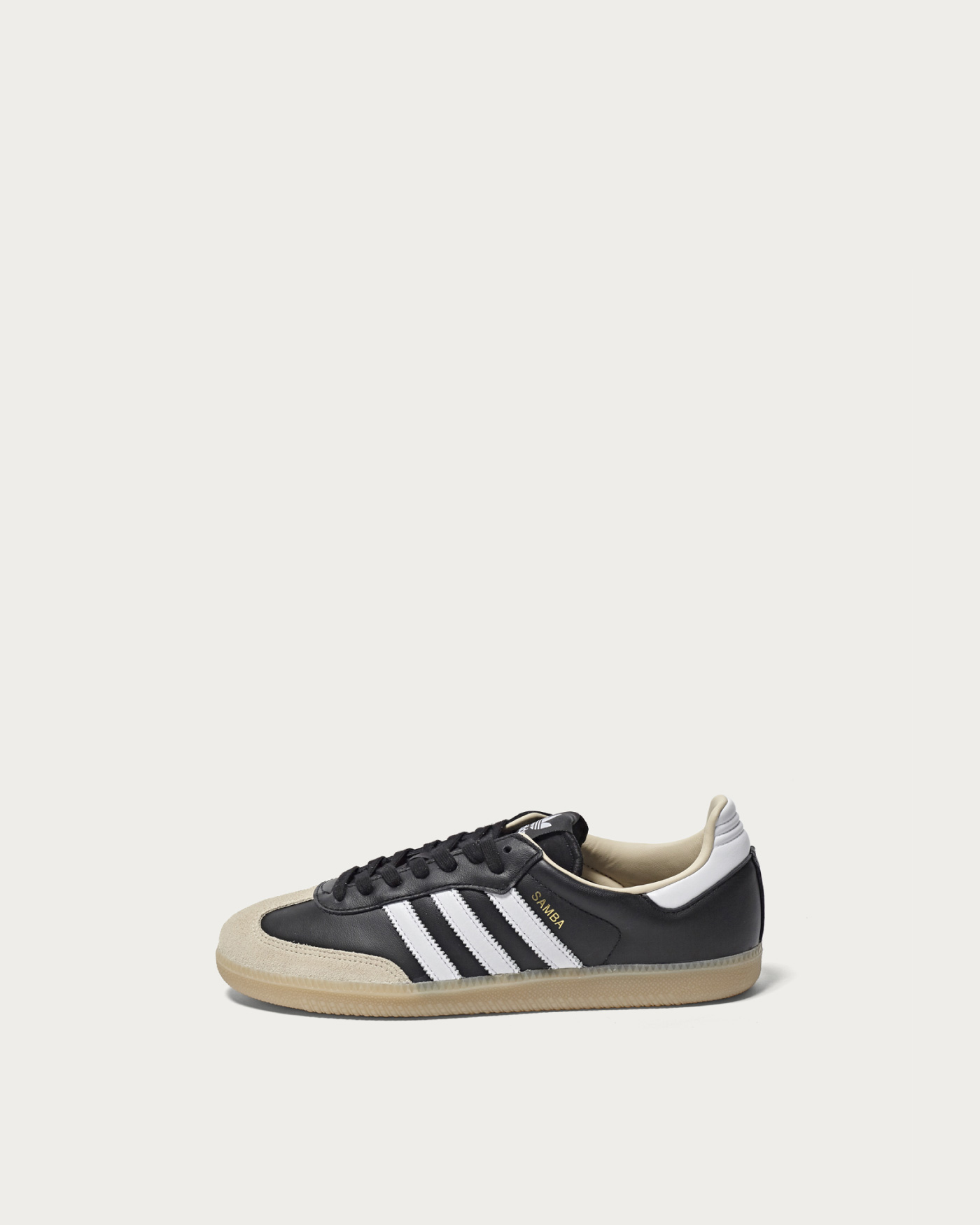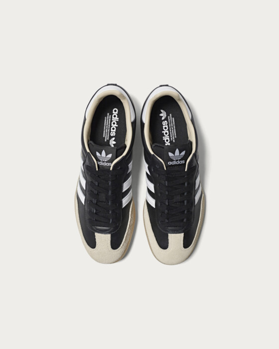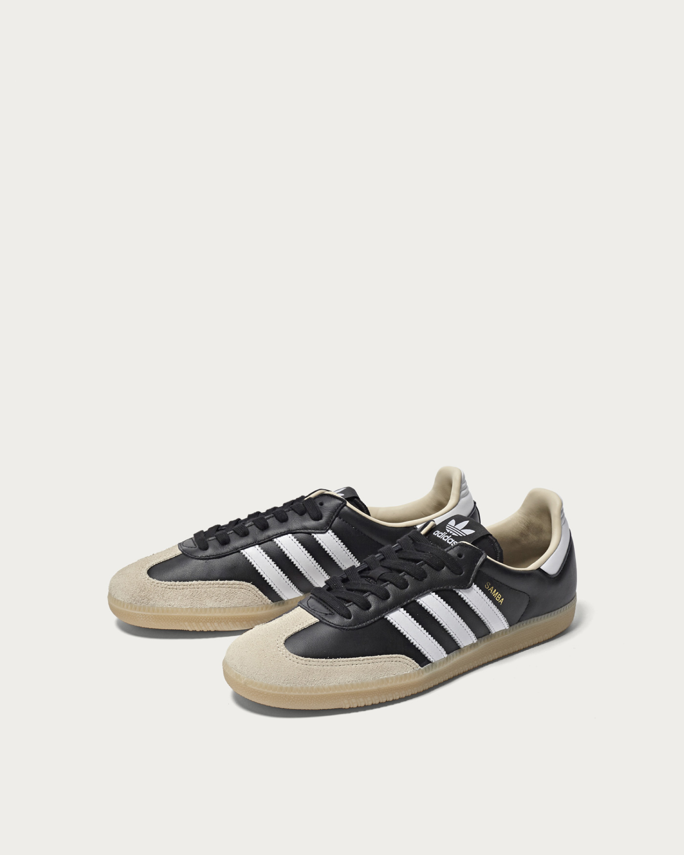 Domestic distribution limited, available only at Adidas directly managed stores and Green Label Relaxing. Originally created for the pitch, the Samba has now become a timeless icon of street style. Featuring a black base with white three stripes and a suede accent on the toe, this design stands out.