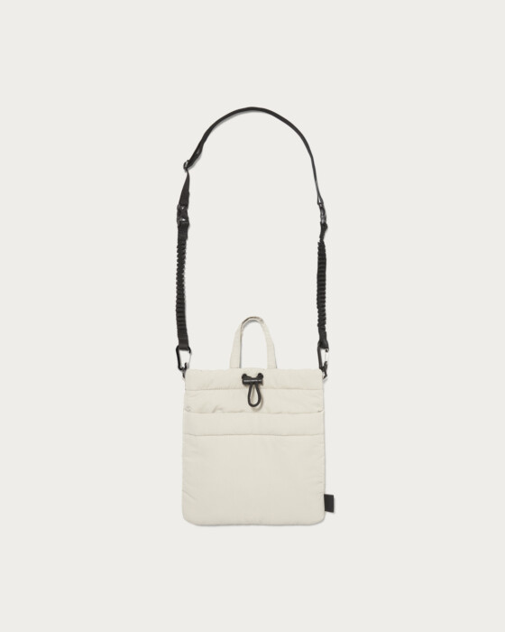 A custom-made drawstring shoulder bag with padding, specially ordered from 〈fellowww〉. This exclusive design is available only at Green Label Relaxing. The bag features a plump shape with gathered straps as a key design element. With a detachable shoulder strap, this versatile item can be enjoyed as either a handheld or shoulder bag.