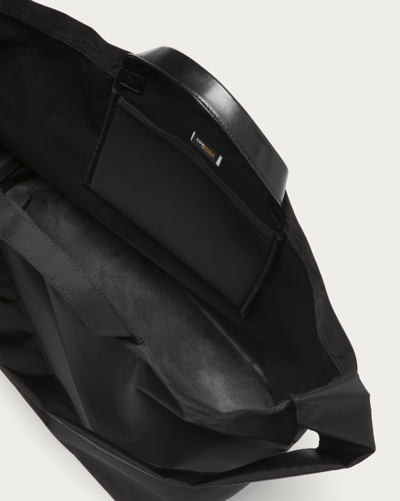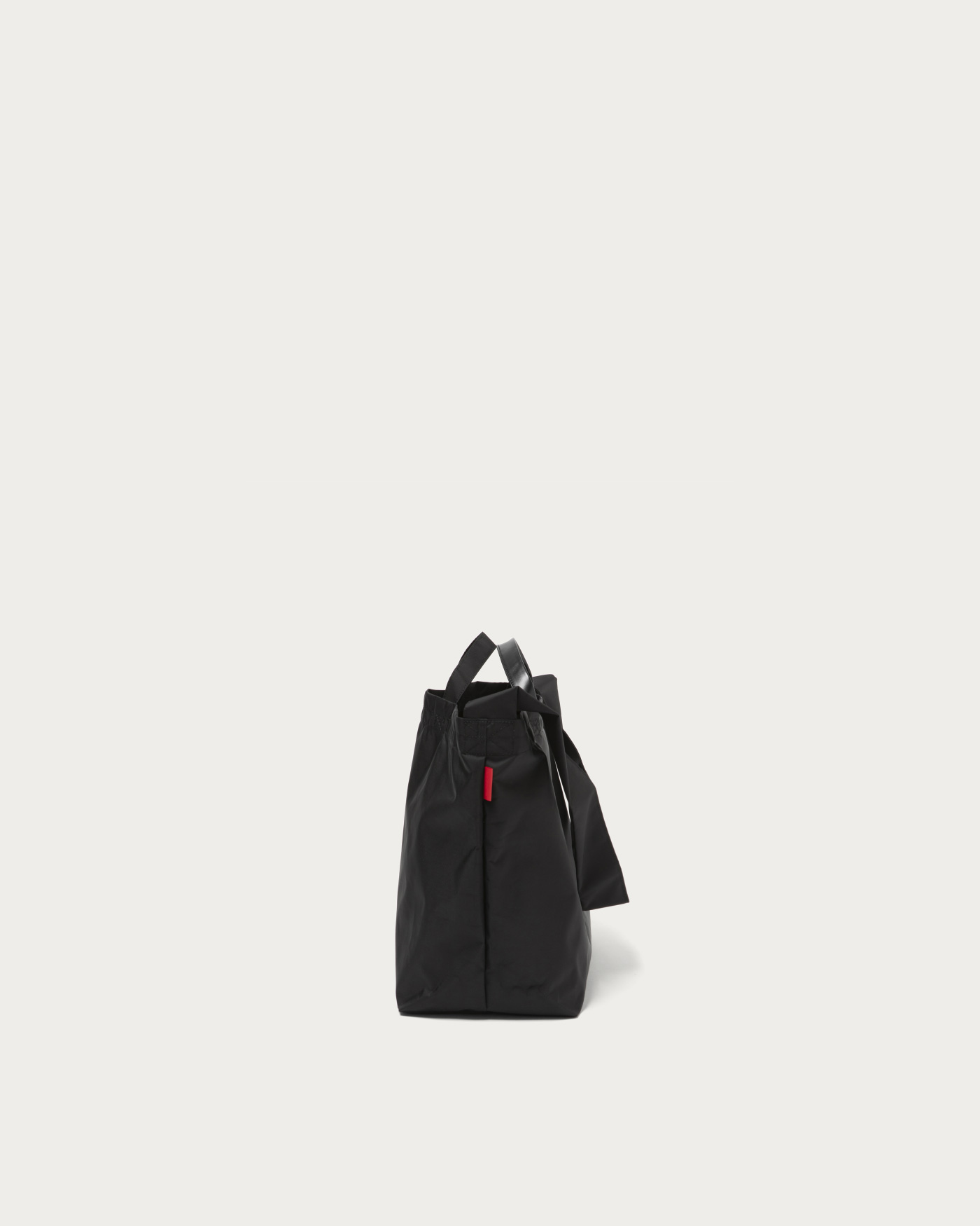 〈5525 Gallery〉 aims to be a platform that enriches everyday life by designing strong, functional items that are simple yet beautiful, with a touch of humor. For this bag, we have used the tough and functional "CORDURA®" material. To elevate this gear-like material into modern fashion, we combined voluminous neoprene with glossy synthetic leather, achieving a refined texture. The design is characterized by its simplicity, which leaves room for interpretation, and a hint of humor that makes everyday utility feel special.