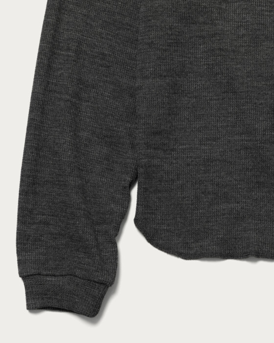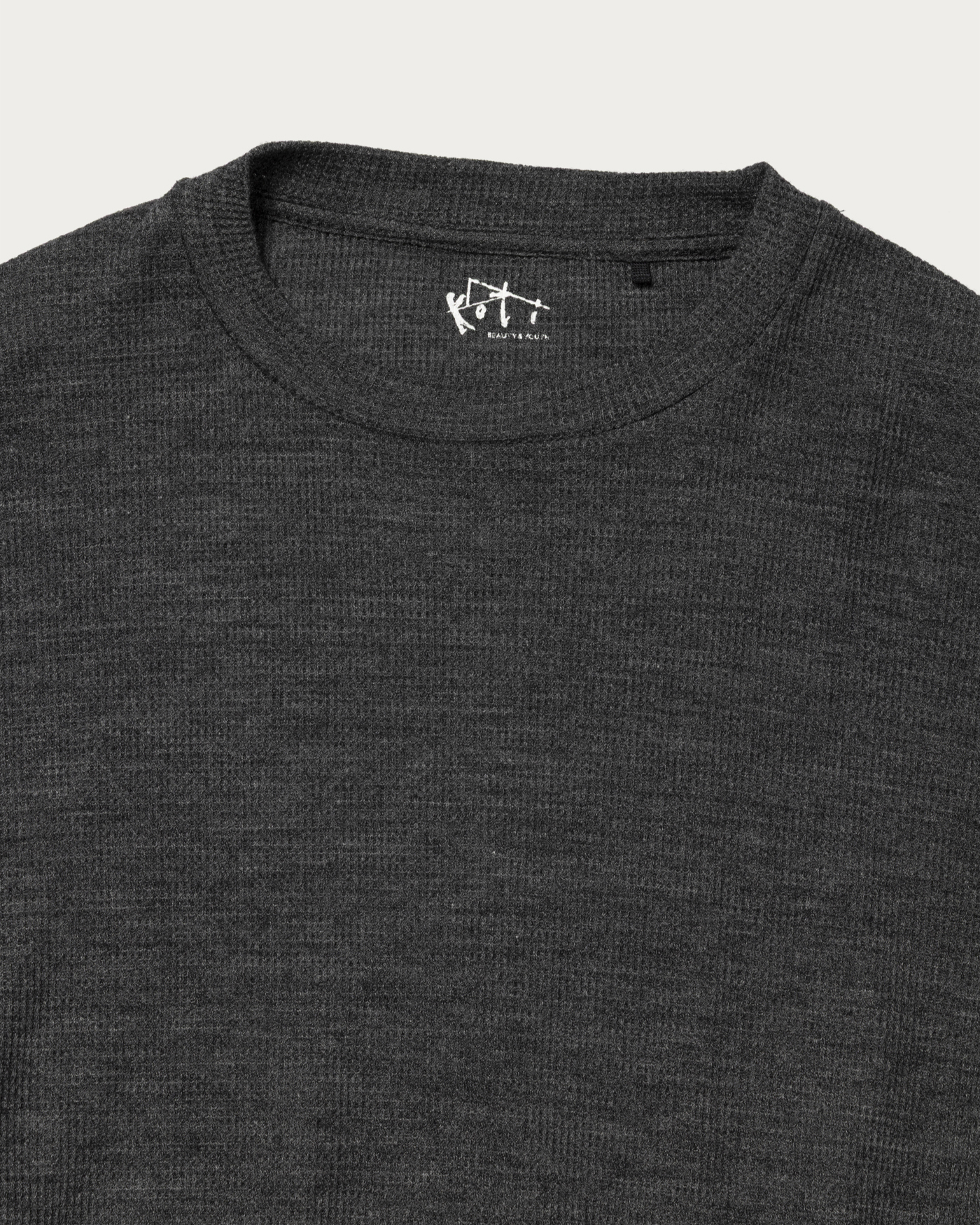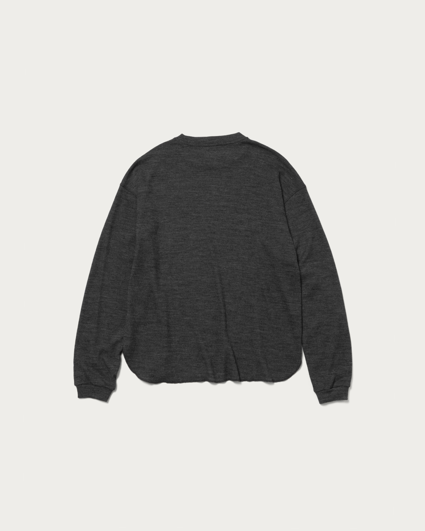 Crew neck shirt made with merino wool thermal fabric from Nikke Textile Co., Ltd. Features a round hem that looks stylish on its own. The slightly thin and soft thermal fabric allows for versatile styling, from wearing it alone to using it as an inner layer. It is treated to be washable, so you can care for it at home by hand washing.