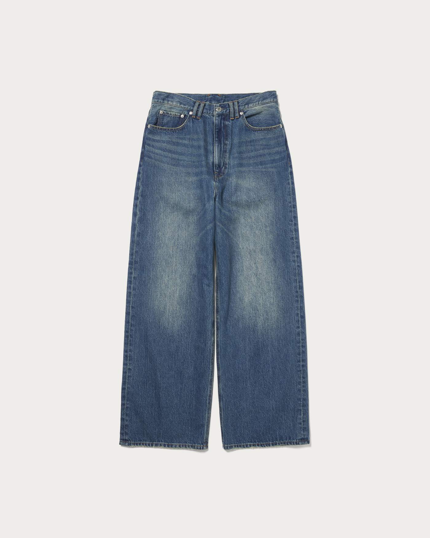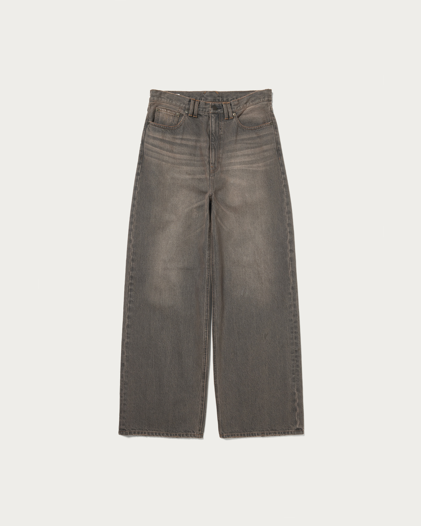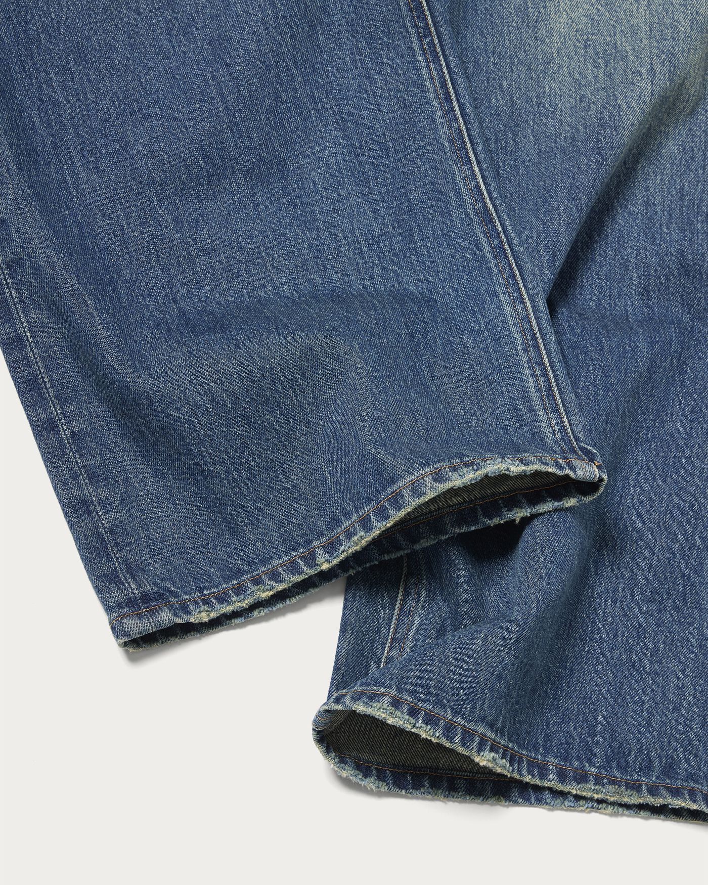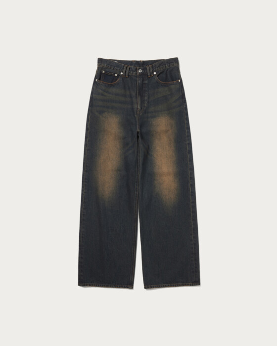 Baggy pants made from sturdy 13-ounce denim, featuring vintage processing and over-dyeing. They boast an appealing silhouette that is wide and relaxed, yet not overly loose.