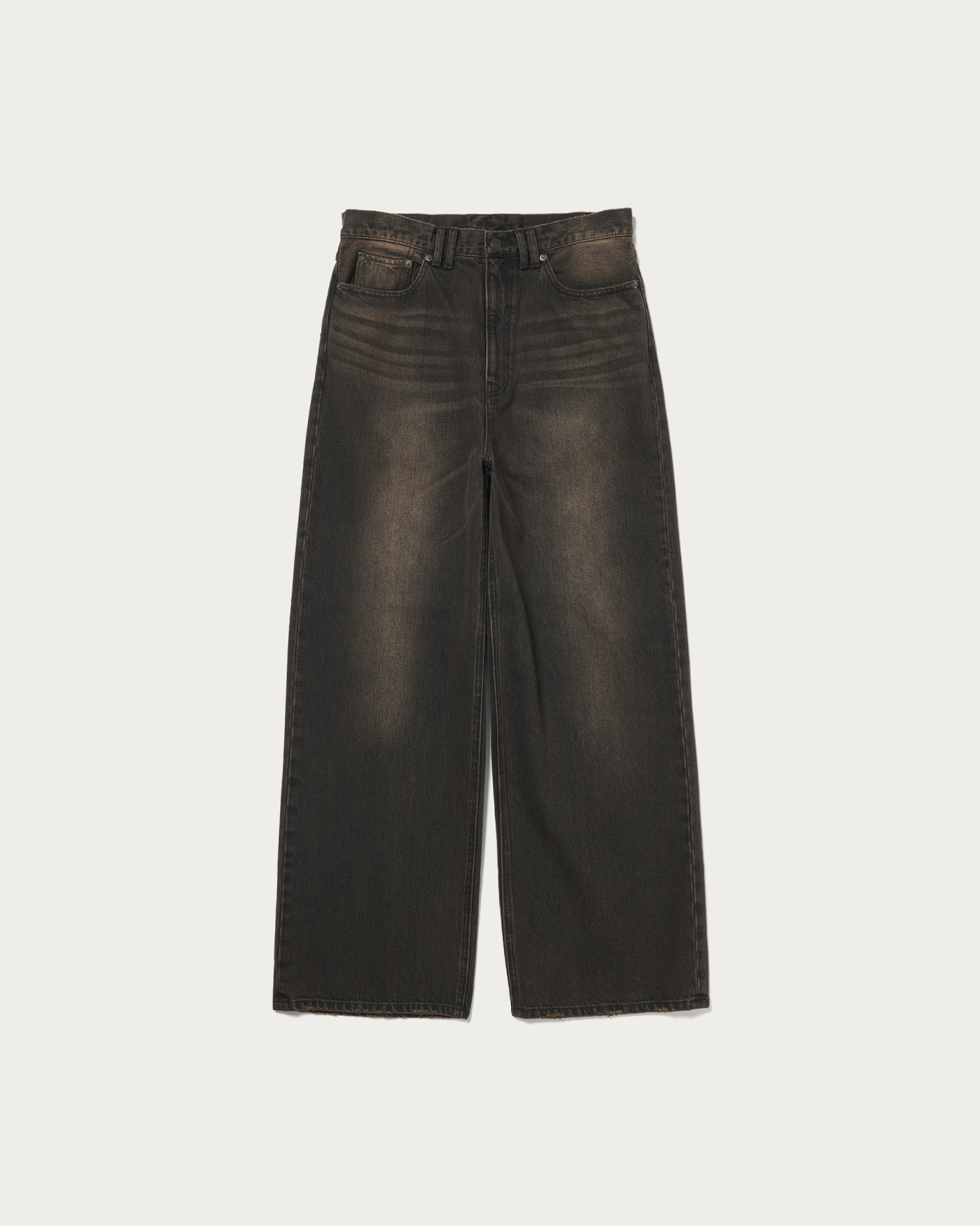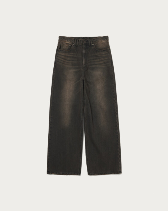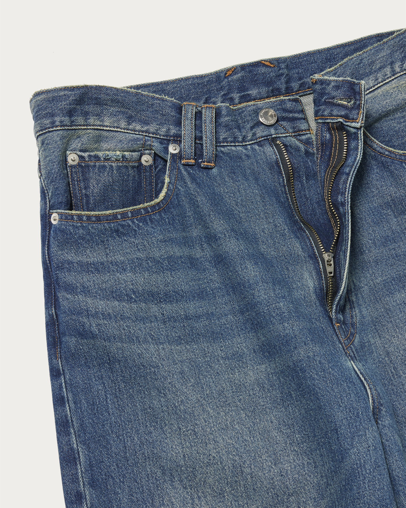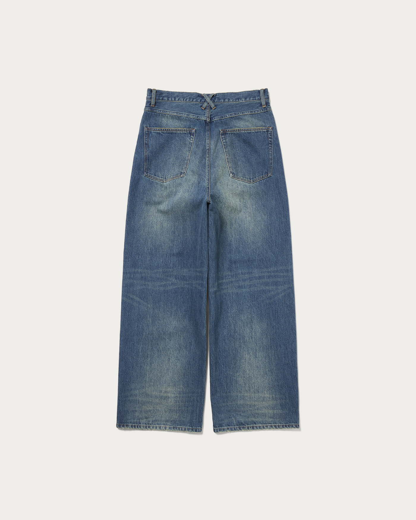 Baggy pants made from sturdy 13-ounce denim, featuring vintage processing and over-dyeing. They boast an appealing silhouette that is wide and relaxed, yet not overly loose.