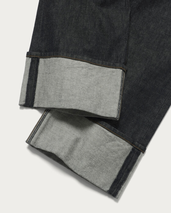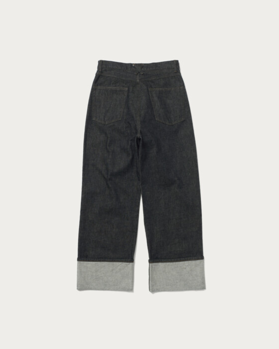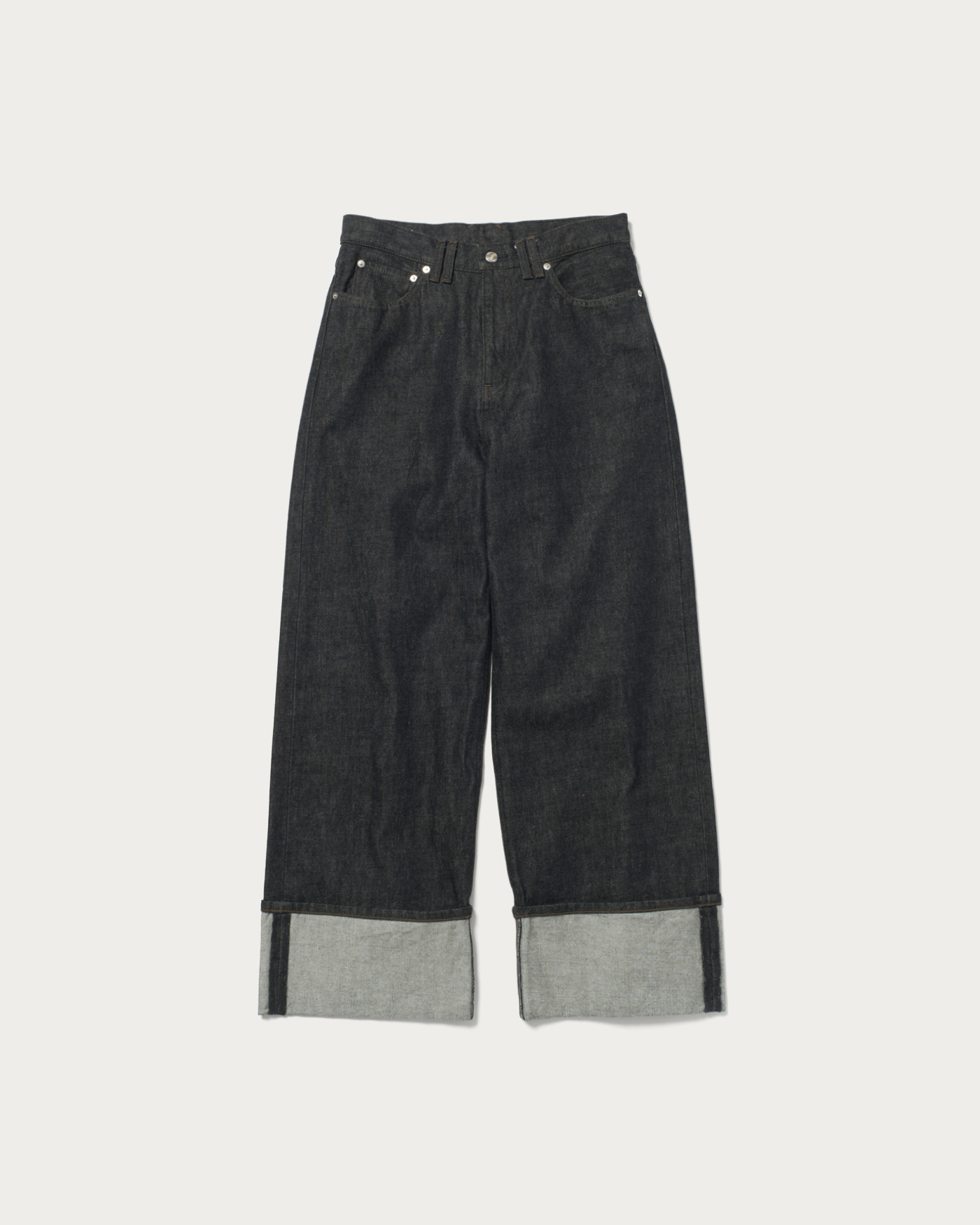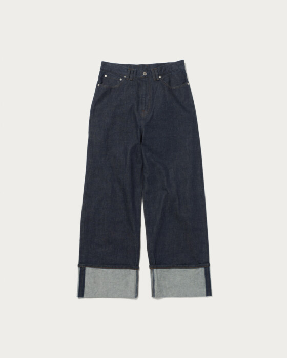 At Monkey Time, we offer classic baggy silhouette denim pants. Made from sturdy 13-ounce denim, these pants have been updated with a roll-up hem design. They feature a relaxed wide silhouette that remains perfectly balanced without becoming too loose, making them truly appealing.