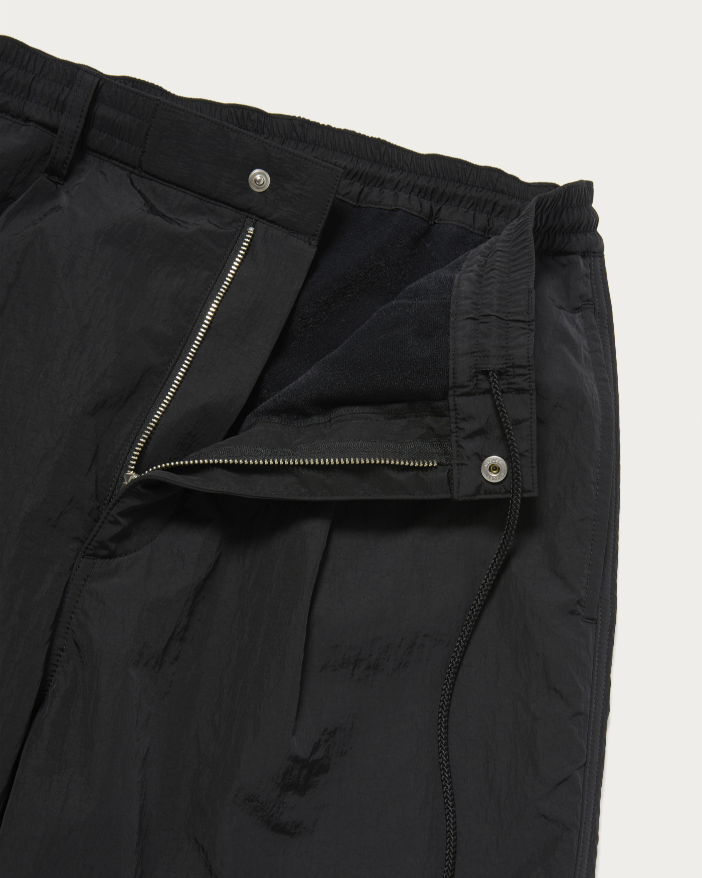 The outer surface is made of washer nylon, and the inside is lined with a brushed fabric for warmth, creating these easy-to-wear cold-weather pants. The surface has a moderate sheen, and this season, we recommend styling them to take advantage of the contrast with warm tops.