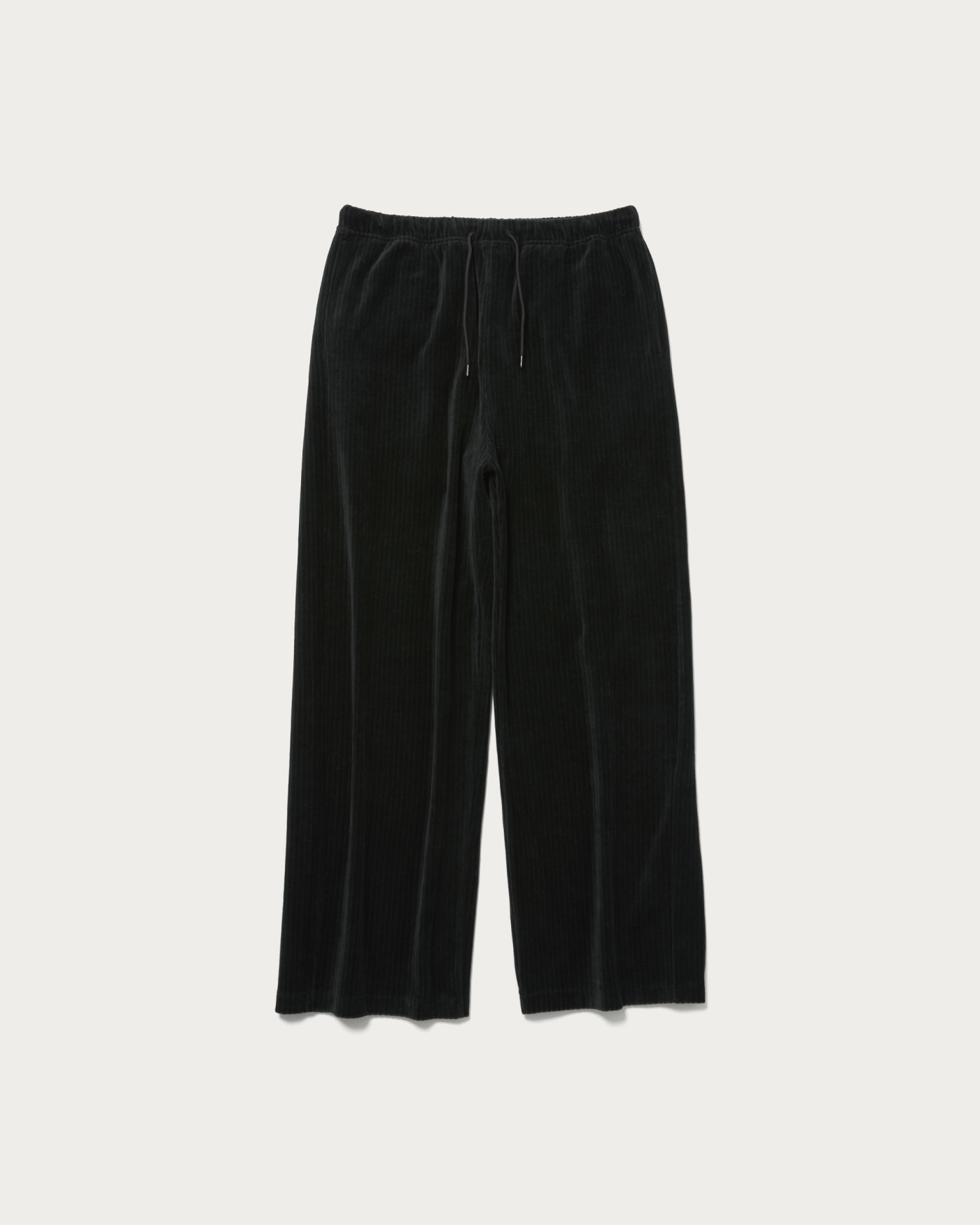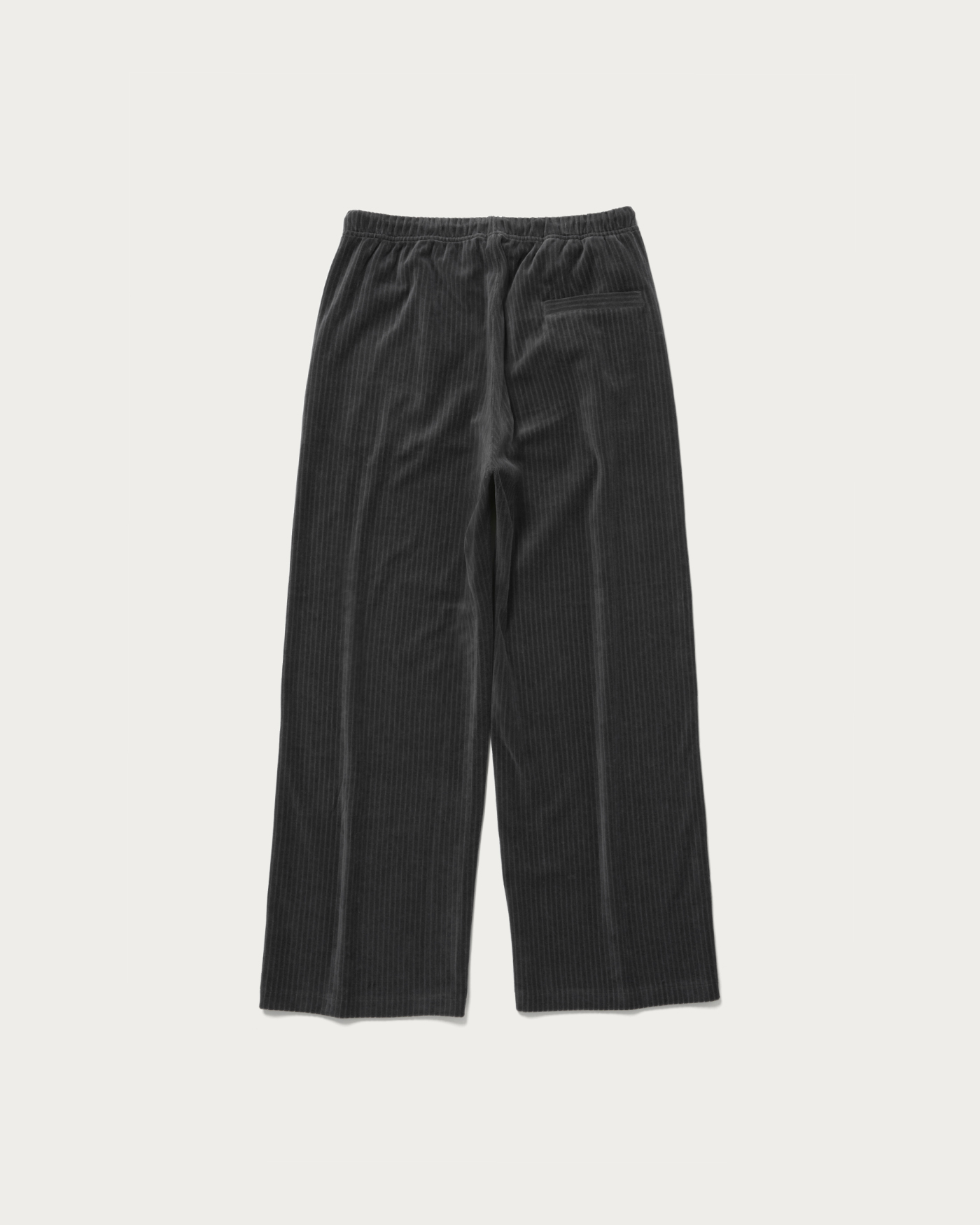 Easy pants made from velour fabric with a corduroy-like appearance, cut in a striped pattern. The silhouette is a popular baggy style from Monkey Time, offering a more refined look than sweatpants, resulting in relaxed yet stylish pants.