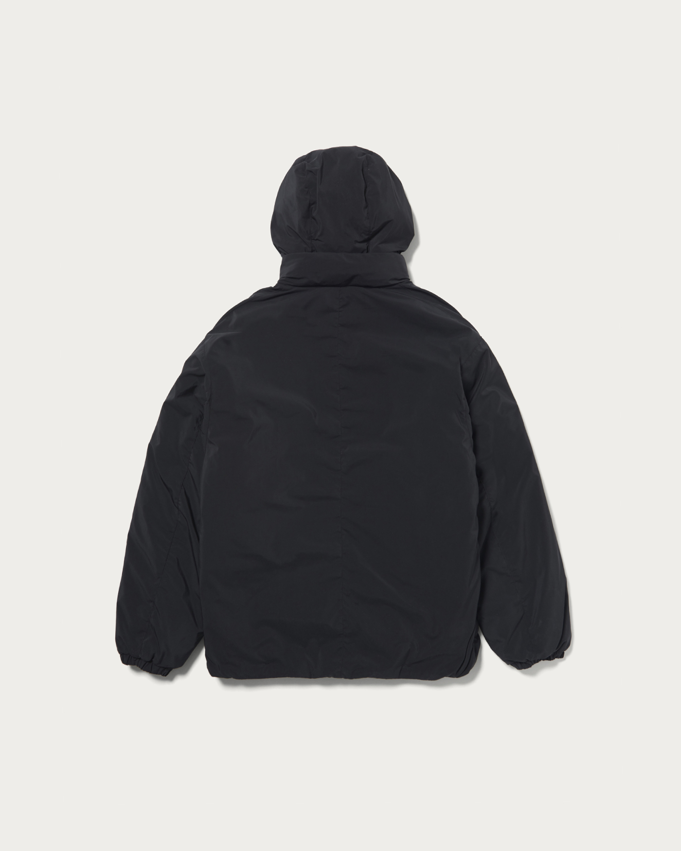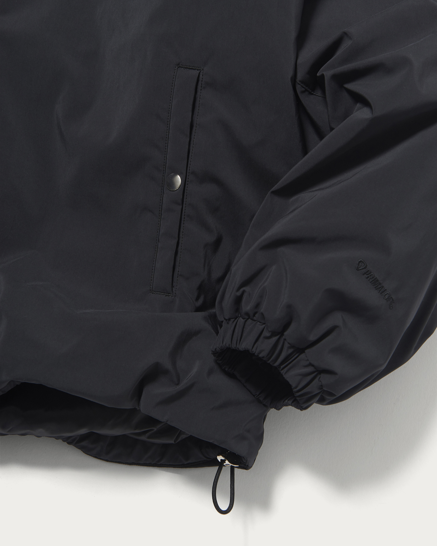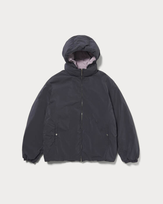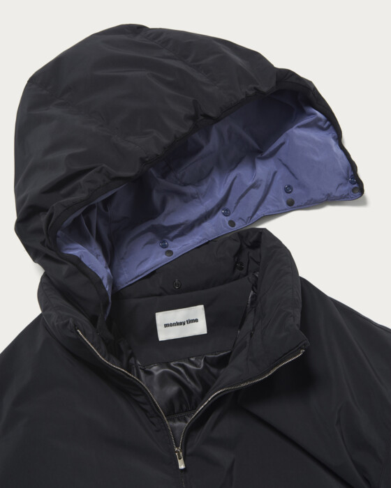 A sophisticated taffeta material with a water-repellent finish is used for the outer fabric, and PRIMALOFT® BLACK INSULATION is employed for the padding in this warm hooded jacket. The hood is detachable and can be reversed to show a contrasting color, adding an accent to your outfit. By tightening the stretch cord at the hem, you can reduce wind penetration and ensure warmth.