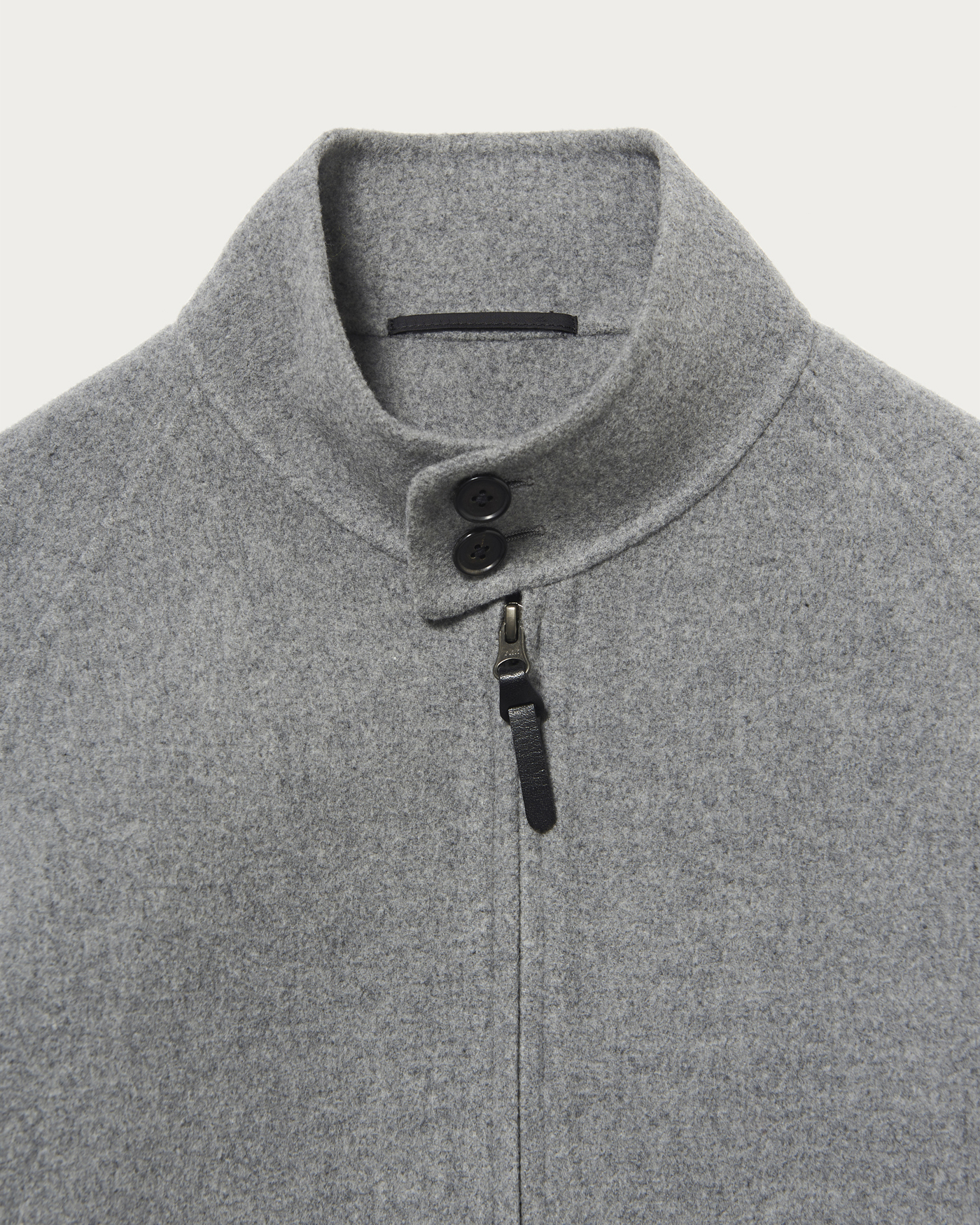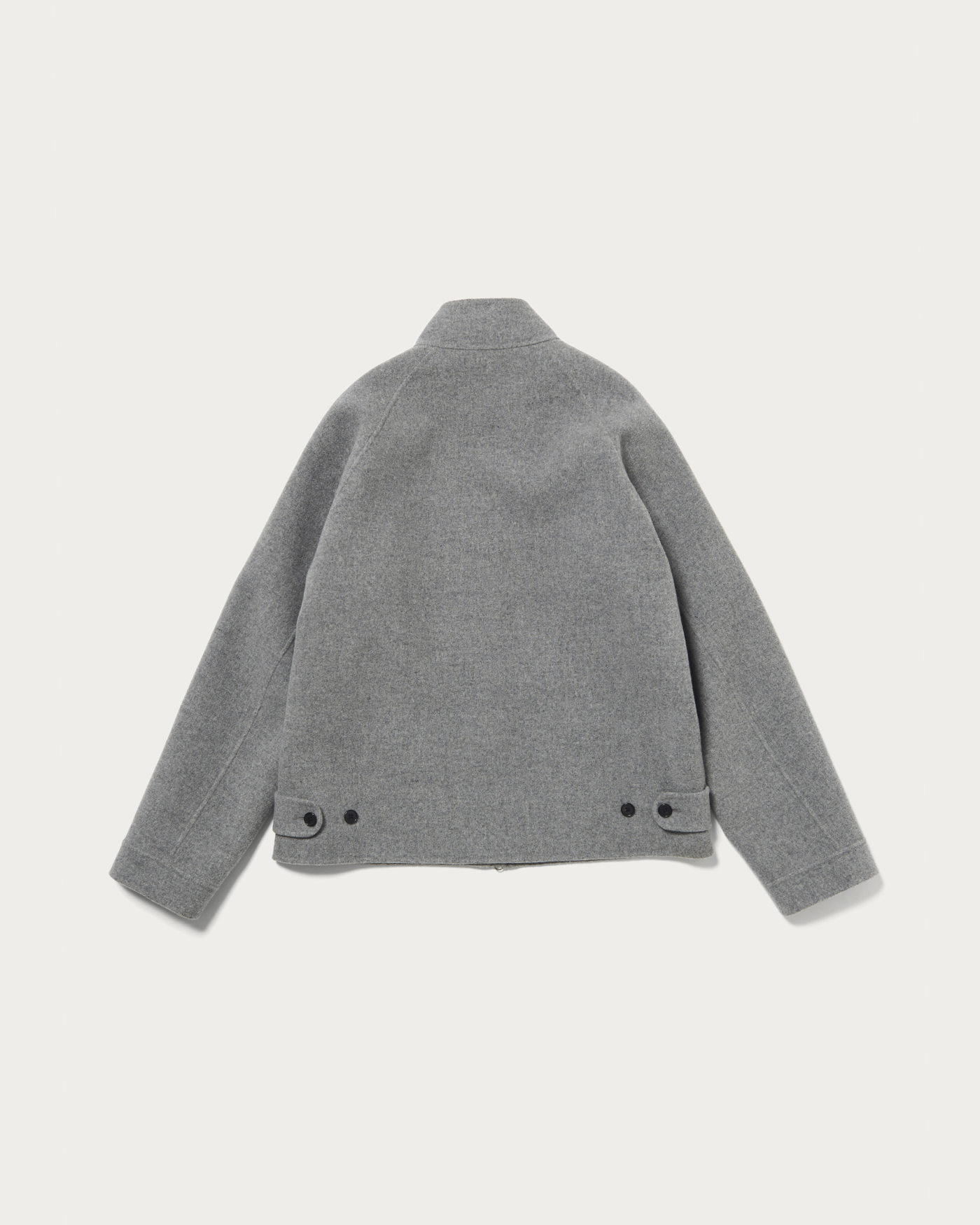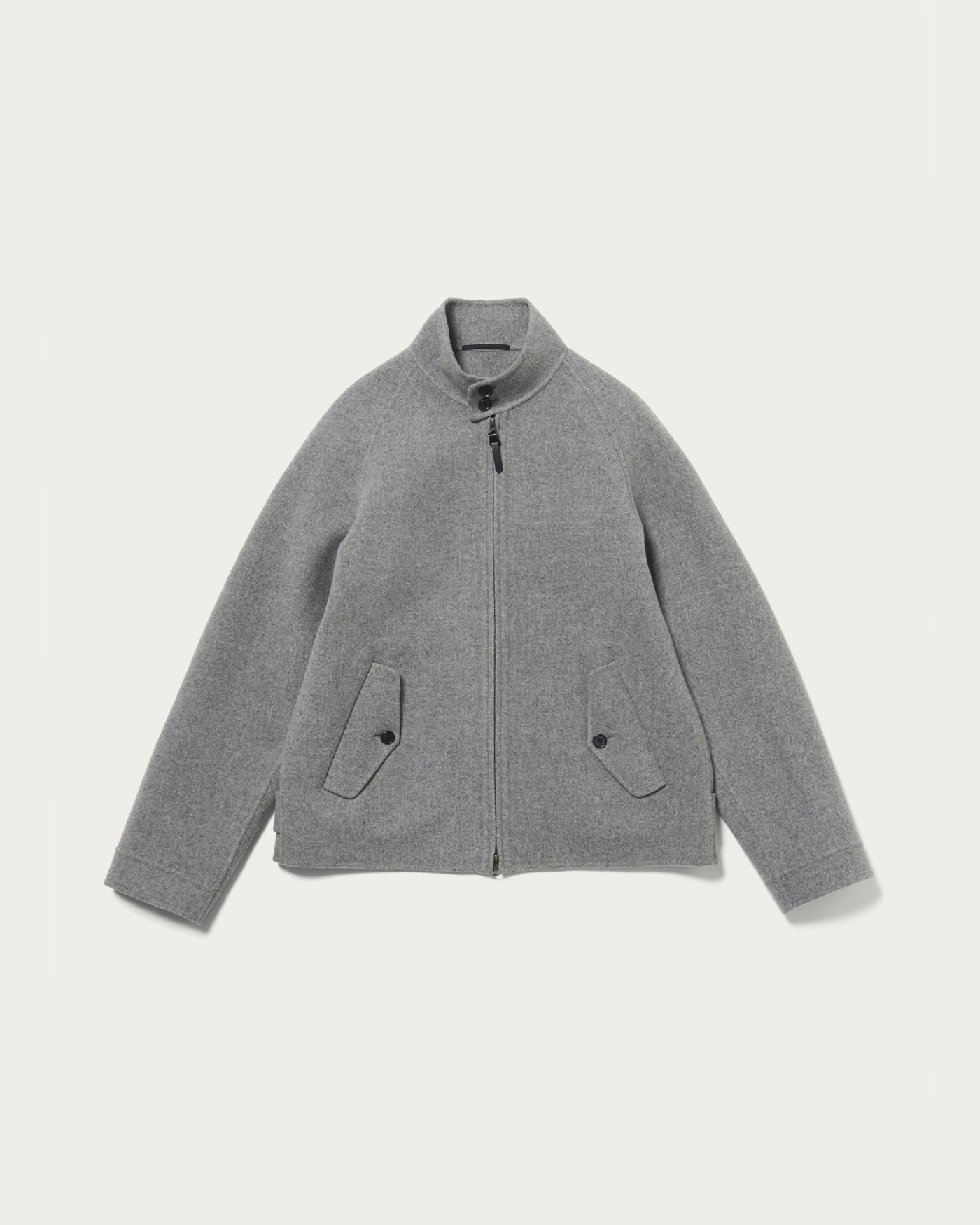 Harrington jacket made from wool-cashmere double-face material. Crafted with reversible stitching, it offers a thick yet soft texture, achieving an elegant appearance and a light, comfortable fit. Designed with ample room around the arms for a wide range of motion, it features a bold silhouette that can also be worn as a coat. The material is double-face, woven by bonding two layers of fabric into one. By blending cashmere, it balances a plush thickness with suppleness, and the velour finish gives it a soft and warm texture.