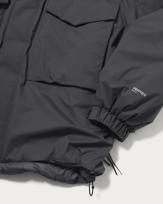 A custom model based on the "G8 JACKET" and "WEP JACKET" used by the US NAVY. While respecting the original design, the neck and hem have been functionally and comfortably restructured for better wearability. By using PERTEX material, the outerwear is crafted to combine lightness with a soft feel.