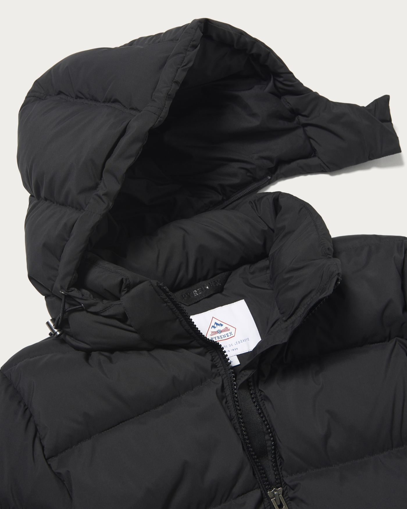 The iconic model "Sputnik Jacket" represents 〈PYRENEX〉. This simple hip-length hooded jacket features fine quilt stitching throughout and has been a beloved staple in France for many years. In the United Arrows exclusive edition, a very soft material called "Smooth" is used, which has a peach skin-like texture with reduced gloss and natural stretch. The brand logo is finished in the same color. The hood is detachable.