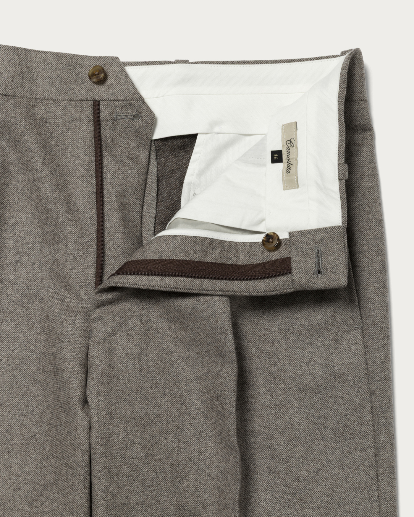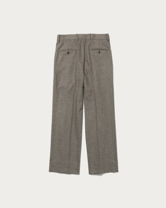 Trousers crafted with a moderately thick straight silhouette. They feature a well-balanced silhouette that avoids excessive flare, making them perfect for pairing with a jacket of the same material as a set-up, or for enjoying a wide range of styling options on their own. Made with fabric from the renowned Italian company VITALE BARBERIS CANONICO, they boast a high-quality texture and beautiful drape.
