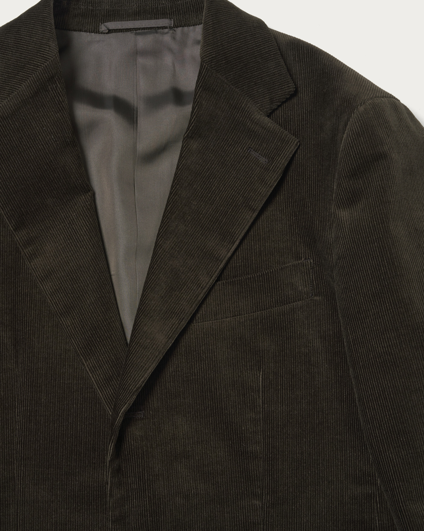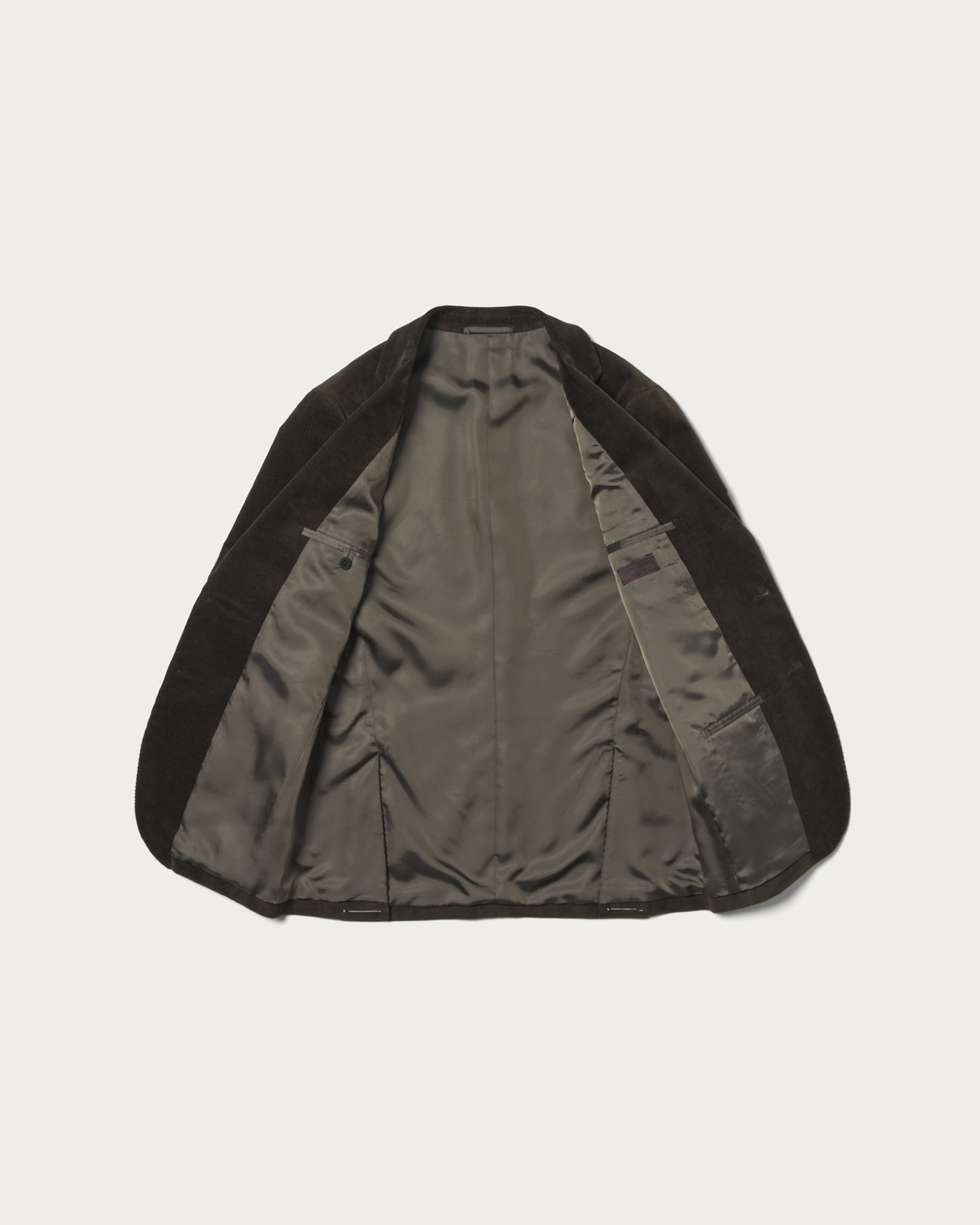 A jacket that combines a soft tailoring with a sporty texture, allowing you to enjoy a relaxed feeling. The slightly low-gorge notch lapel, subtly gathered sleeves, and naturally shaped three-roll-two buttons exude an air of sophistication. The material used is fine-wale corduroy crafted by the renowned "VISCONTI" company. It boasts an elegant sheen and smooth texture, thanks to Italy's top-notch pile-cutting technology. Matching trousers made from the same fabric are also available, and wearing them as a set is highly recommended.
