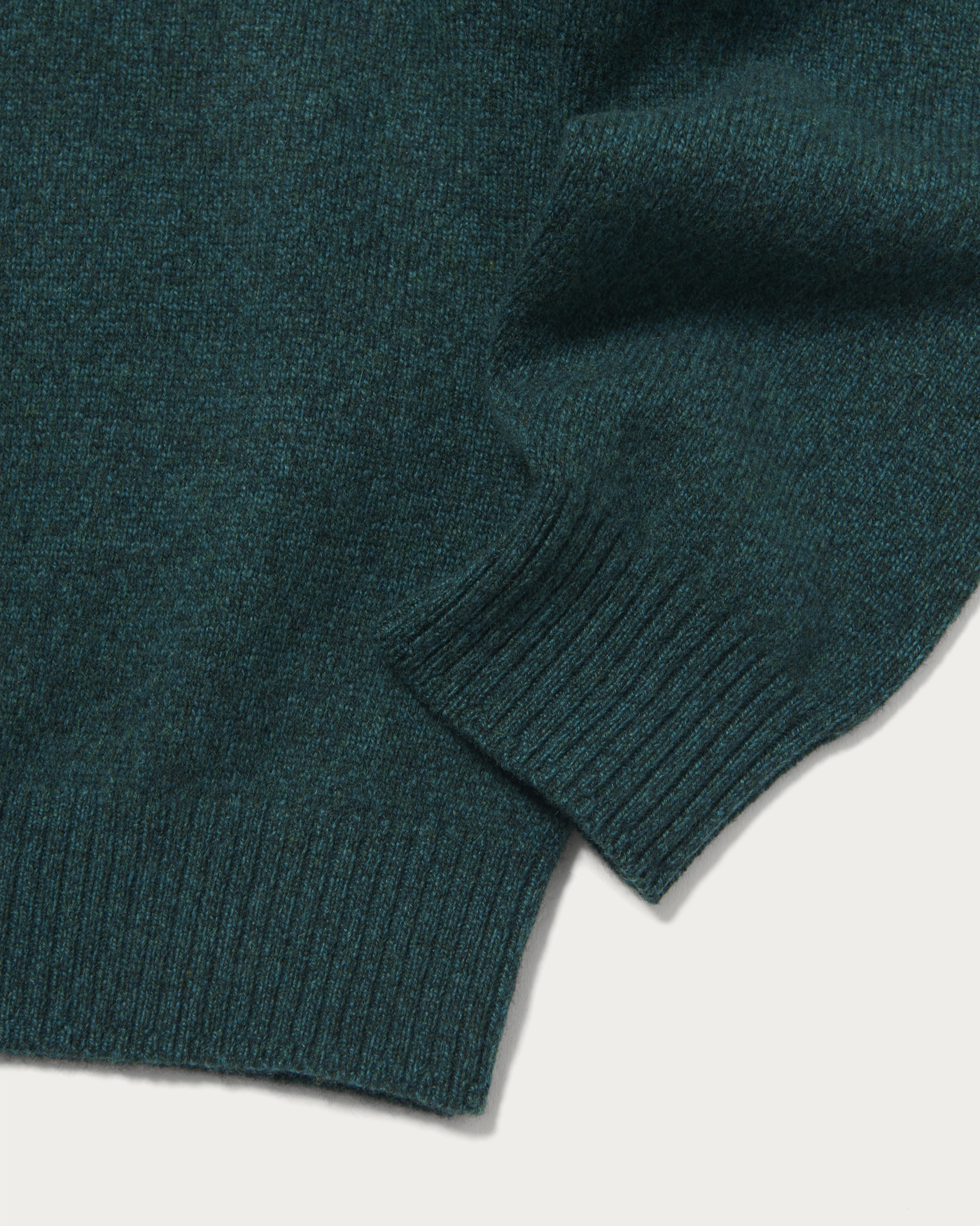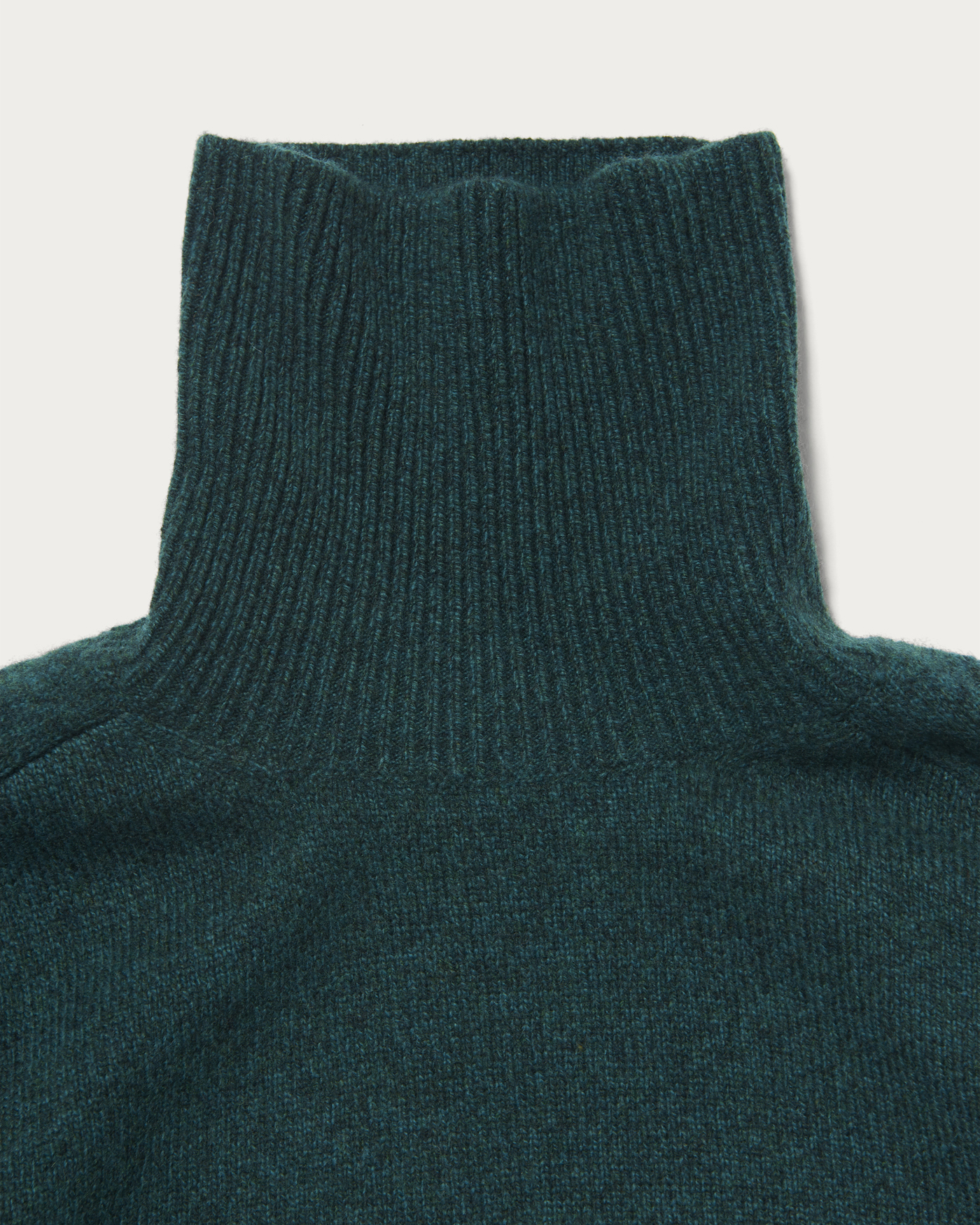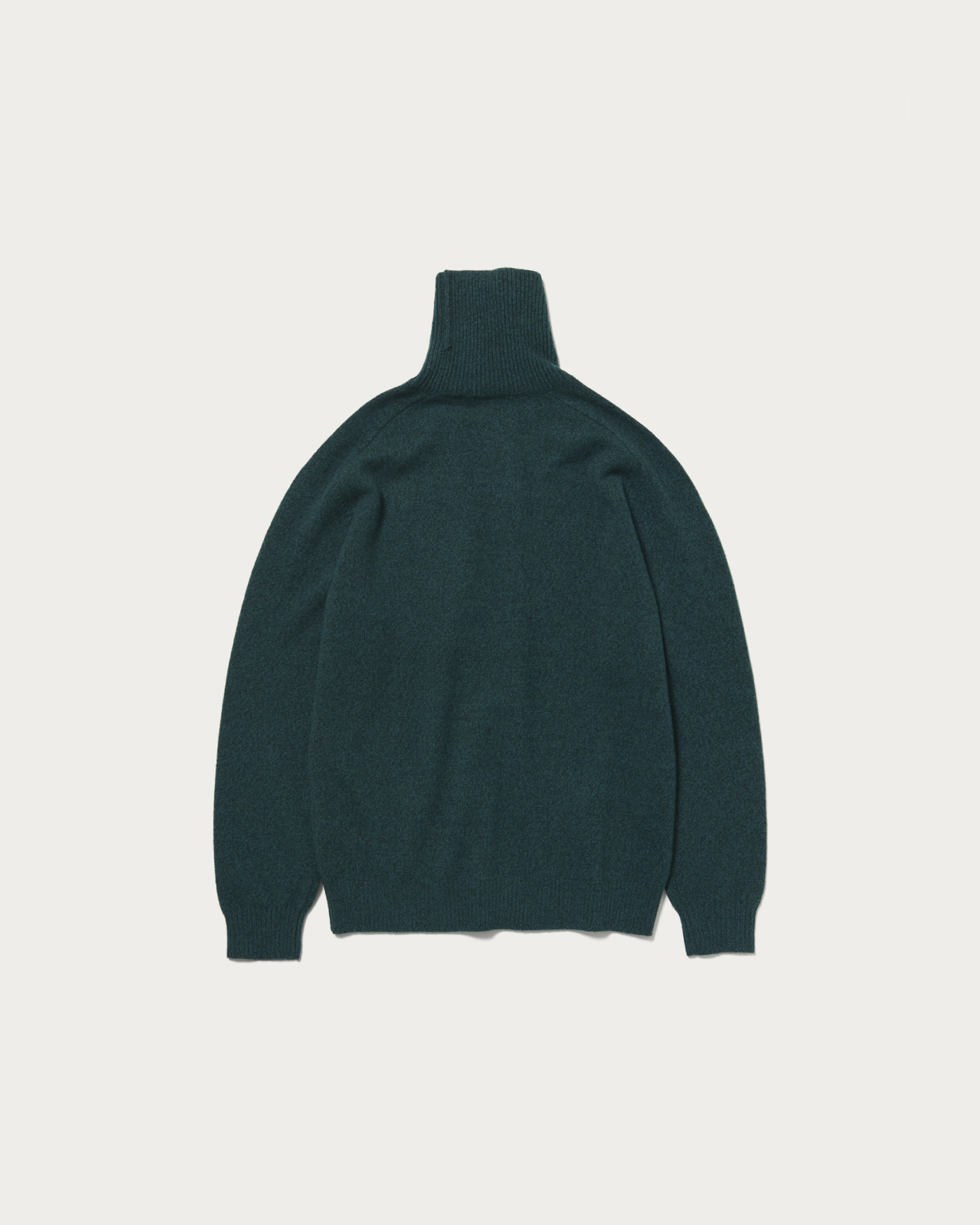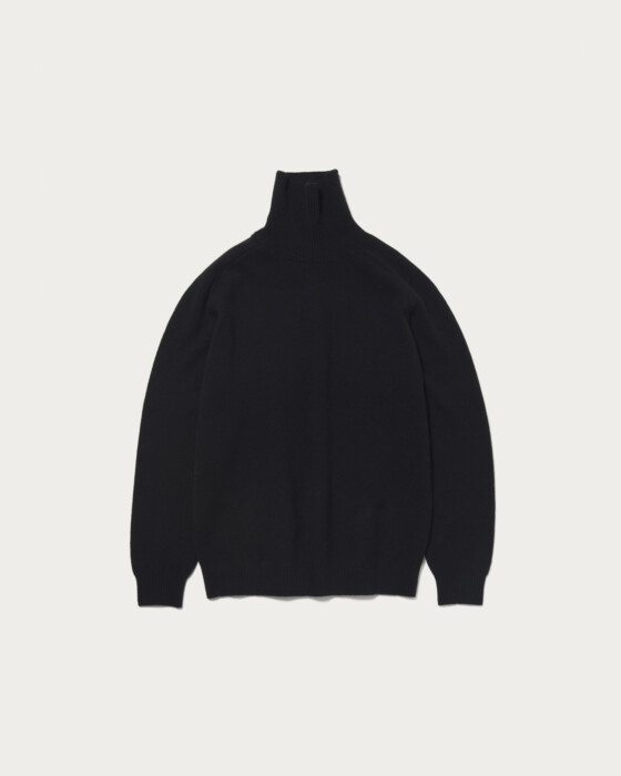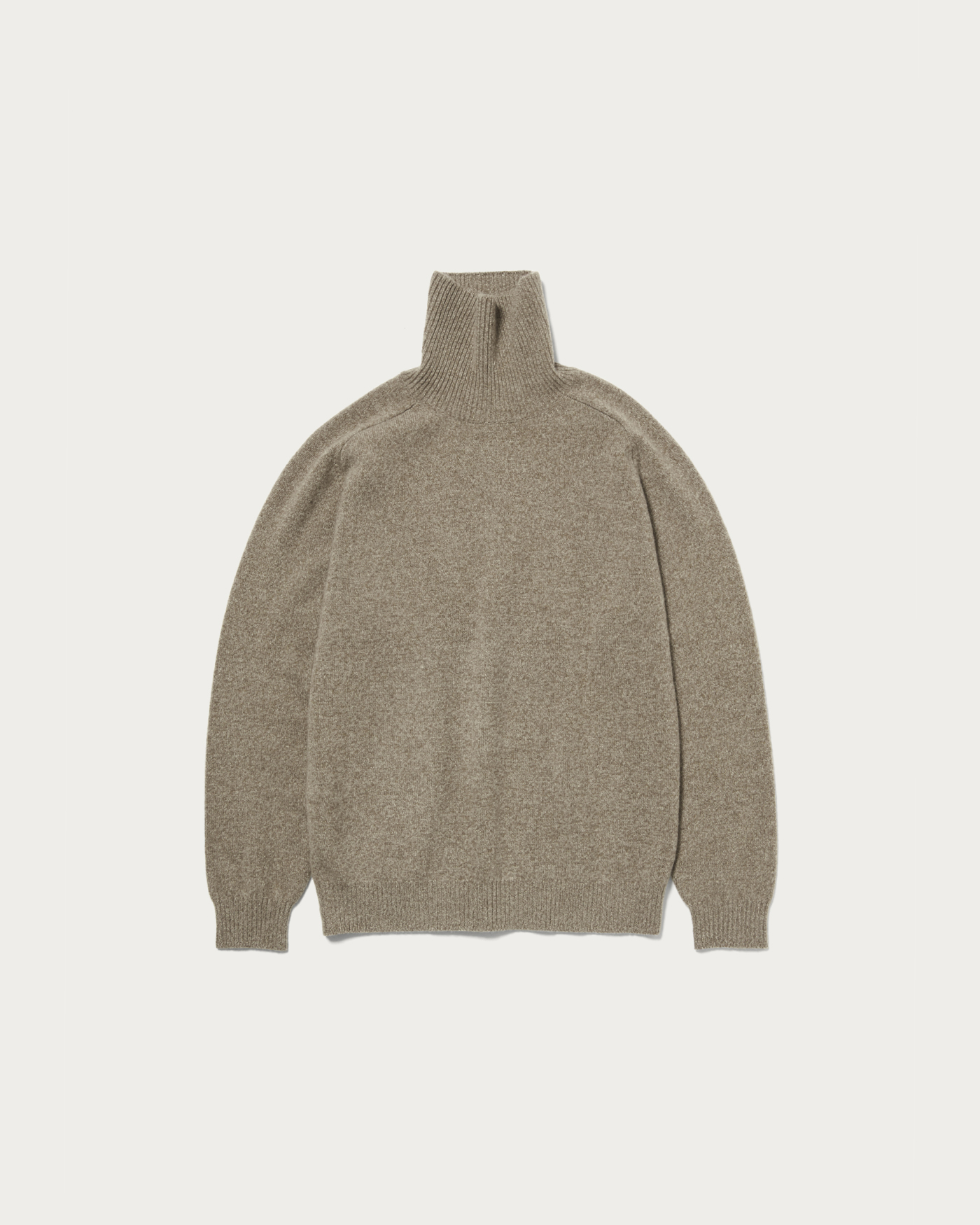 This turtleneck knit made from wool and cashmere highlights the quality of its materials. While maintaining an authentic design, subtle accents are added to the saddle shoulders and ribbed sections, giving it a presence that stands out even when worn alone. The yarn blended with cashmere offers a smooth touch, natural sheen, and an enveloping comfort that is truly appealing. The material used is 7-gauge wool-cashmere jersey from "BIAGIOLI MODESTO." The soft and elegant texture unique to the cashmere blend, combined with the beautiful coloration characteristic of Italian yarn, exudes a luxurious mood. The depth of color and rich expression created by the mélange-style yarn is also one of the knit's many charms.