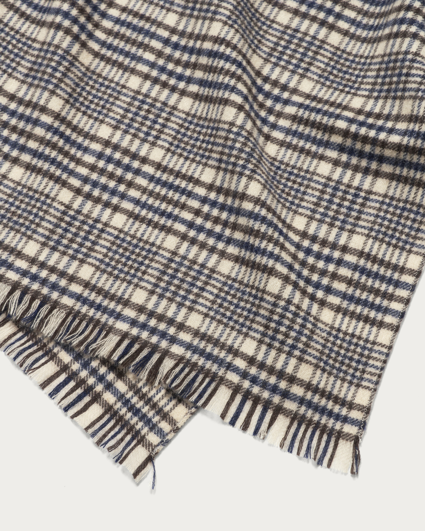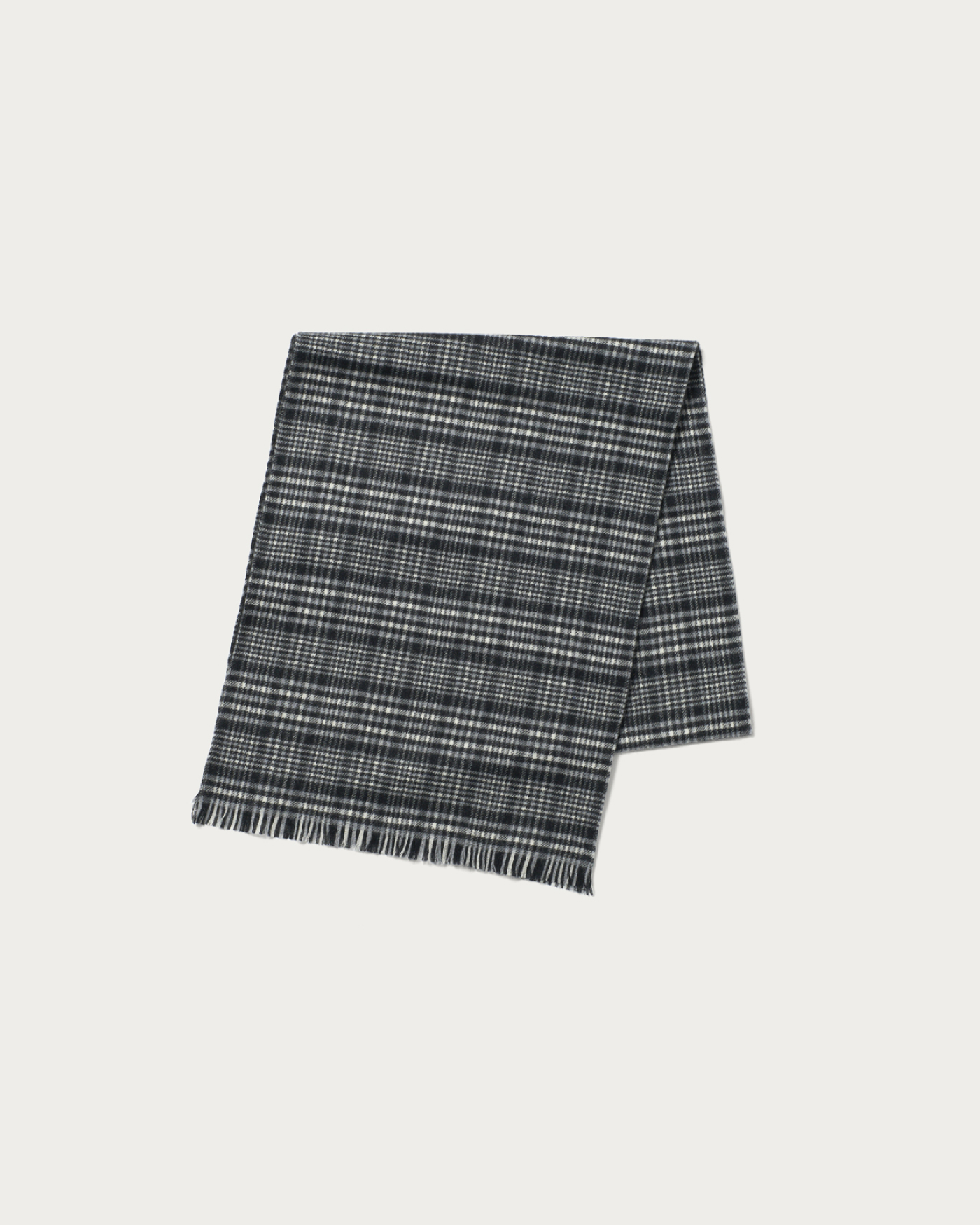 Lighter and more effortless. The Light Cashmere Series scarf is developed for comfortable use throughout a long season. While using the same No. 26 single yarn as the RVS series, it differentiates itself by adjusting the total number of threads, achieving both lightness and softness. The pattern is an original design featuring a small check with slightly blurred boundaries. This gently diffused appearance, combined with the high-quality material, creates a calm and sophisticated impression.
