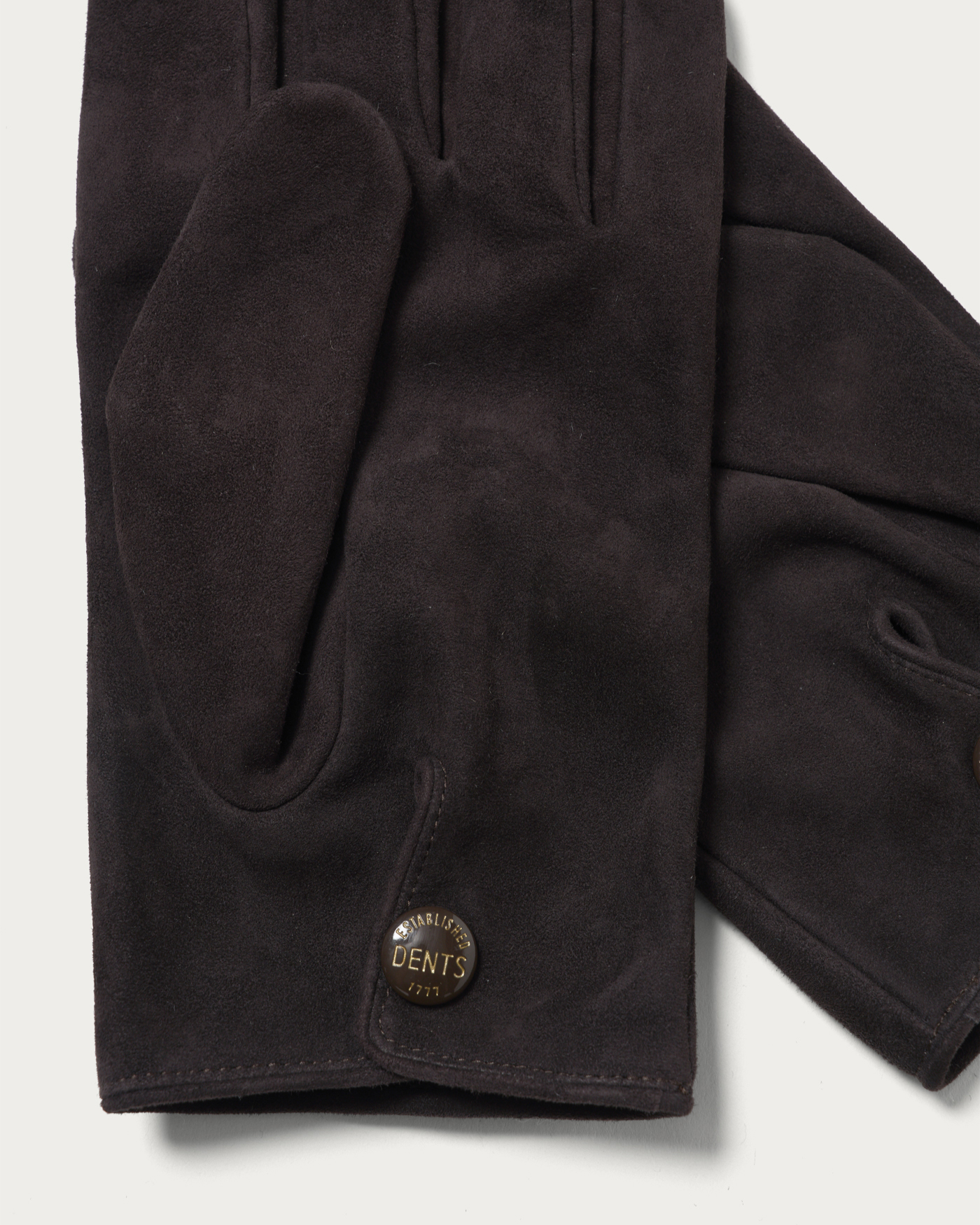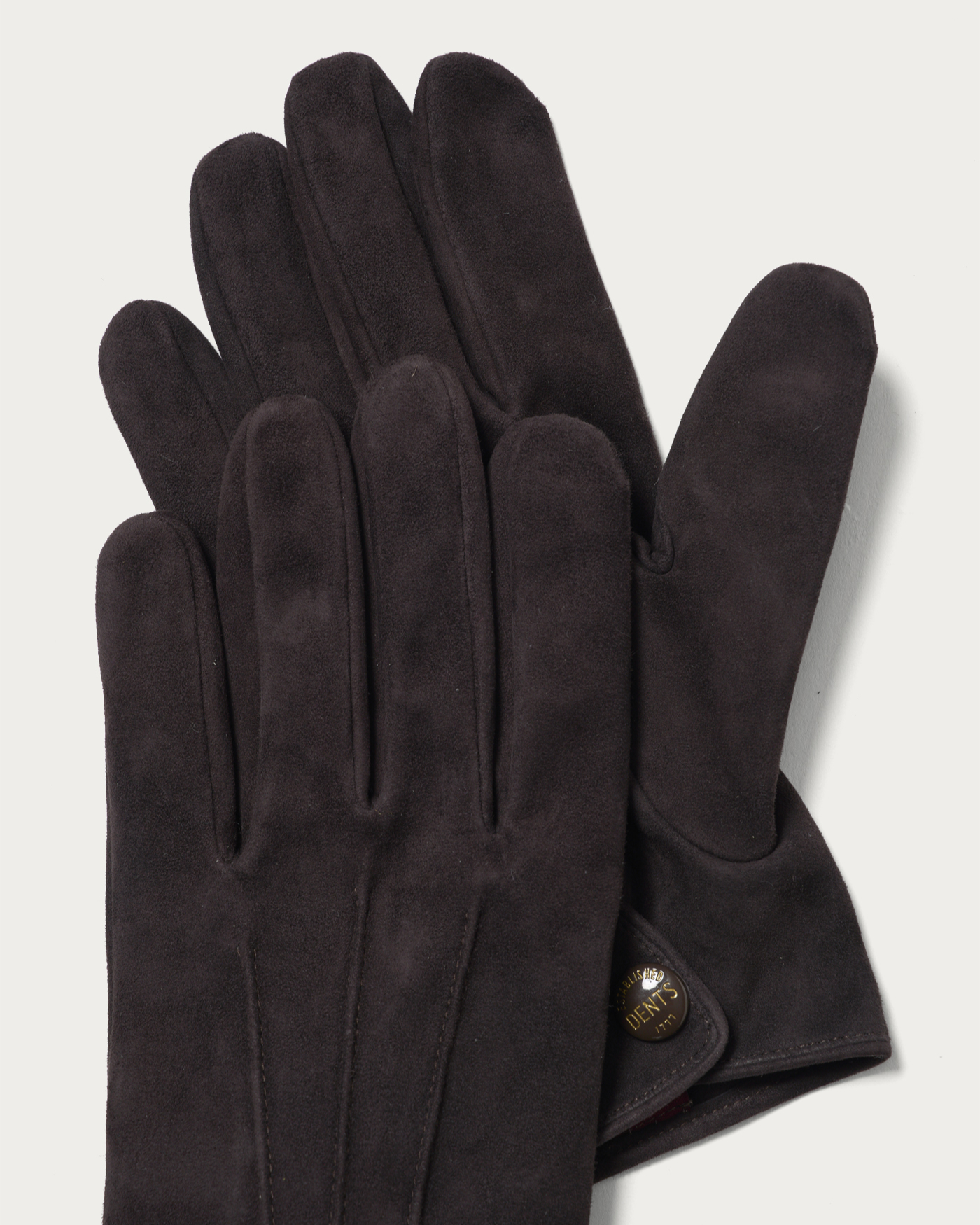 Suede Gloves by DENTS. This piece is crafted by a renowned British glove brand established in 1777. Made from supple, high-quality suede, it is tailored with exceptional cutting and sewing techniques. Its simple yet elegant appearance is a distinctive feature.