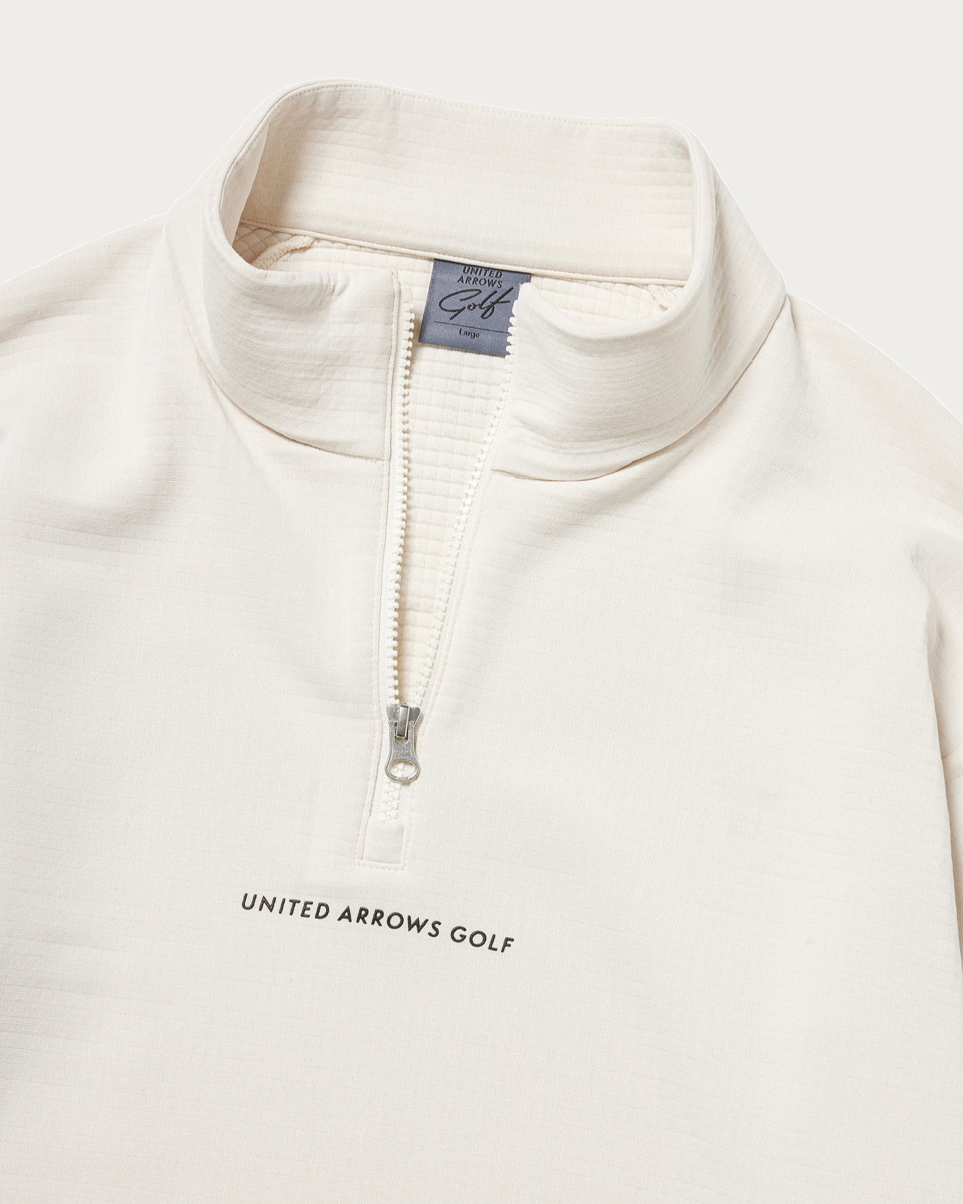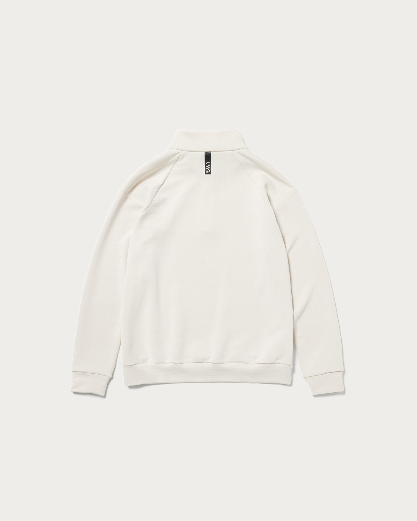A lightweight half-zip shirt with a brushed lining, making it suitable for wearing across multiple seasons. Its just-loose silhouette offers a versatile style. The shirt features a logo on the chest and the center of the back.