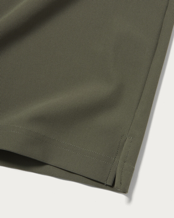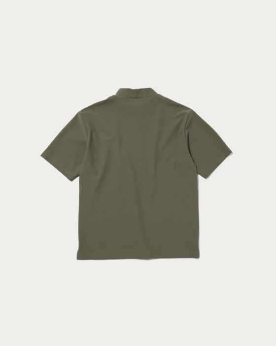 A mock neck shirt made from tightly twisted waffle fabric. It features a design with a large logo on the chest that feels great against the skin. The use of split raglan sleeves ensures a full range of motion during swings.