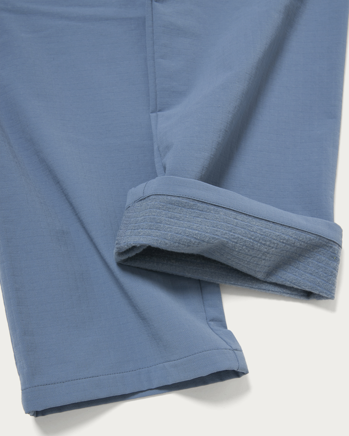 Basic tapered pants made from high-density twill fabric. The wrinkle-resistant texture and moderate stretch provide ease of movement. They can also be worn as a set with a matching top made from the same material.