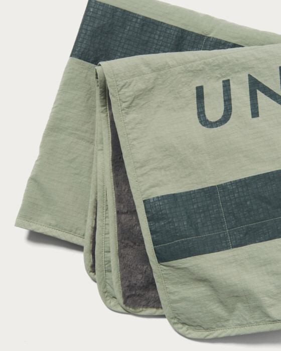 A blanket perfect for winter golf when temperatures drop. It features a simple design with a large brand logo. In addition to being used as a lap blanket, it can also be used as a seat cover for carts.