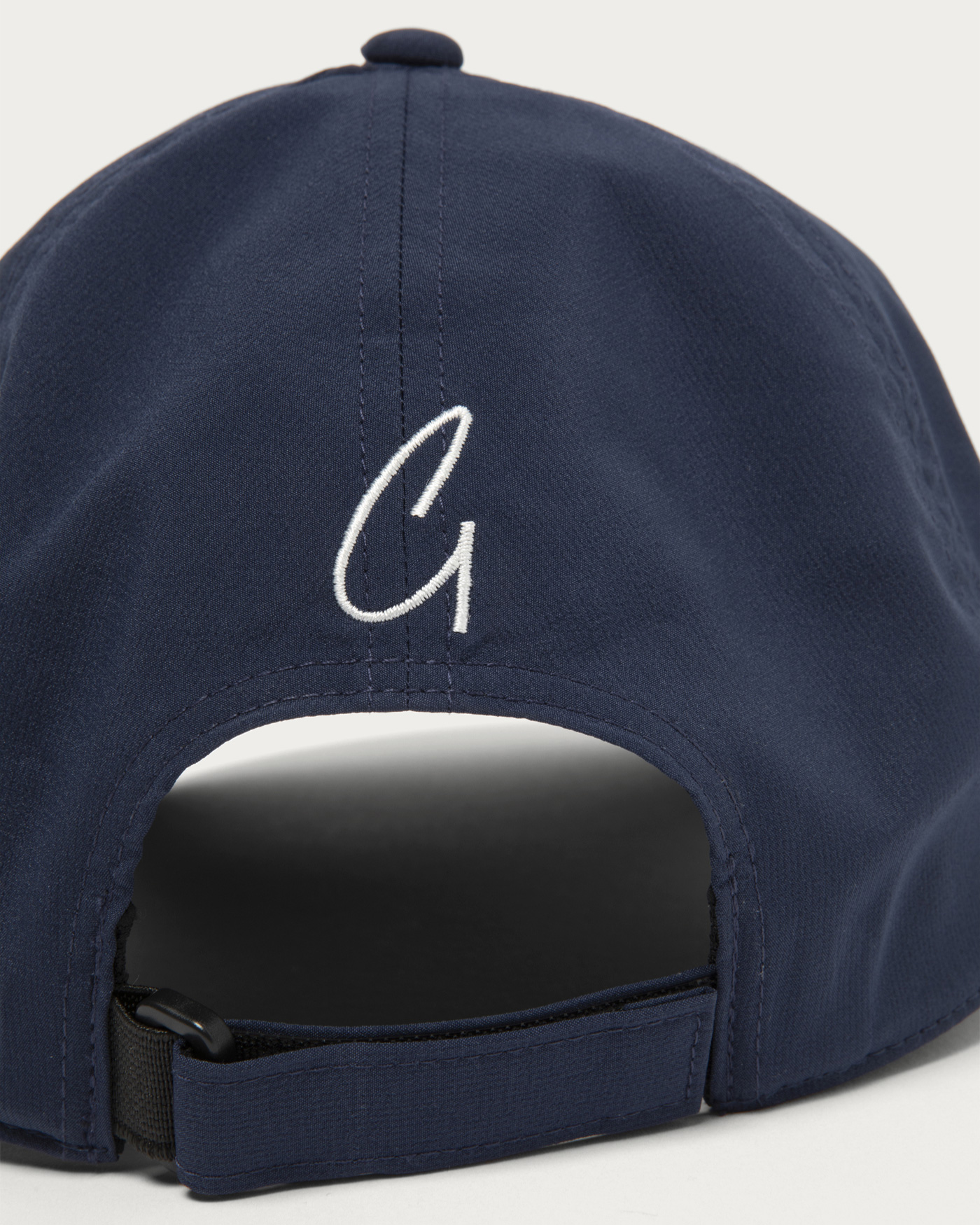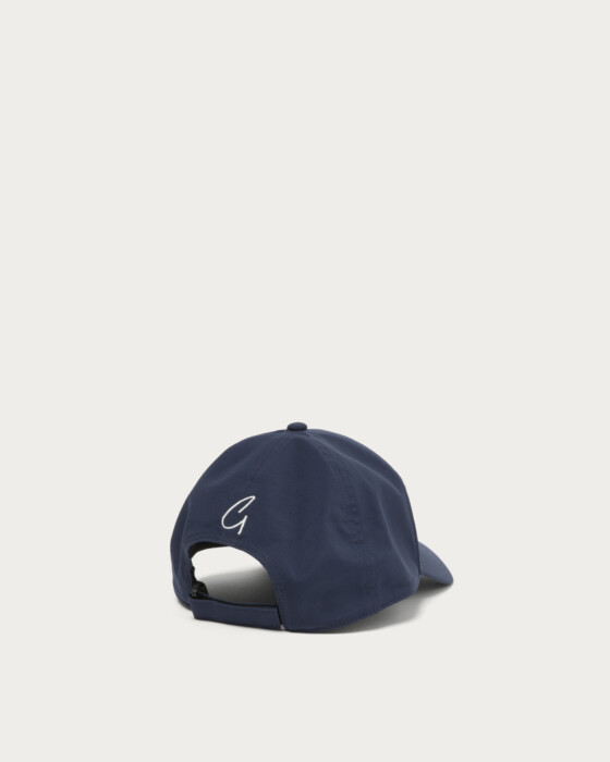 A 6-panel cap made from polyester material. It features a large logo on the front and an embroidered "G" on the back.