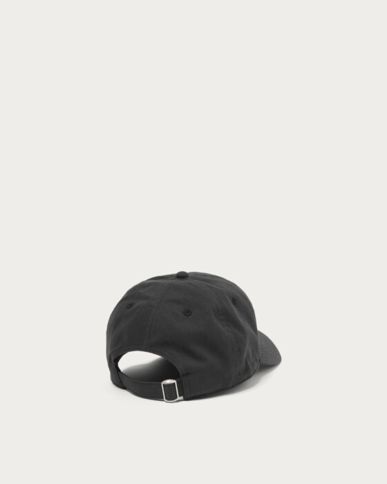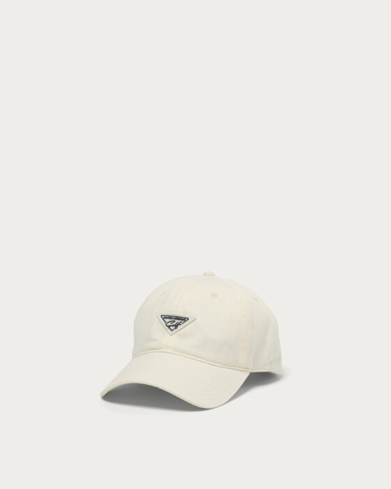A six-panel cap made from cotton-nylon material with a faded look. It features a triangular logo patch on the front and has a slightly shallow design.