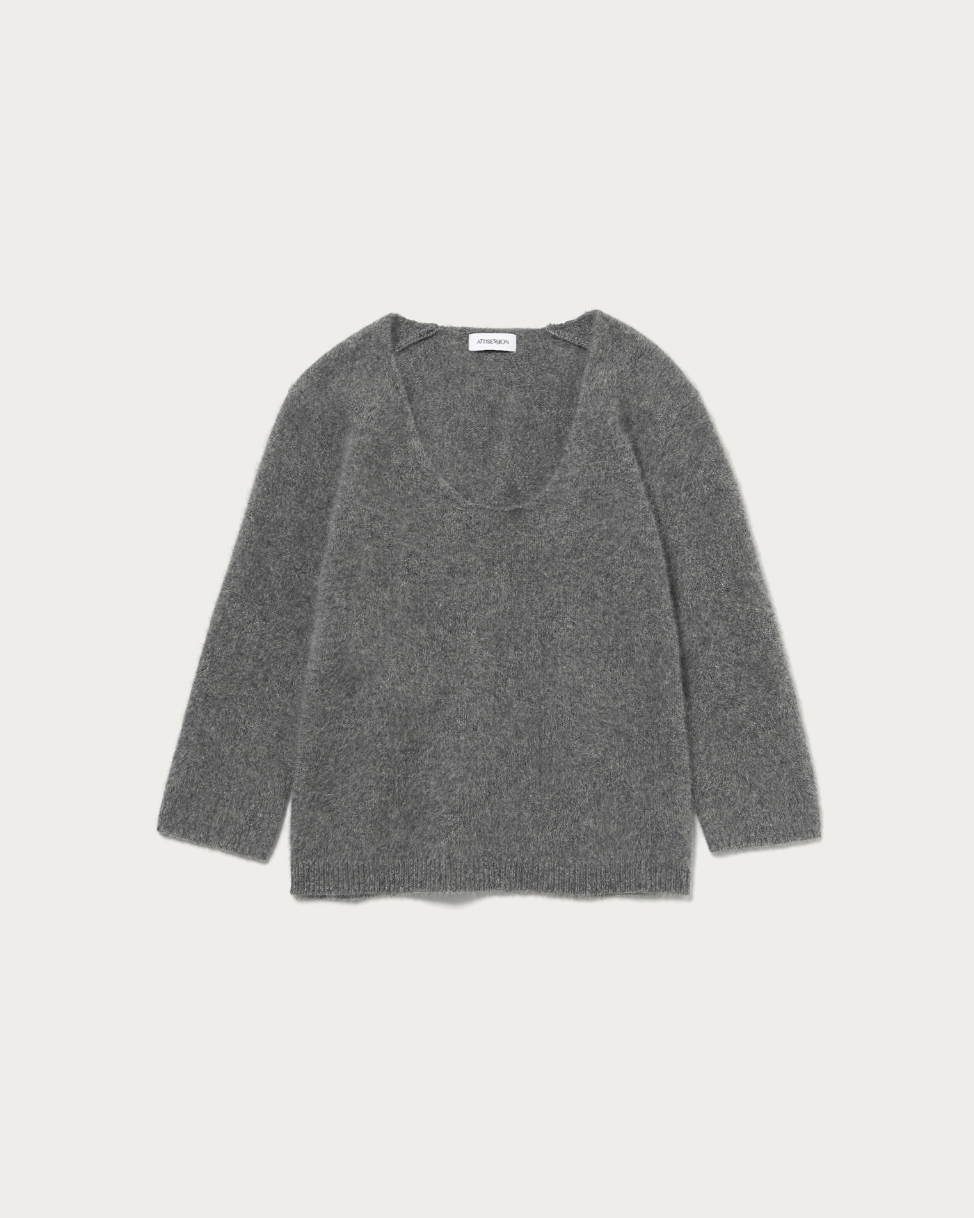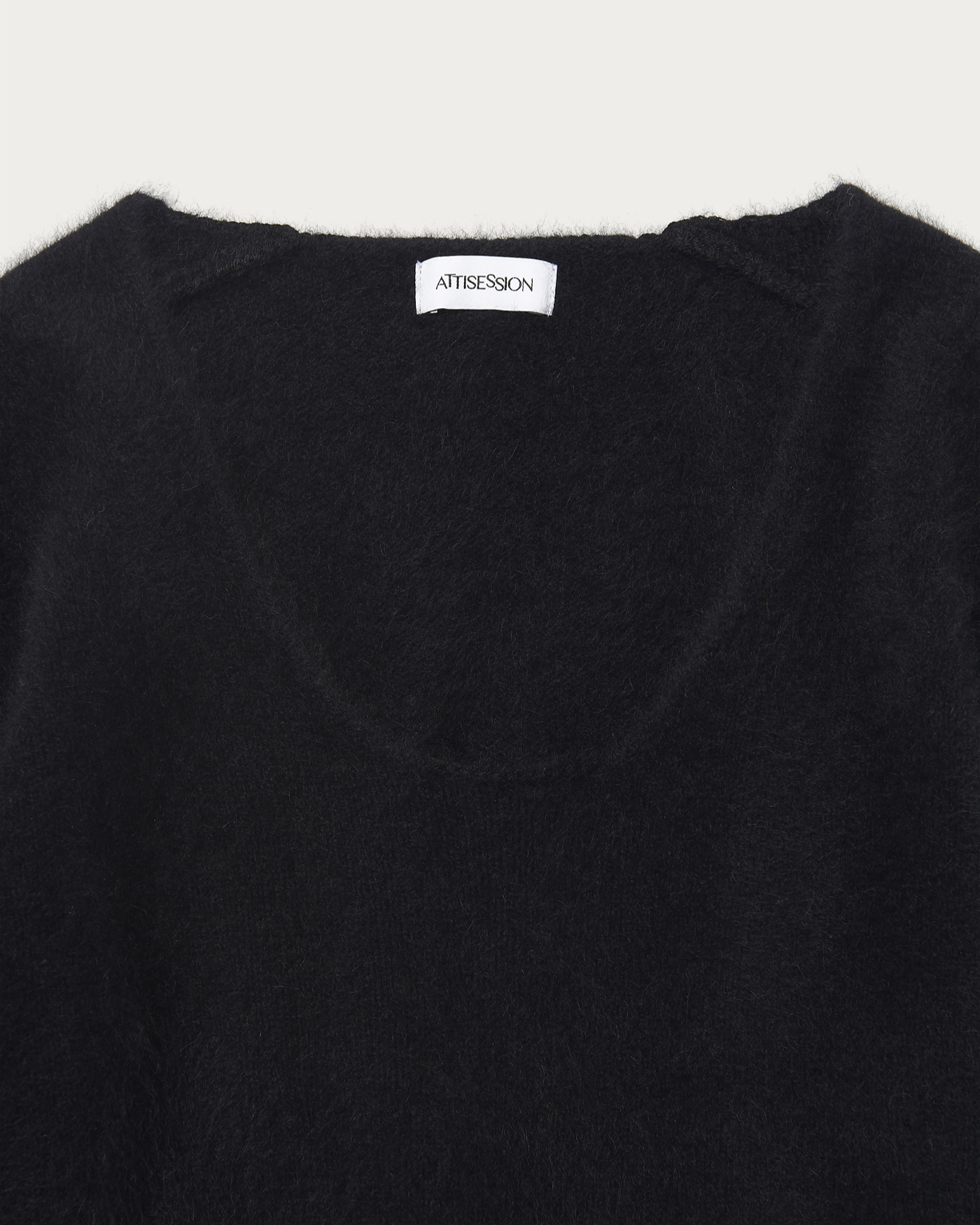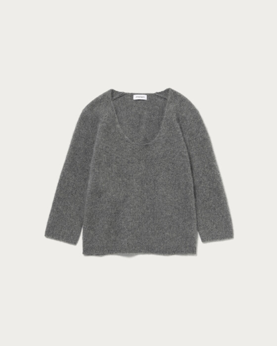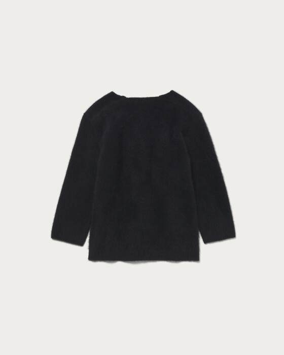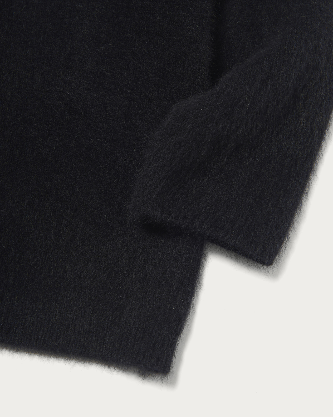 A relaxed silhouette with details that can be enjoyed layered with shirts and T-shirts. This piece is crafted with high-quality yarn, paying special attention to texture and feel.