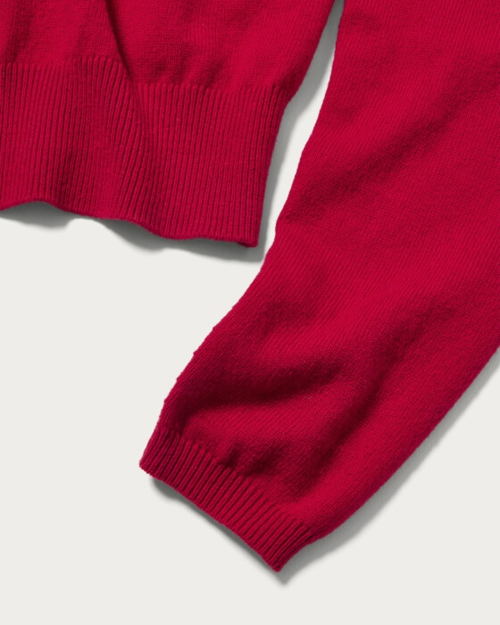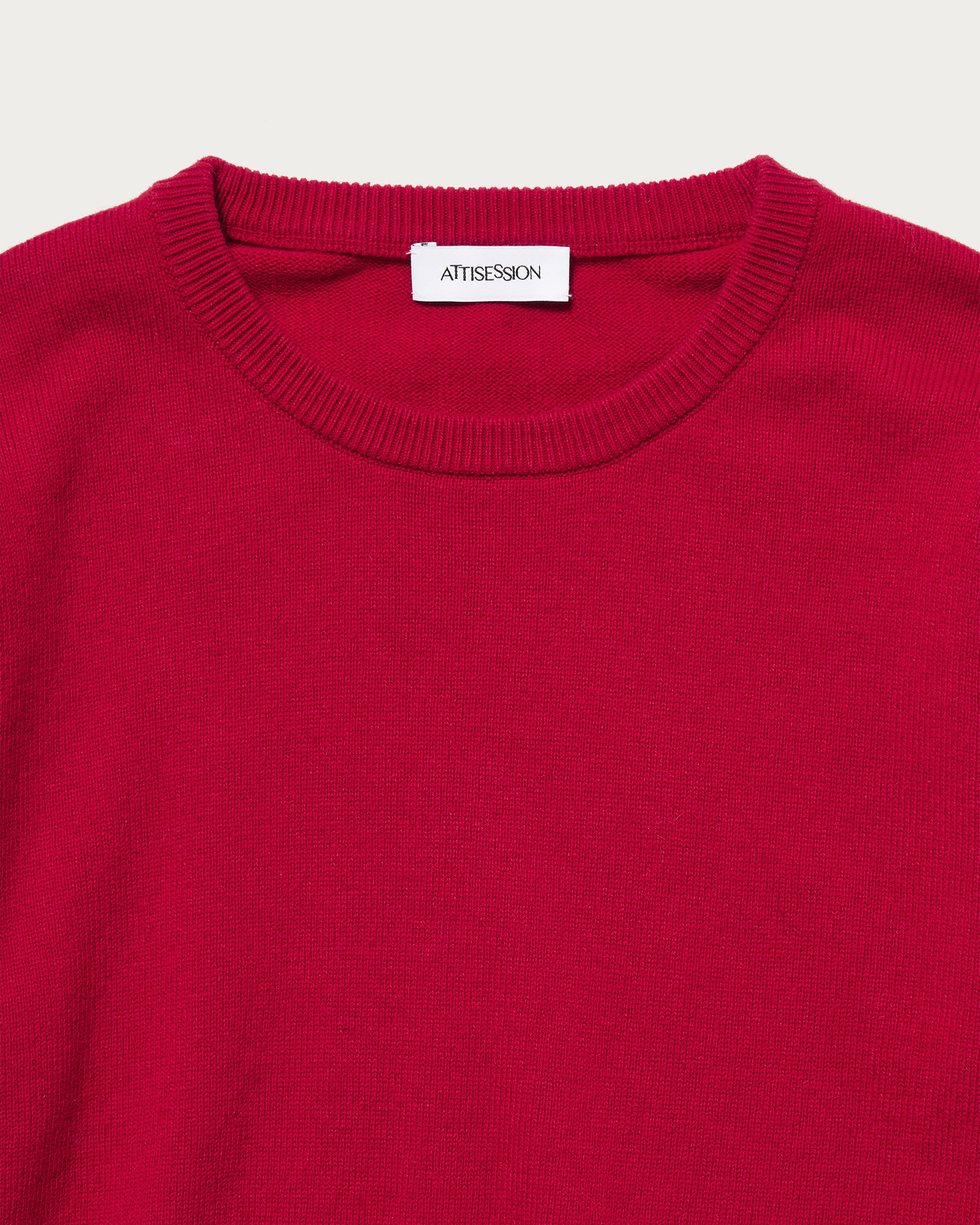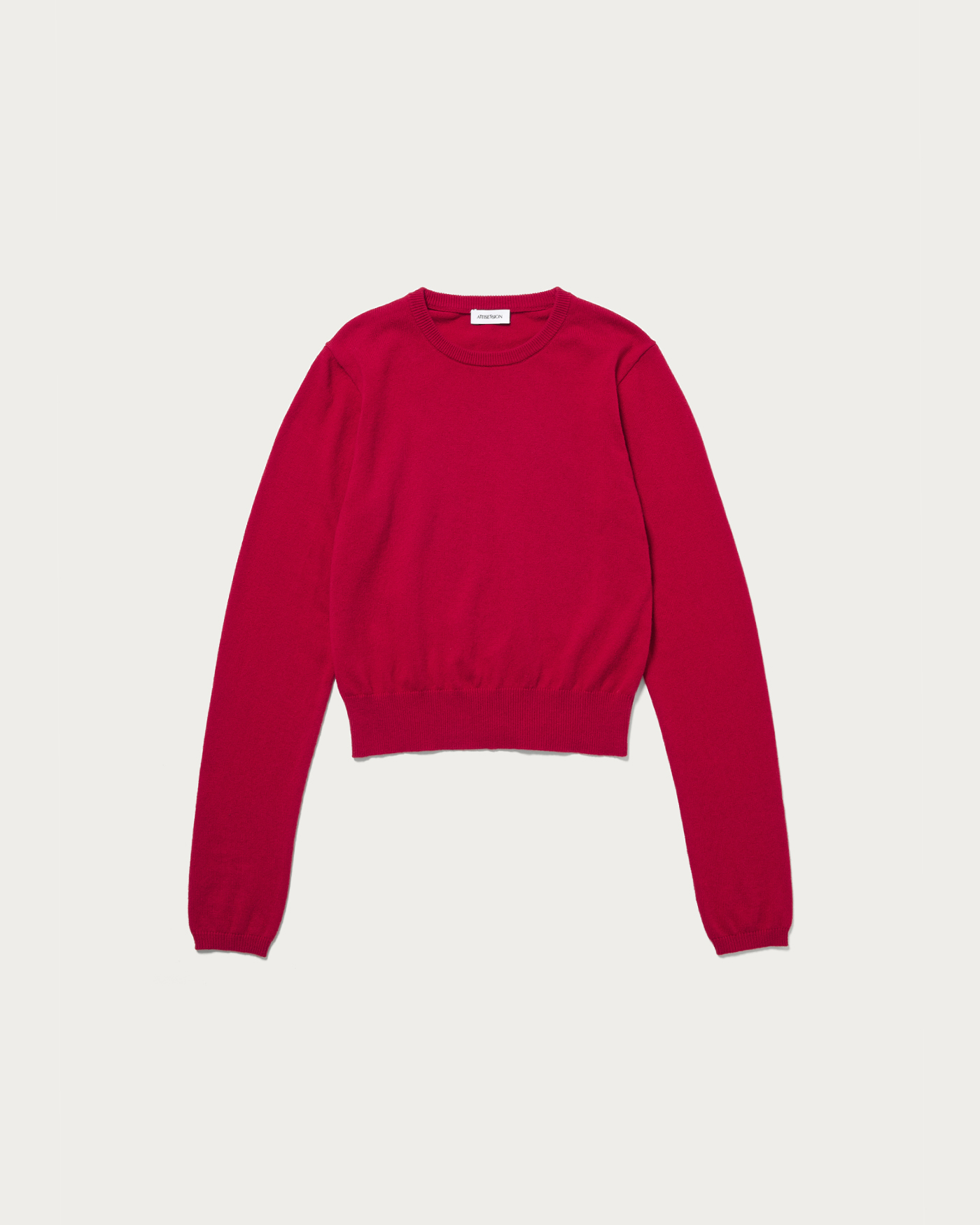 The knit pullover, which was well-received last year, has been refined by shortening the ribbed hem for a more basic look. It's a versatile piece that complements any outfit, making you want to collect it in different colors.