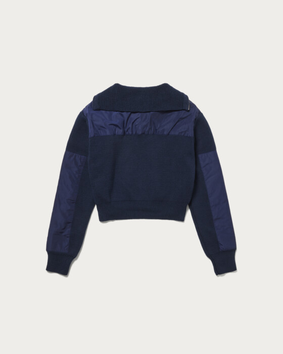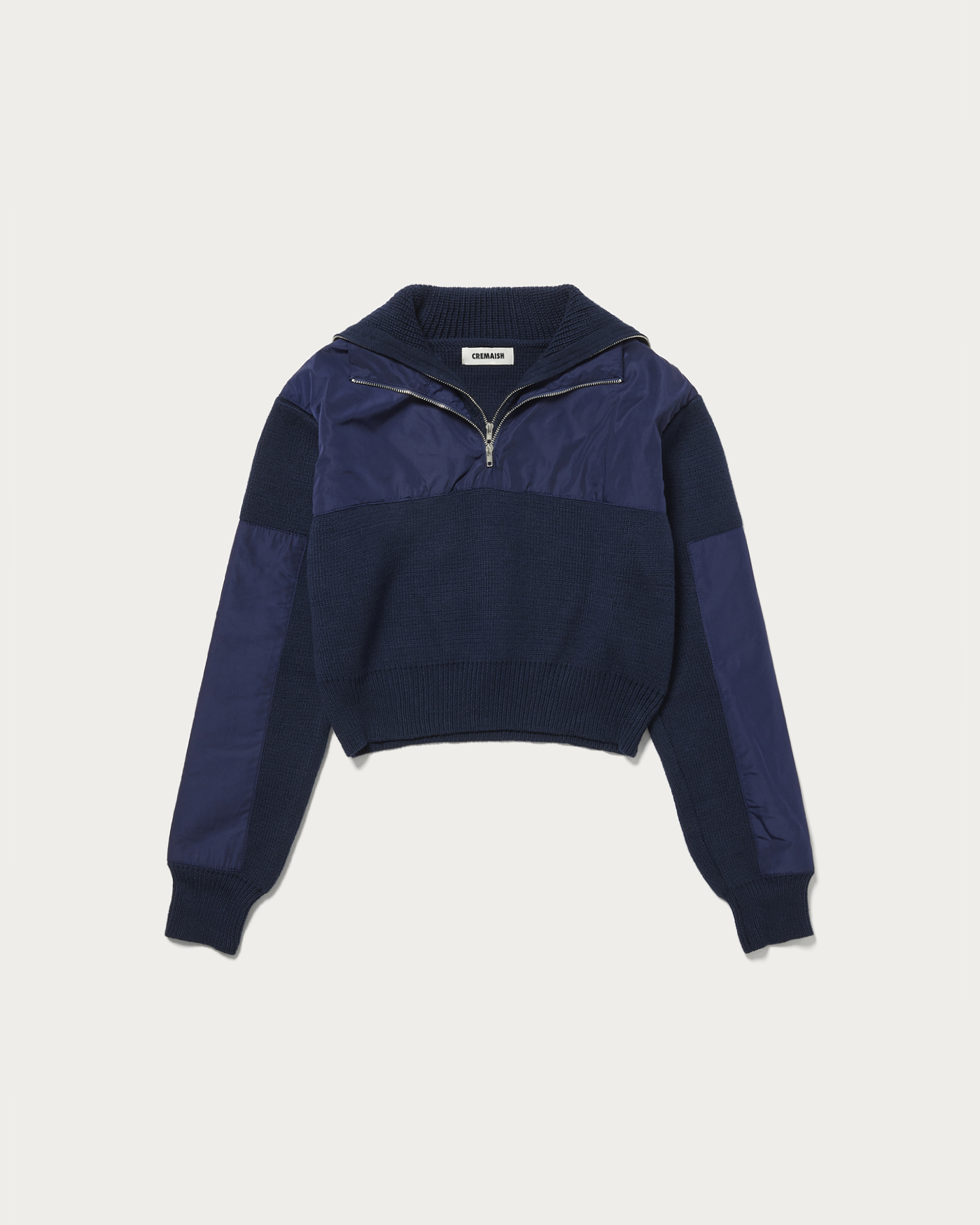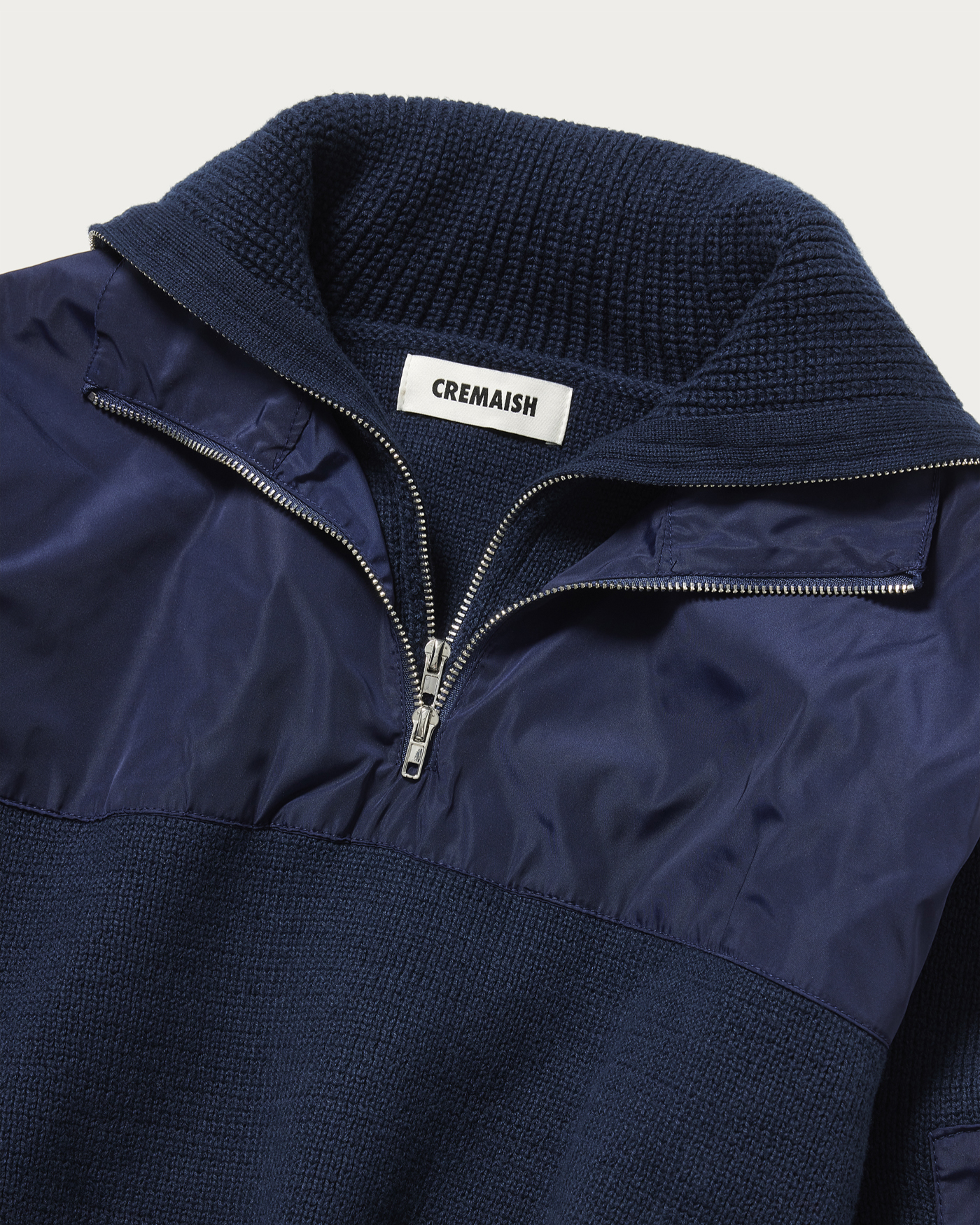 New York-based fashion brand 〈CREMAISH〉, with its headquarters in Guangzhou, presents a layered-look half-zip knit. A design that stands out on its own.