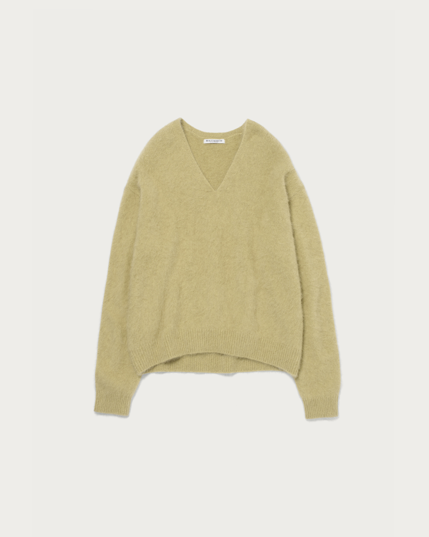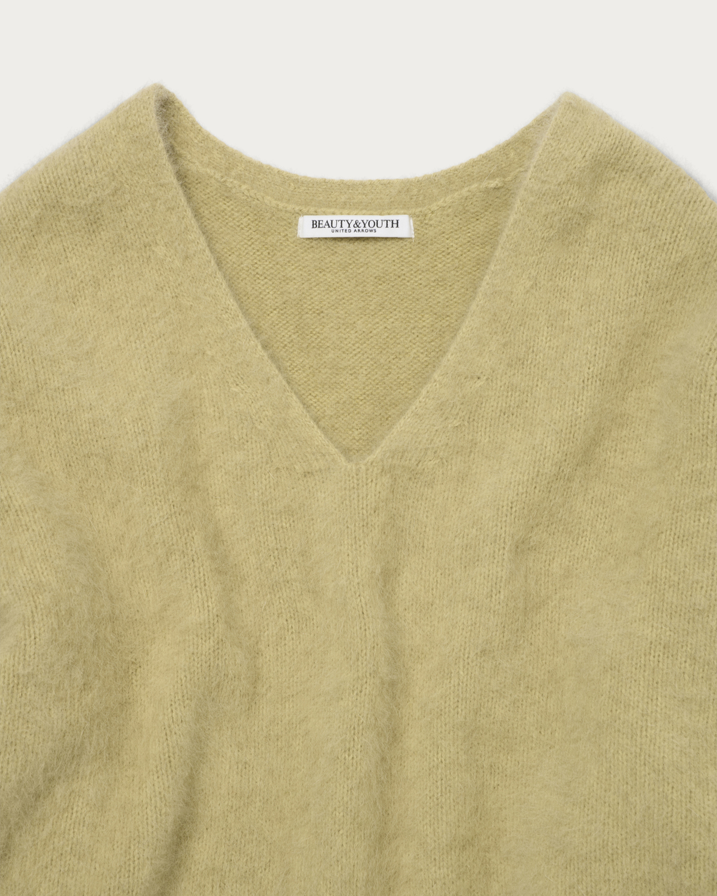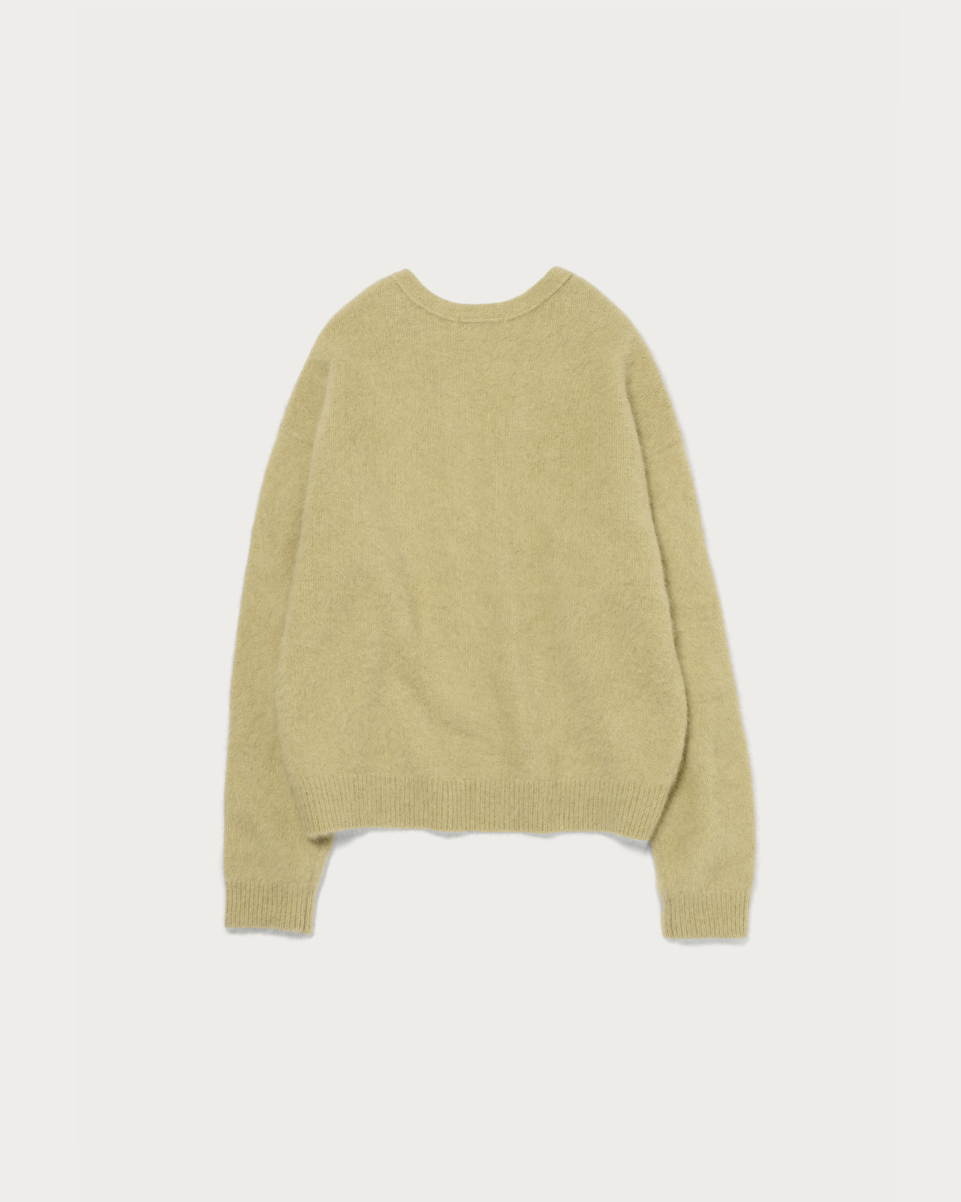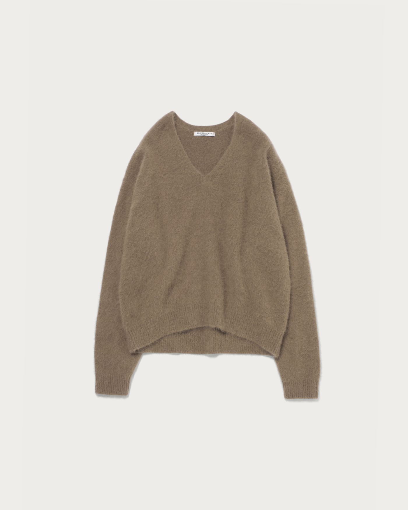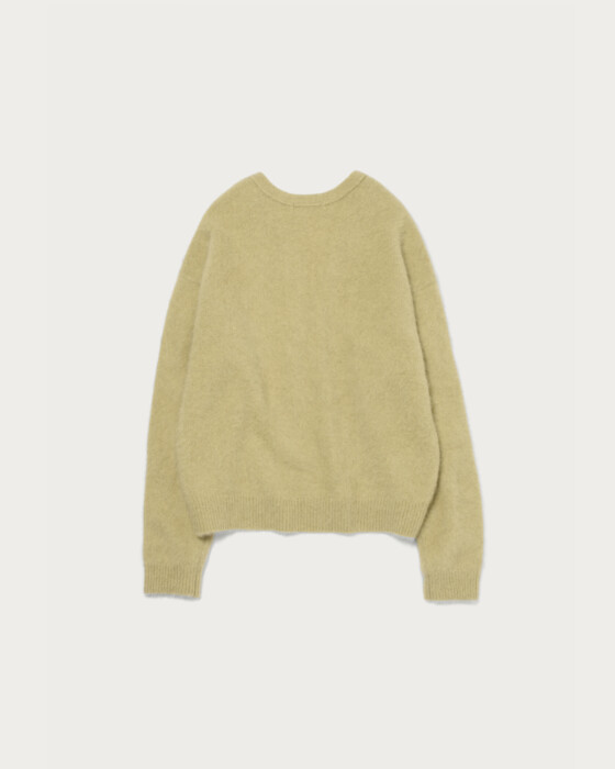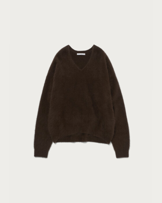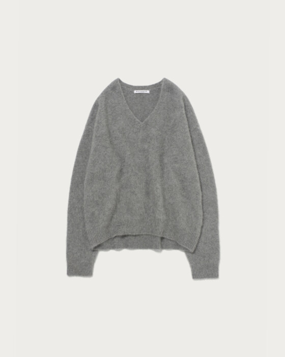 This season, we've prepared an easy-to-wear V-neck knit with a comfortable depth, crafted from lightweight, highly insulating fox material. The result is a smooth garment with a luxurious feel akin to cashmere. It's perfect for wearing on its own for a sleek look, or you can layer it with a crew neck top for a stylish arrangement. It pairs well with a wide range of items, from denim to mannish slacks.
