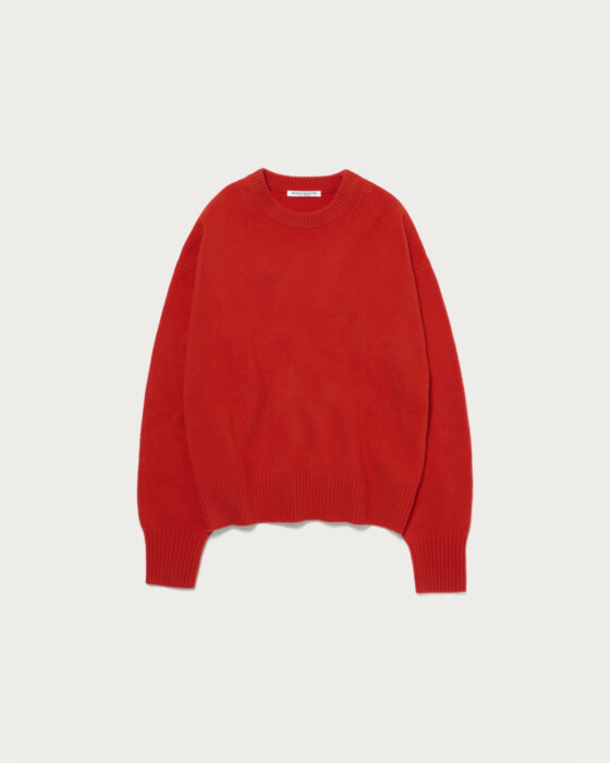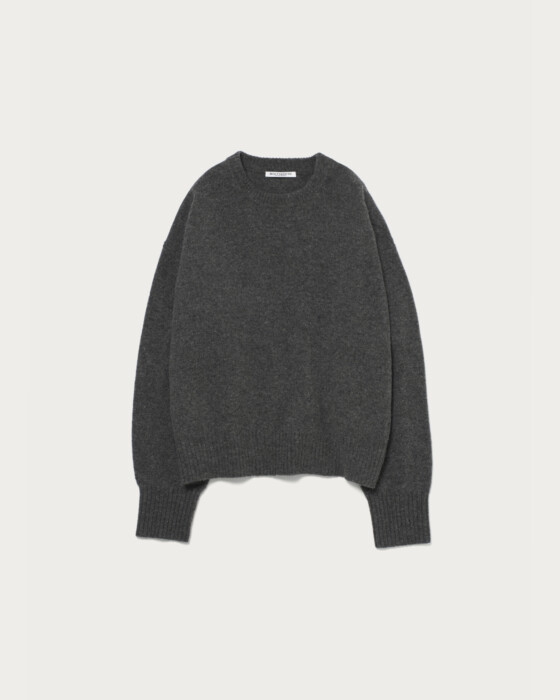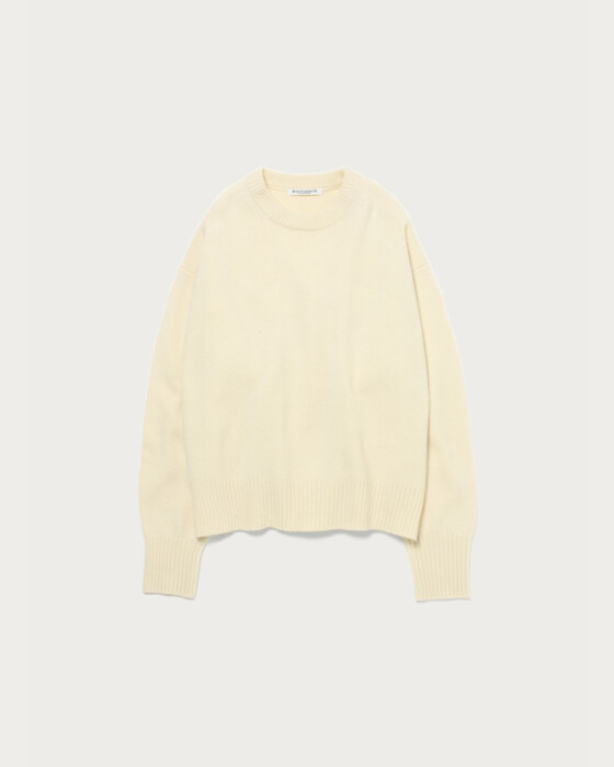 The classic Aqua Raglan Crew Neck Knit. This year, we've updated the previous raglan sleeves to set-in sleeves, creating a boxy, relaxed silhouette that adds a touch of effortless style to your outfit. The material is a soft and comfortable blend of wool, nylon, and cashmere. The mid-gauge knit is neither too thick nor too thin, making it perfect for daily wear. It looks great worn simply on its own, or styled with patterned bottoms or accessories like scarves for added flair.