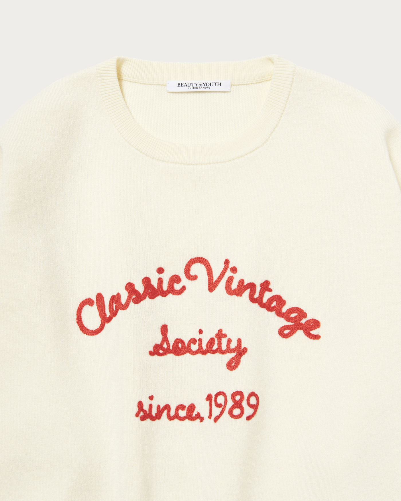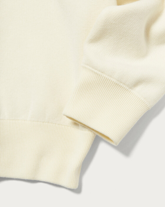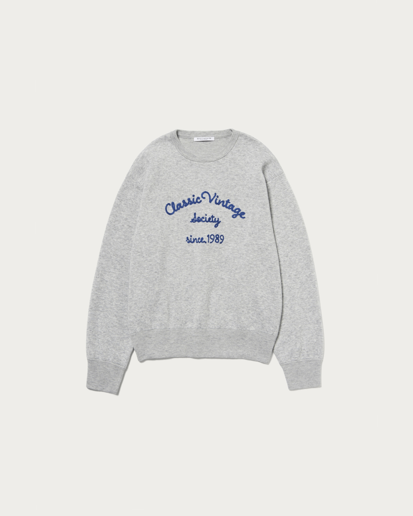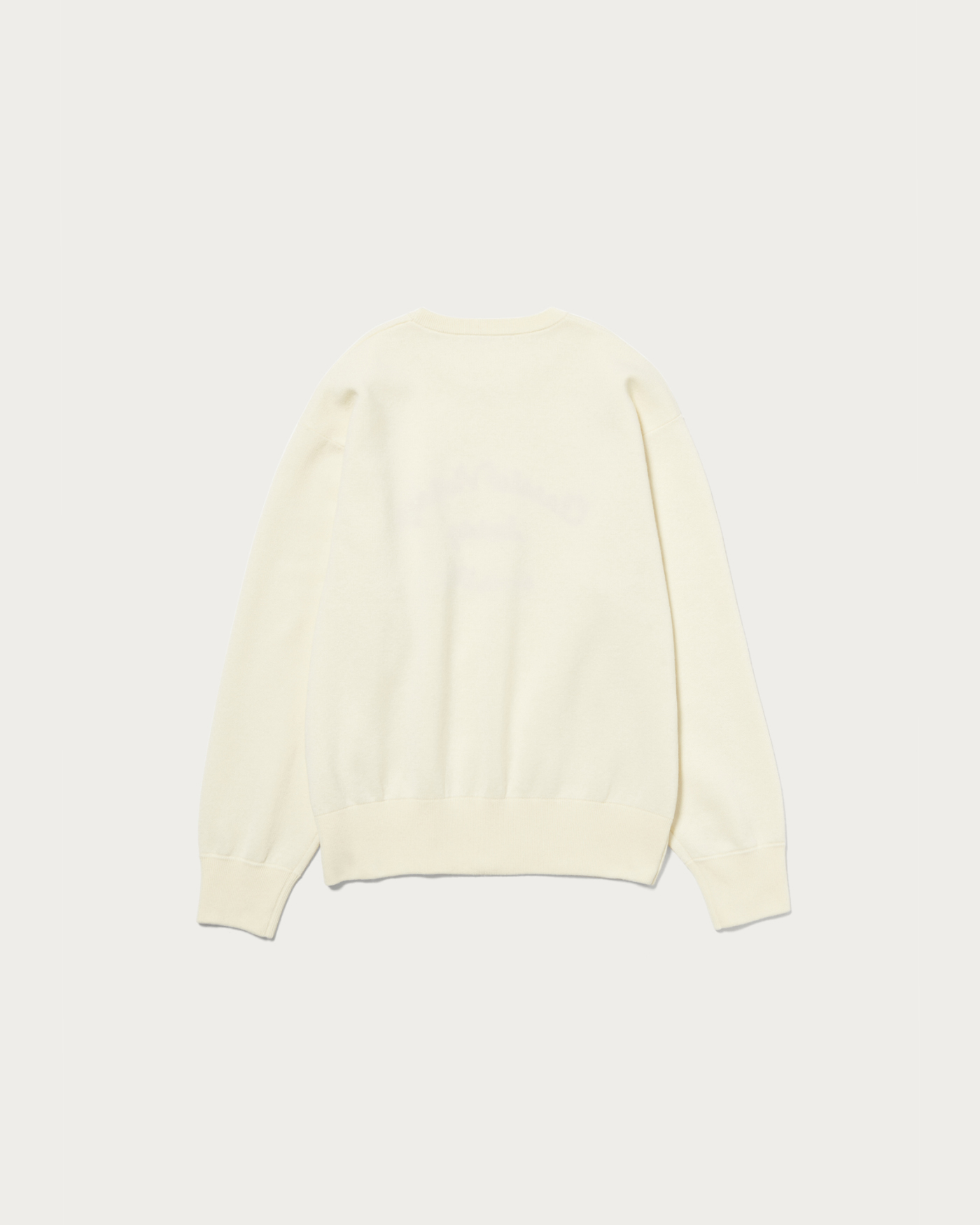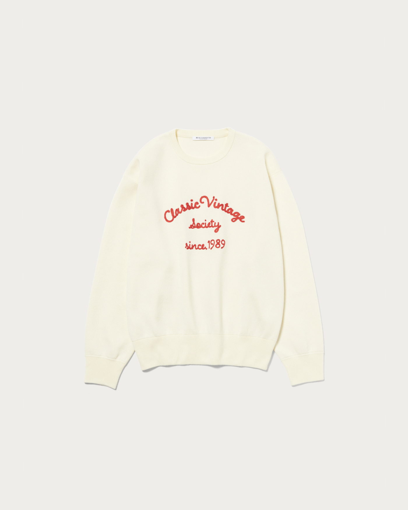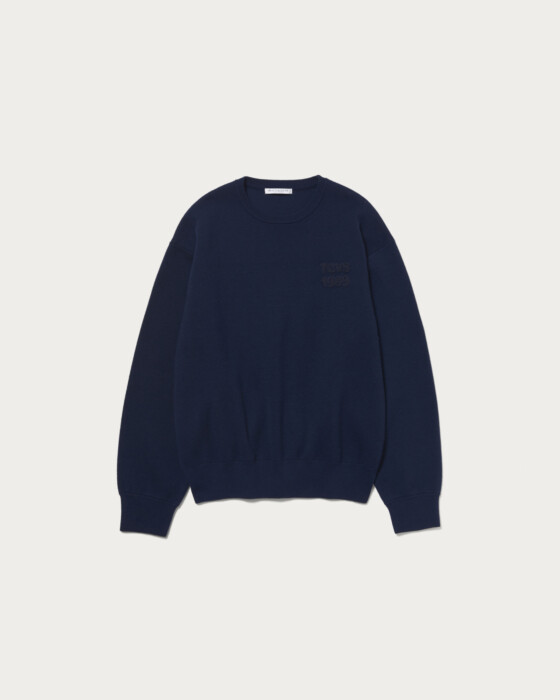 A classic logo knit pullover with a fresh, casual sweat-like vibe. This season, we offer three colors: off-white and medium gray with eye-catching chain embroidery, and a newly introduced navy with a loop stitch logo. Another great feature is the use of a moderately thick polyester blend material, making it hand-washable. It's easy to pair with various bottoms, making it a versatile piece for daily wear.