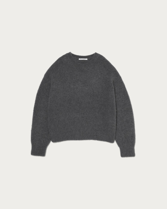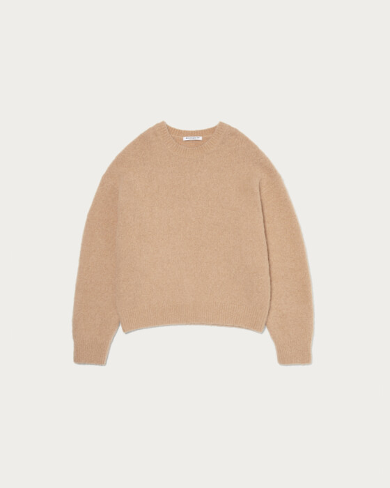 Despite its wide silhouette and relaxed fit, this piece is designed with a just-right length to make coordination easy. The fabric features a blend of alpaca, giving it a casual and textured appearance. The use of uniquely Italian yarn colors adds a distinctive touch. It pairs well with bottoms that have a strong design, such as wide checkered pants.