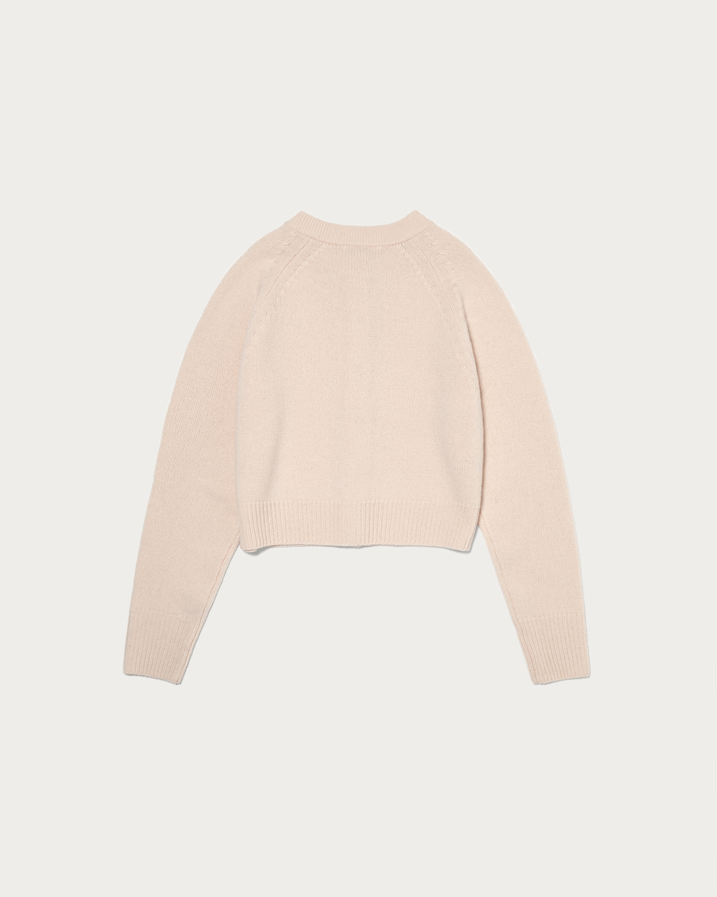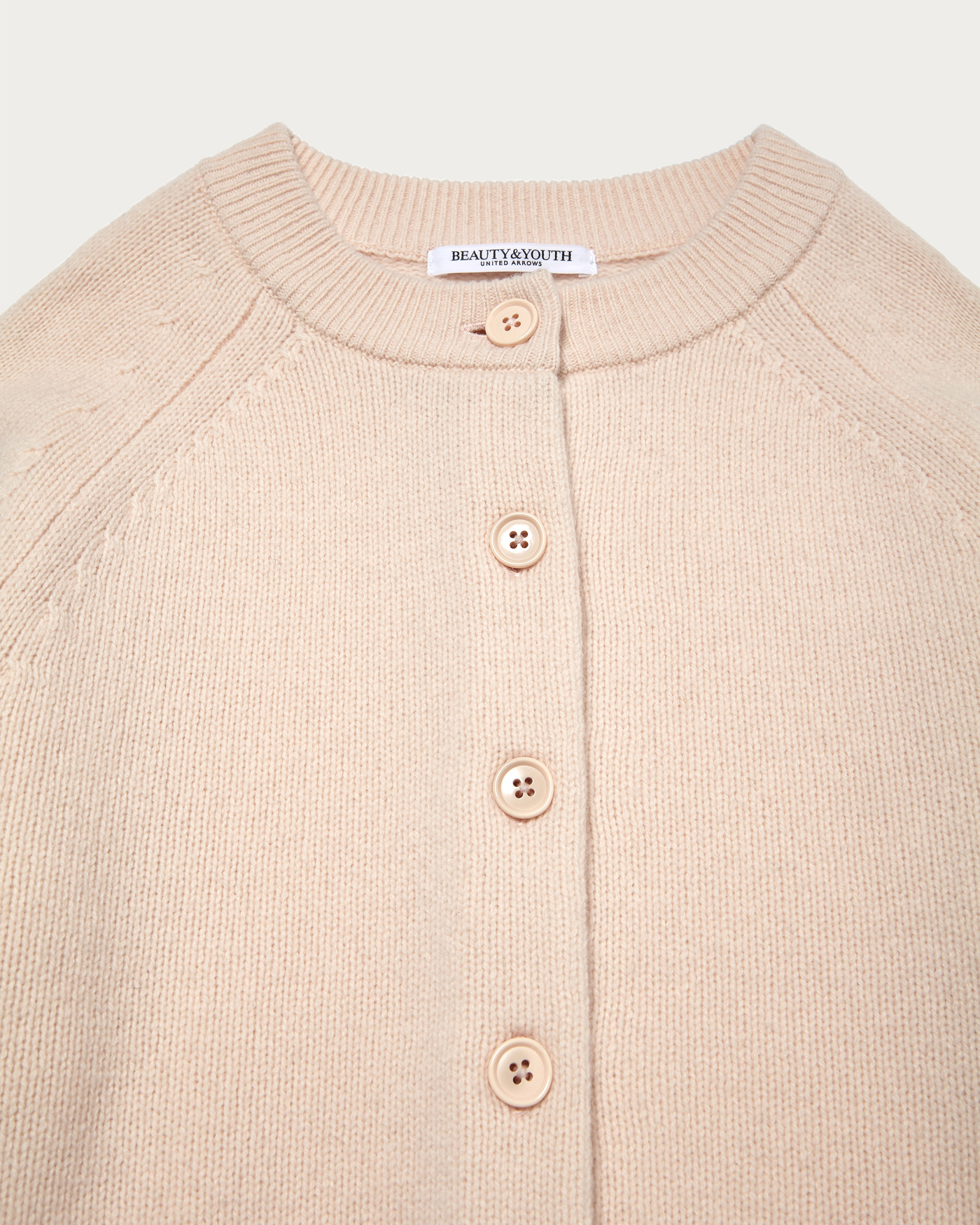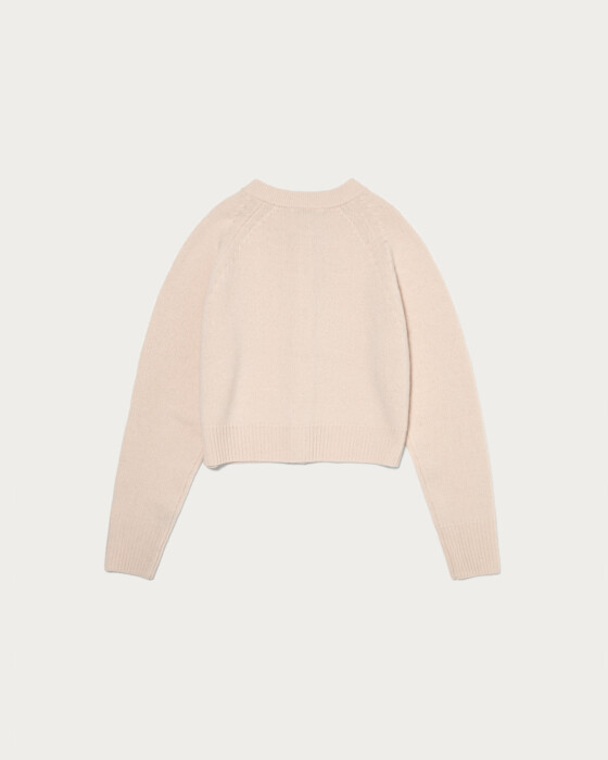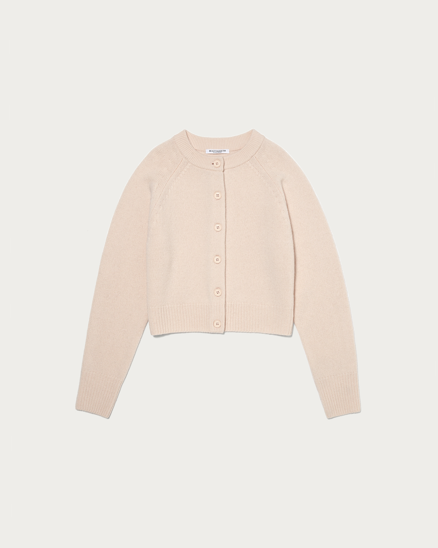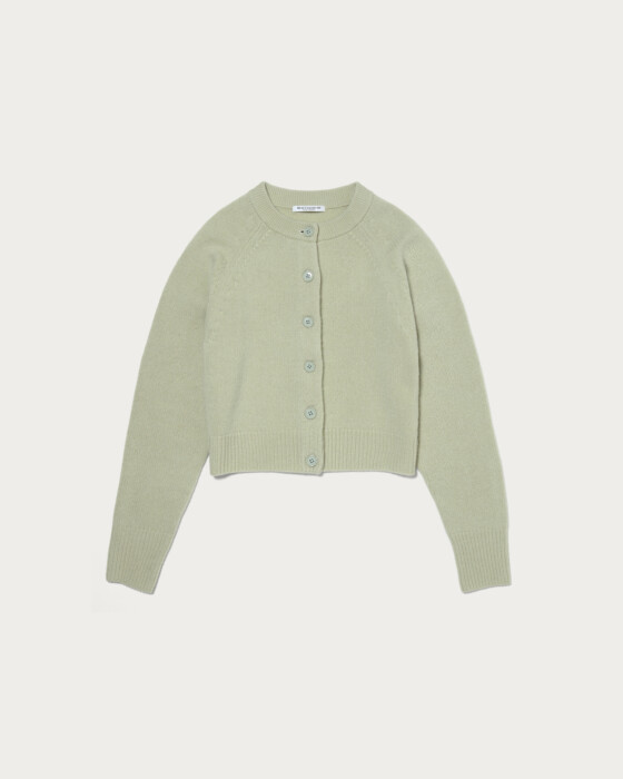 A knit cardigan with a compact silhouette that exudes a trendy mood. While maintaining the texture of last year's popular item, we've updated the fit to be more streamlined. The material is made from 100% ultra-fine merino wool, providing a warm, spun yarn. Features like the slightly high neck, longer sleeves, and buttons in the same color as the body enhance its femininity. We recommend pairing it with mannish styling, such as herringbone or pinstripe pants.