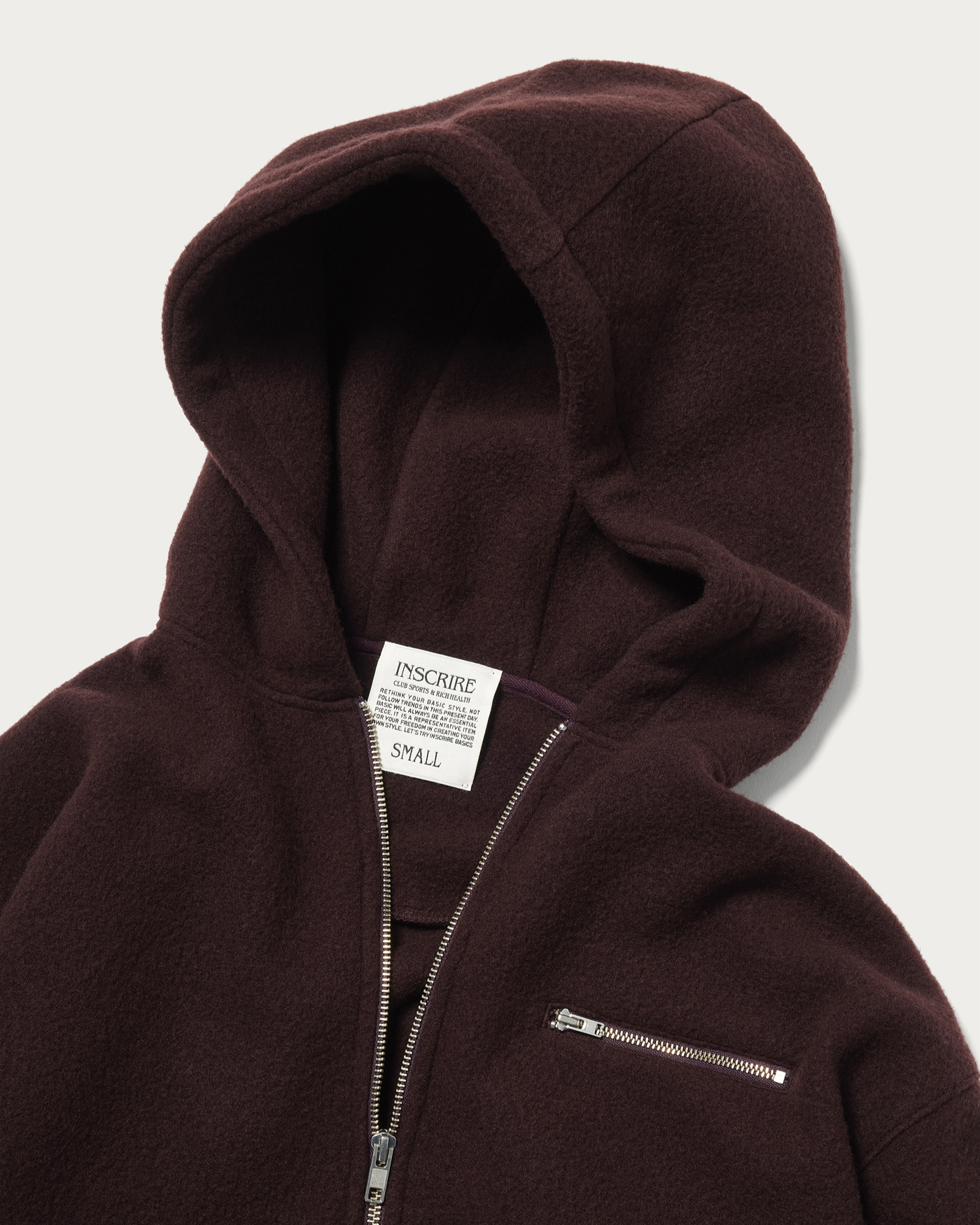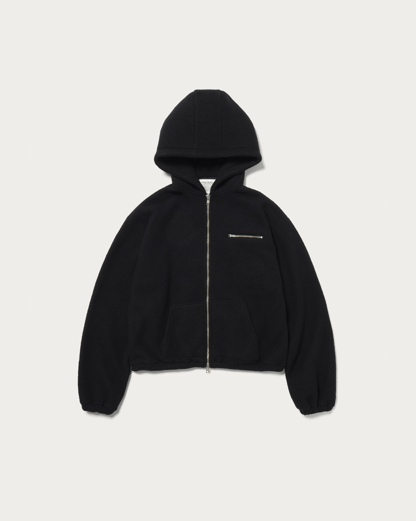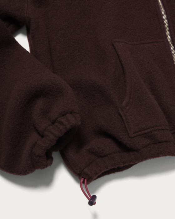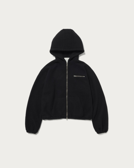 A zip-up parka made from a lightweight and warm thick wool-blend polyester material, perfect for use as outerwear. Its full-zip design makes it a versatile piece. Available in two colors: black and wine. You can also adjust the hem to create a rounded silhouette, which is highly recommended.