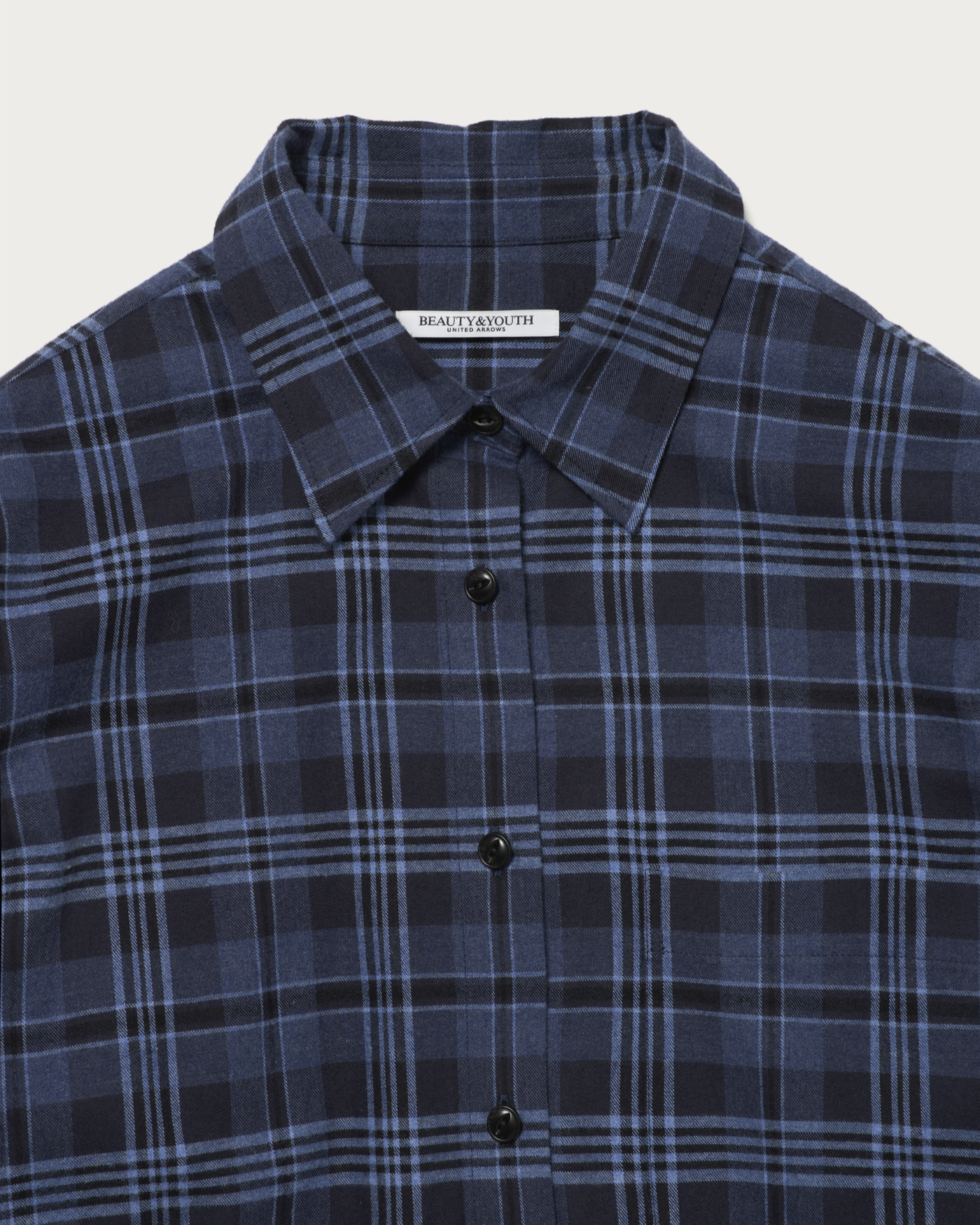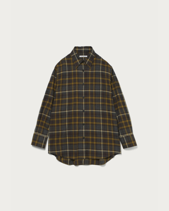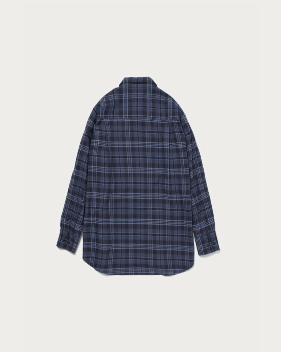 An original checkered shirt made from flannel material with a unique pattern. It is designed to be slightly oversized to create a relaxed look. The fabric uses top-dyed threads to add depth to the colors, and each color features a distinct check pattern, highlighting our attention to detail. We recommend pairing it with pants made from the same material, adding a jacket, and wrapping a knit around the waist for a playful styling option.