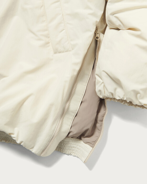 The outerwear that received great acclaim with our special order for 24FW is back again this year. This extremely lightweight and comfortable down jacket features a simple design that matches a wide range of styles. With a length that fully covers the hips, it’s a silhouette that proves useful during the colder months. The fabric's moderate matte finish exudes a sense of luxury, which is also a key feature. This outerwear is especially recommended for customers who prefer a ladylike style.