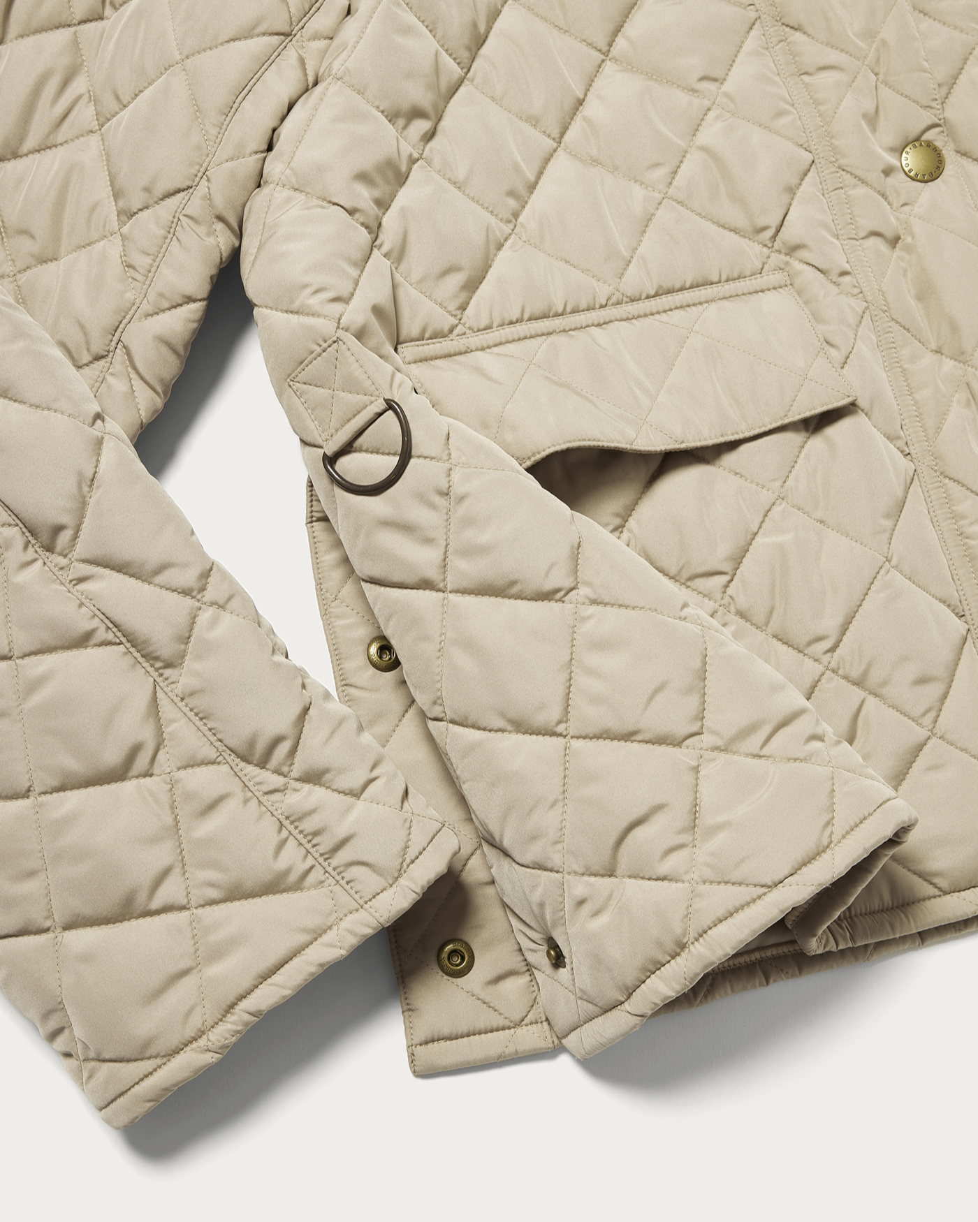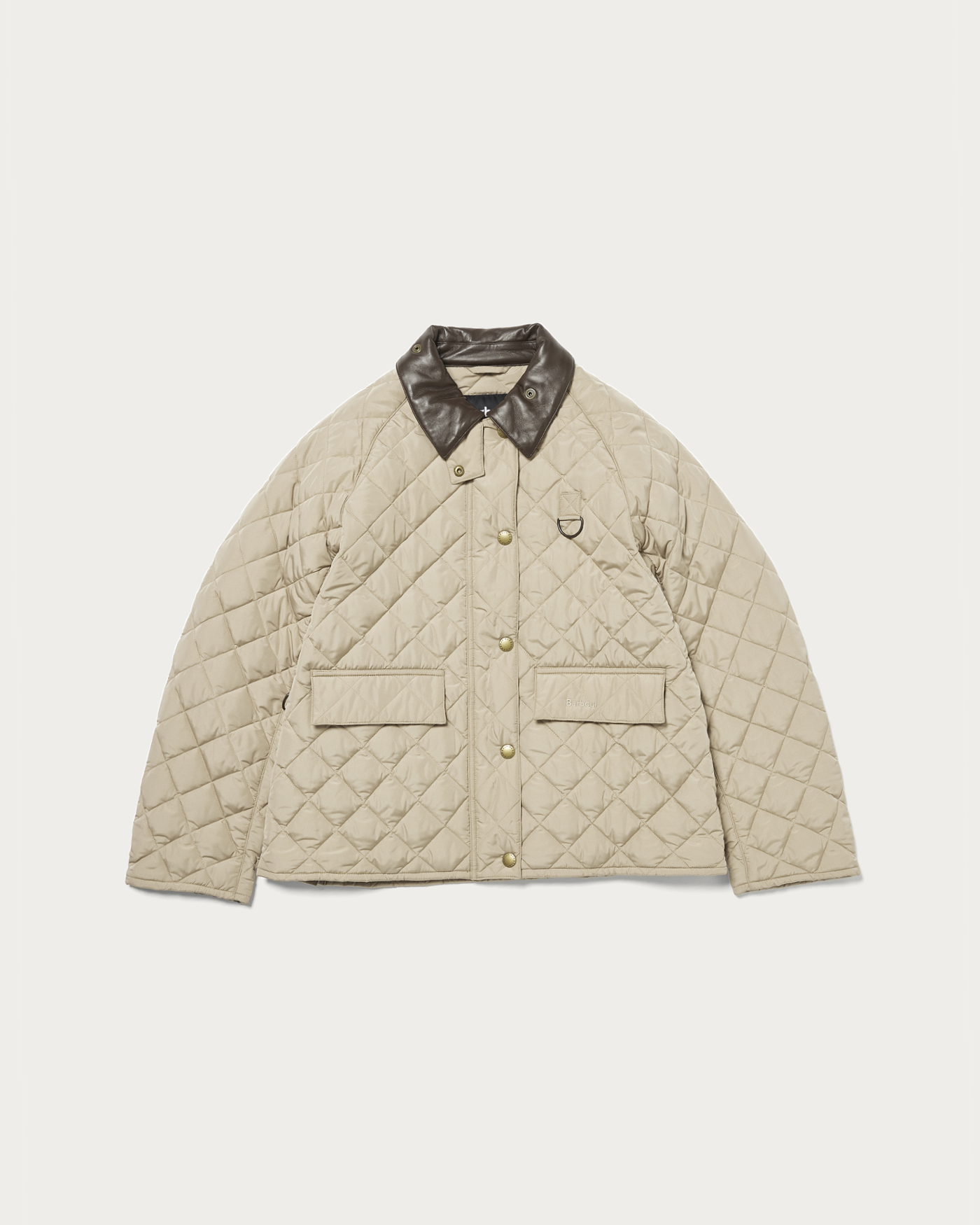 A special custom item based on Barbour's classic model "SPAY." The body width and sleeve specifications have been updated to create a trendy, three-dimensional silhouette. Additionally, the collar has been changed to leather, giving the outerwear a special feel. With a length that pairs well with both skirts and pants, this piece can be worn in both feminine and casual styles.