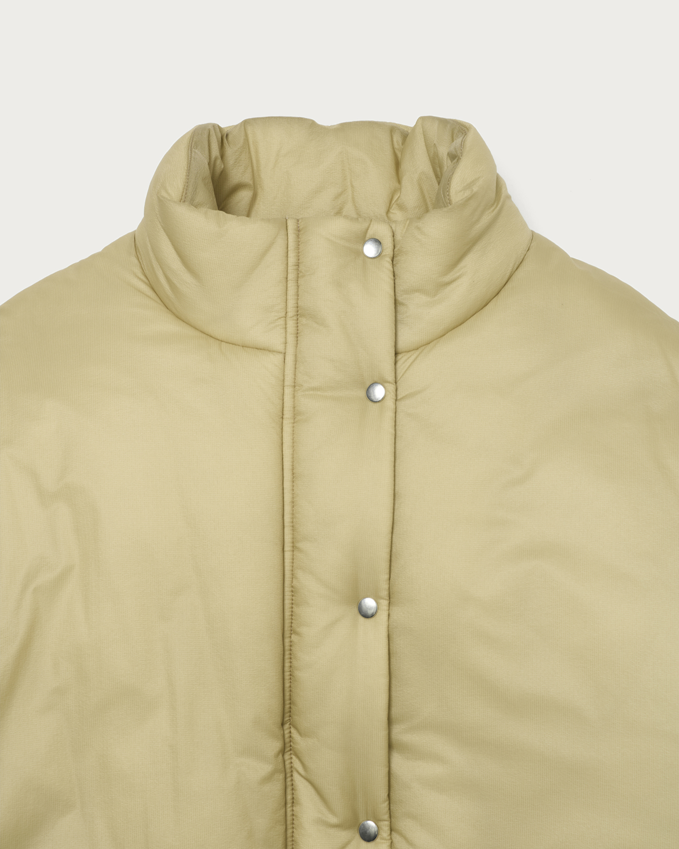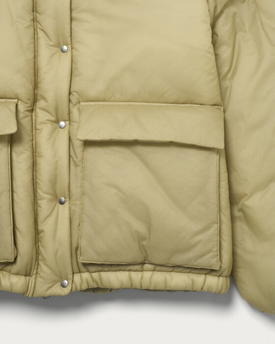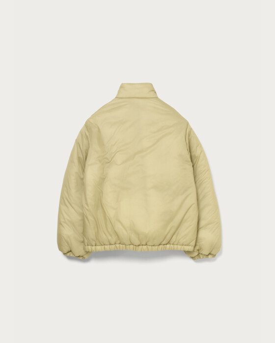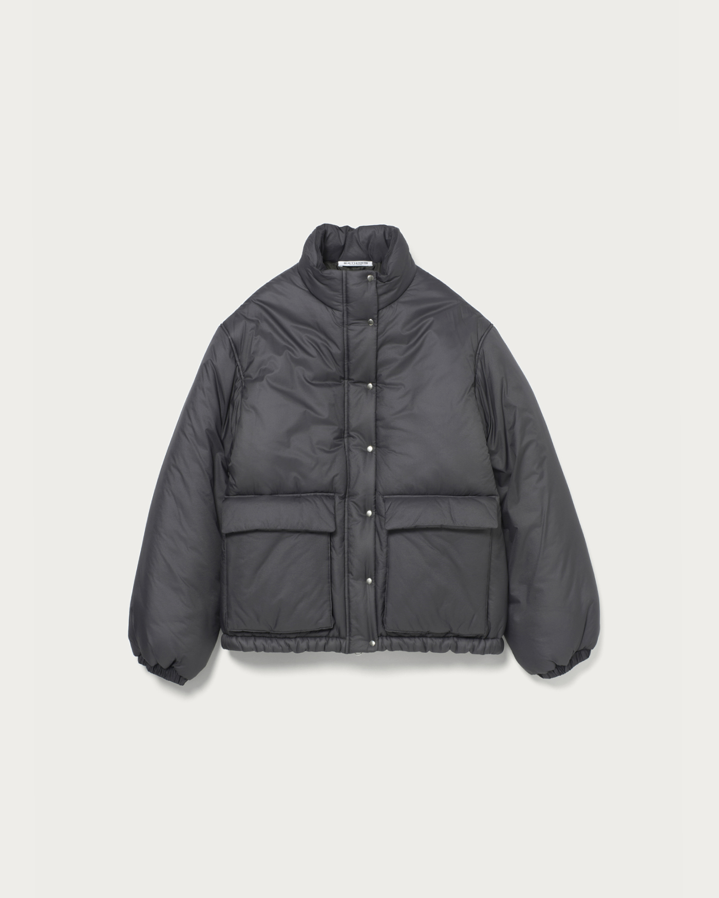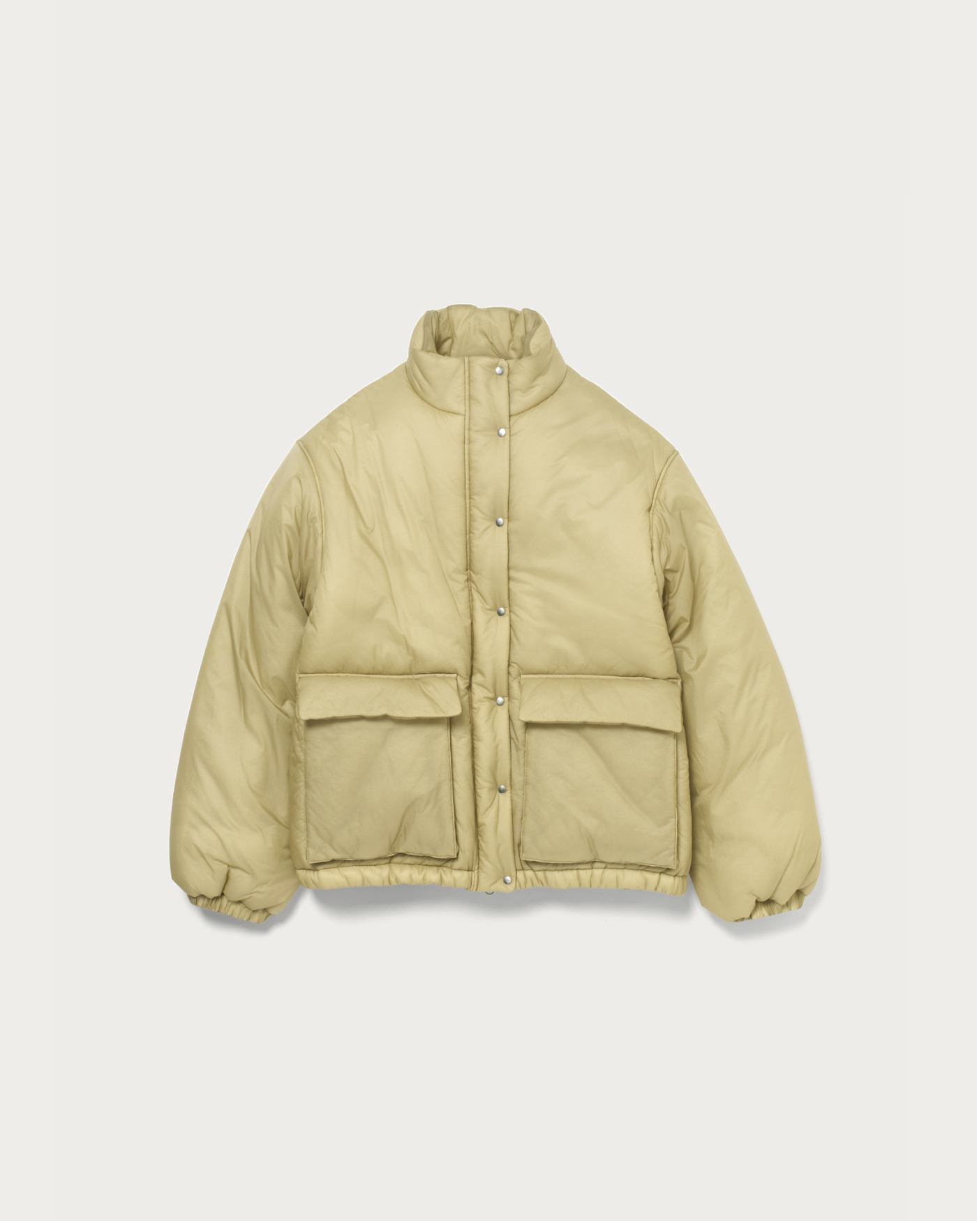 A blouson characterized by its shorter length and rounded silhouette. The patch pockets and flap pockets are padded to add overall volume. The outer fabric is made from high-quality material with a matte texture, which helps tone down the sporty feel. This piece allows you to enjoy the latest trends.