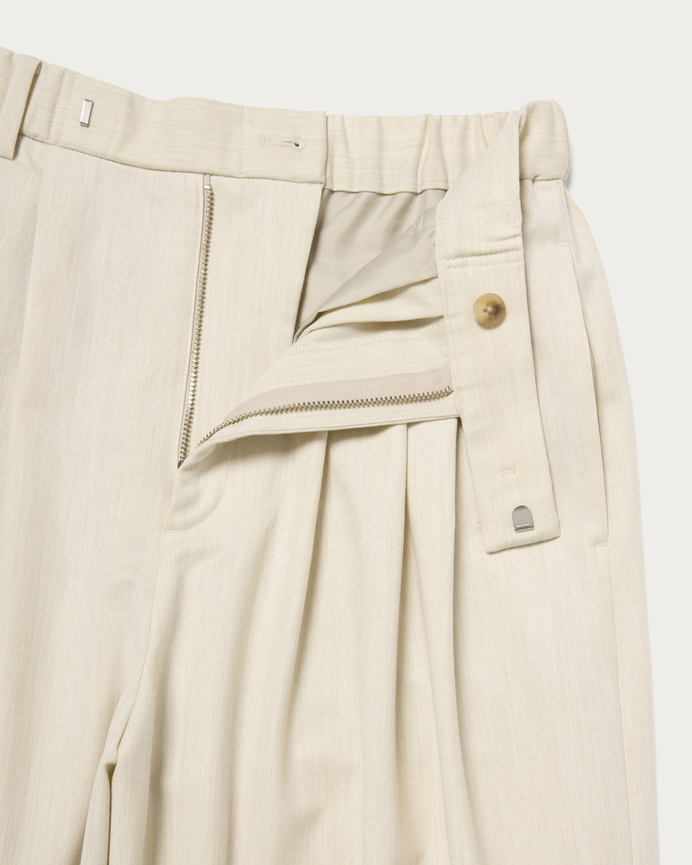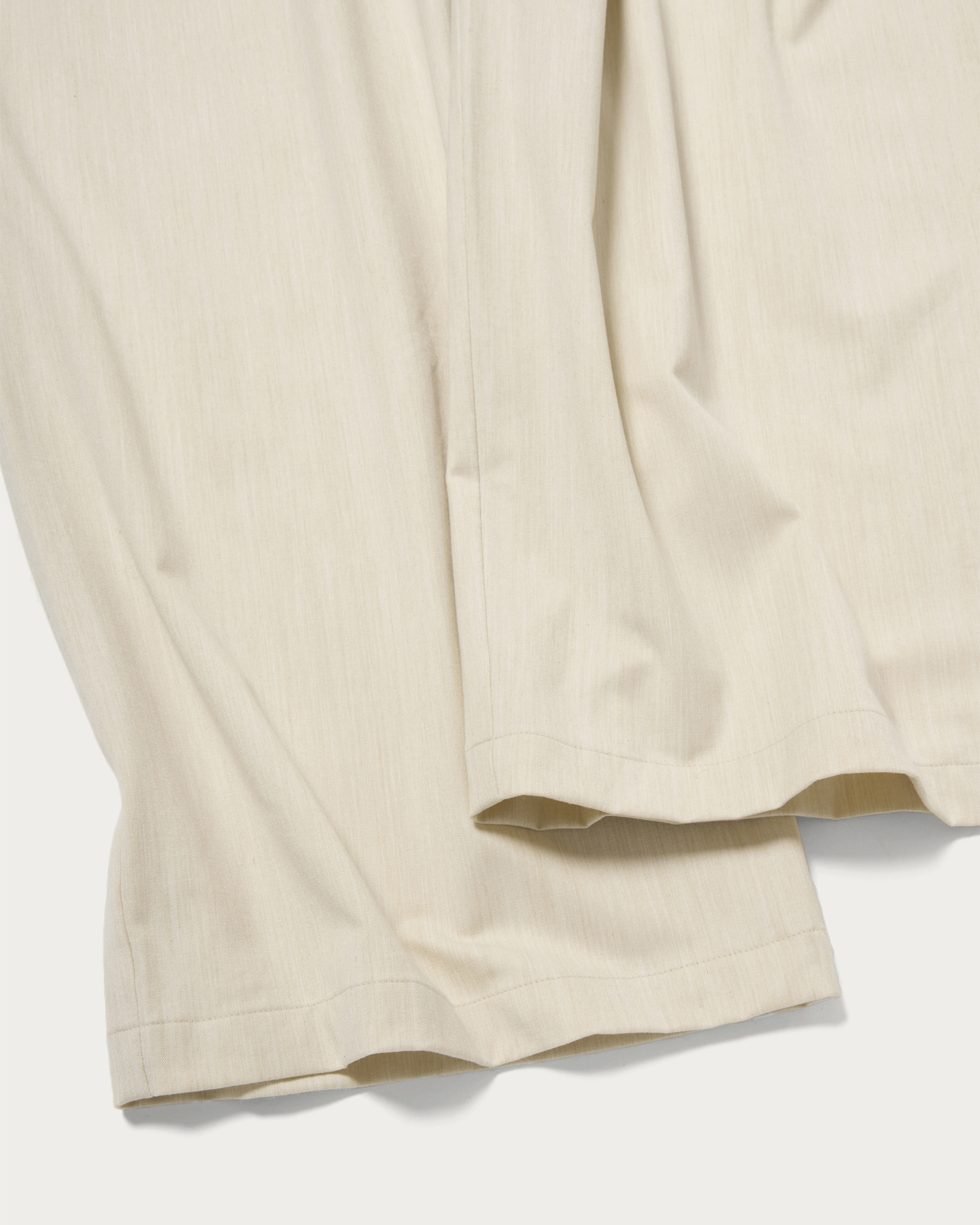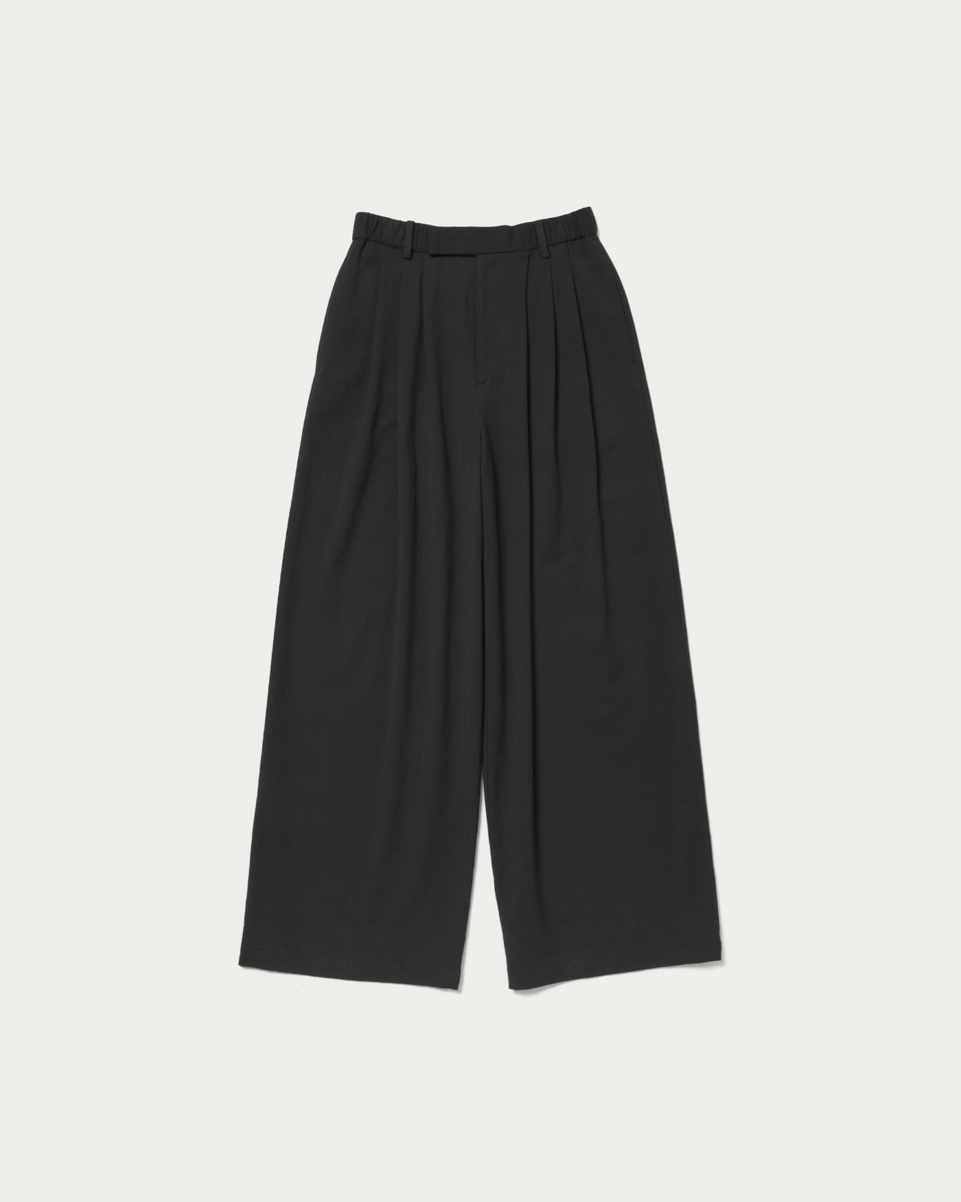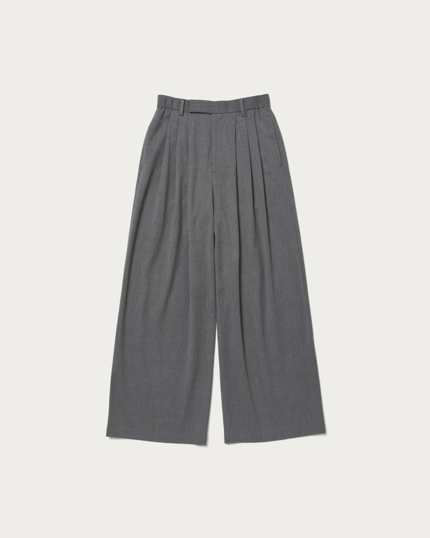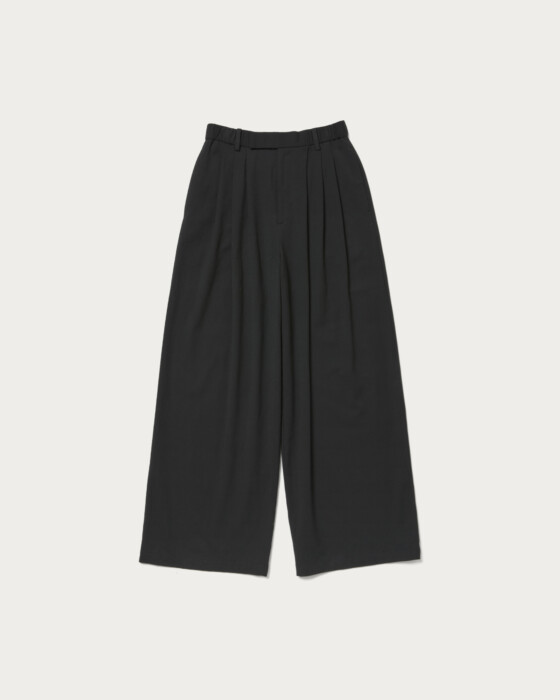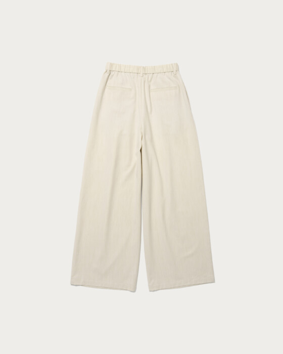 The popular wide-leg pants have been updated with a warm wool-blend material that can be hand-washed at home. Despite the design featuring three front tucks for added volume, the waist area remains sleek. Additionally, the elastic waistband offers a relaxed fit while maintaining an elegant casual style.