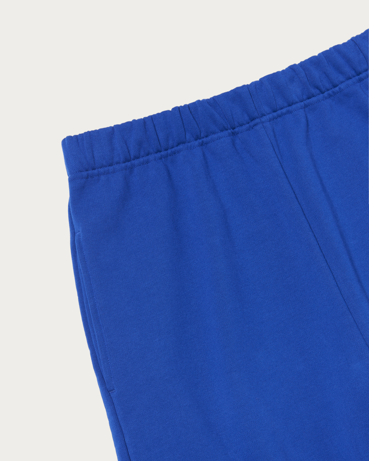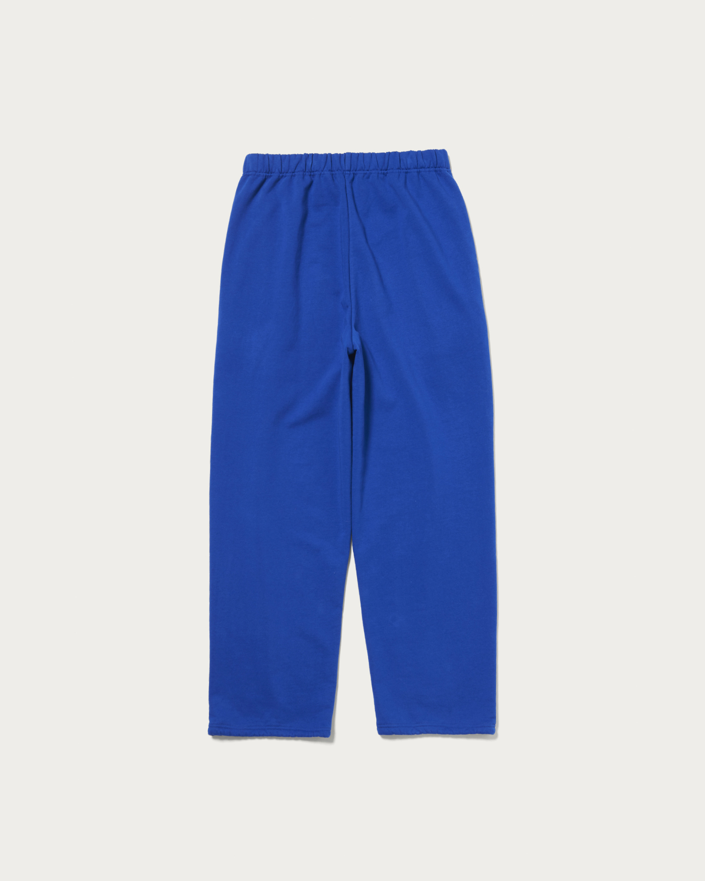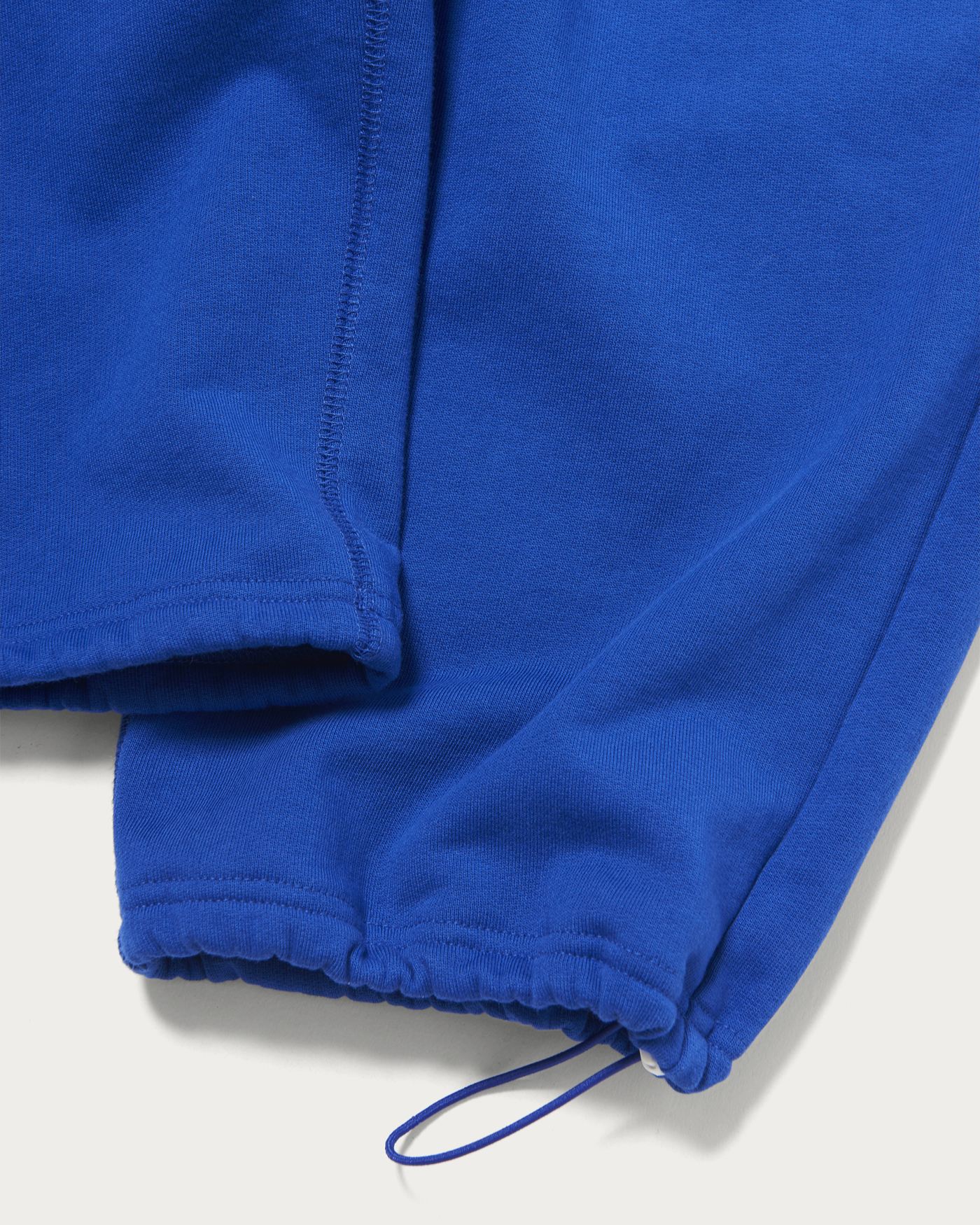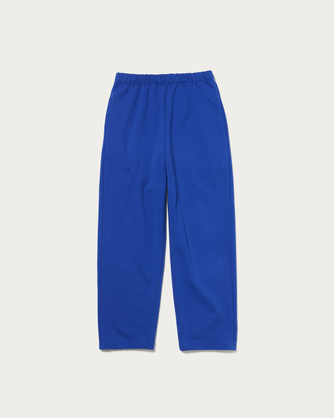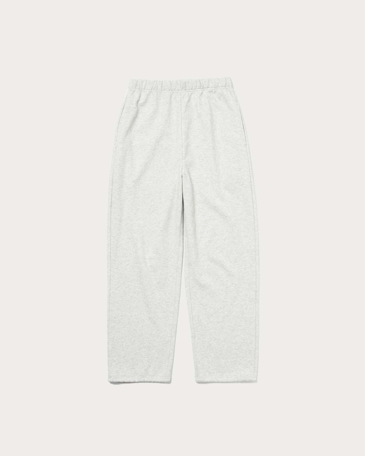 The sweatpants made from moderately thick fleece material are designed to provide a sleek look without clinging too much to the body. The drawstring at the hem allows for a change in silhouette. The fabric used has minimal fuzz and a clear surface, giving it a refined appearance. They pair beautifully as a casual touch to a jacket or shirt style. For footwear, layering with babouche shoes is recommended.