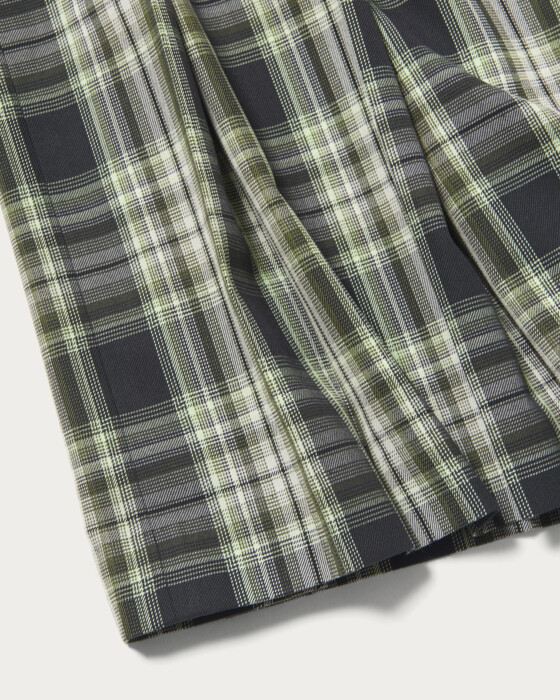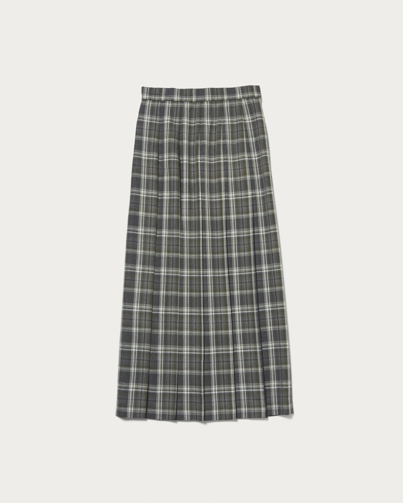 From the 24FW season, we've kept the shape the same but updated the material and pattern. While maintaining the texture of last season's material, we've increased the polyester blend ratio to enhance the stability of the pleats. The pattern features a check design based on this season's key color, gray. It's a standout piece that pairs beautifully with simple tops.